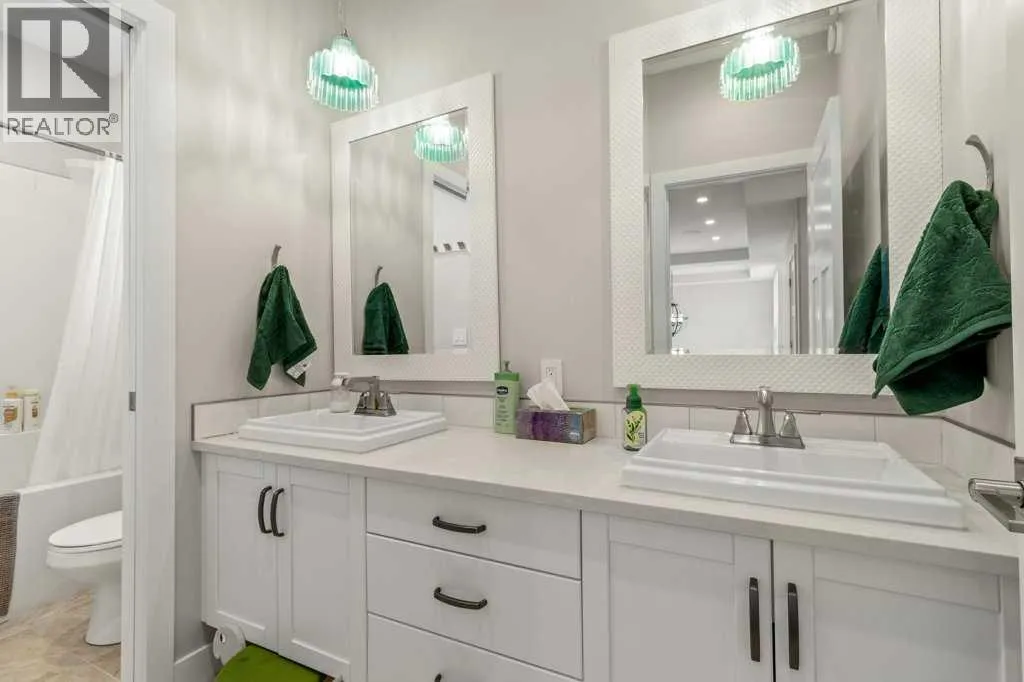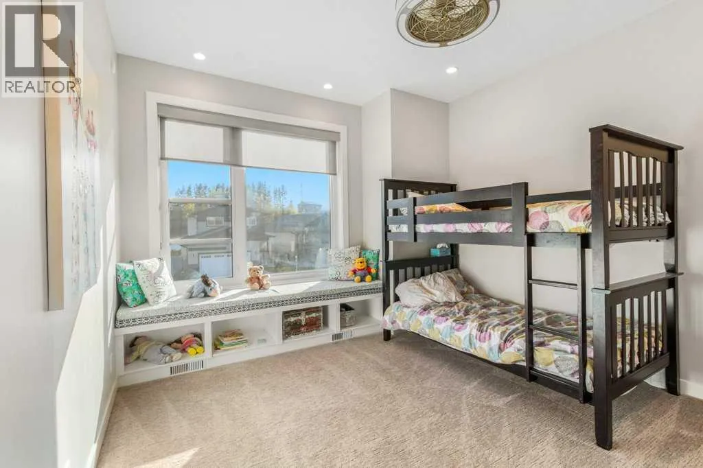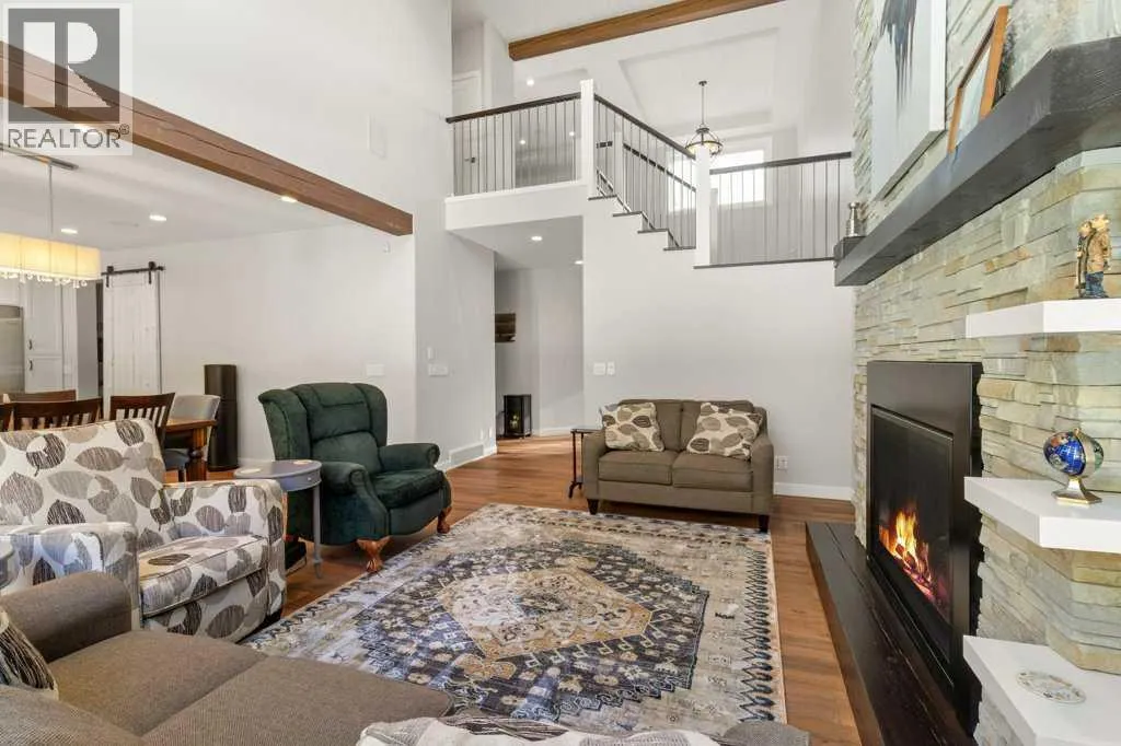 condition. Step into a large entryway that leads to a modern, open-concept design with rich vinyl floors covered in tons of natural light from large windows, overloooking the rear greenspace. The home’s neutral color palette and high-end finishes enhance its appeal. The chef’s kitchen is a standout feature, showcasing an abundance of cabinets and counter space, a stylish tiled backsplash, and elegant quartz countertops. It is equipped with stainless steel appliances with gas stove, an under-mount sink, and a large walk-through butler’s pantry with tons of storage space and extra counters. The large island with eat up bar is perfect for casual dining and socializing. The adjacent living room, complete with a stunning gas fireplace with wrap around mantle, shelving, and full stone wall – extends up to the oversized, open beam ceiling with speaker system throughout, flowing seamlessly into the expansive dining area. The main level also includes a well-appointed mudroom, extra storage, as well as a conveniently located bathroom. Upstairs, you’ll find 3 spacious bedrooms (south facing windows are triple pane to reduce sun heat), including a luxurious master suite. The master features a stunning 4-piece ensuite with heated tile floor, quartz countertops, a custom tiled steam shower, and an extensive walk-in closet. The upper level also includes a 5-piece bathroom with double sinks and quartz countertops, 2 spacious bedrooms with built in bench with storage, perfect games/great room, and large laundry room. The fully finished basement offers a perfect retreat with a generous livin g room/media room, wet bar, an additional oversized bedroom, 4 piece bathroom, and a gorgeous 2 tiered bench sauna. Extra features include In-floor heat, speakers throughout with multiple zone sounds system, extensive lighting controls in each room with fully integrated smart security features, newer hot water tank, water softener, HRV, A/C, mirrored finish tint on south windows, and more! The oversized fully finished, attached garage is heated, central vac, sink, and epoxy finished floor – perfect for all your toys. Head out back and enjoy the greenspace view with huge maintenance free partially covered deck with privacy shades, electric heaters, and beautiful lighting – overlooking the fully finished yard with vinyl fence, planters, and tons of storage. Located close to walking trails, parks, and schools, this home perfectly combines luxury and convenience. Don’t miss the chance to make this exceptional property your own. (id:62650)