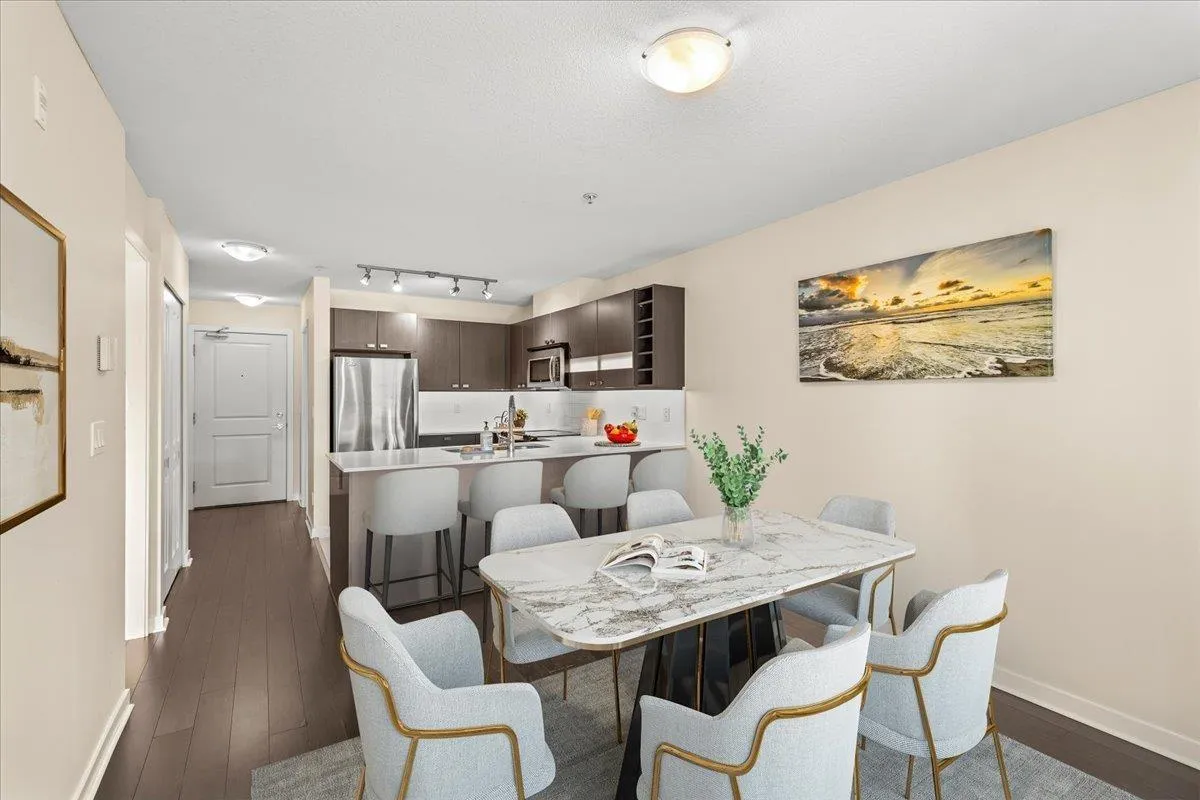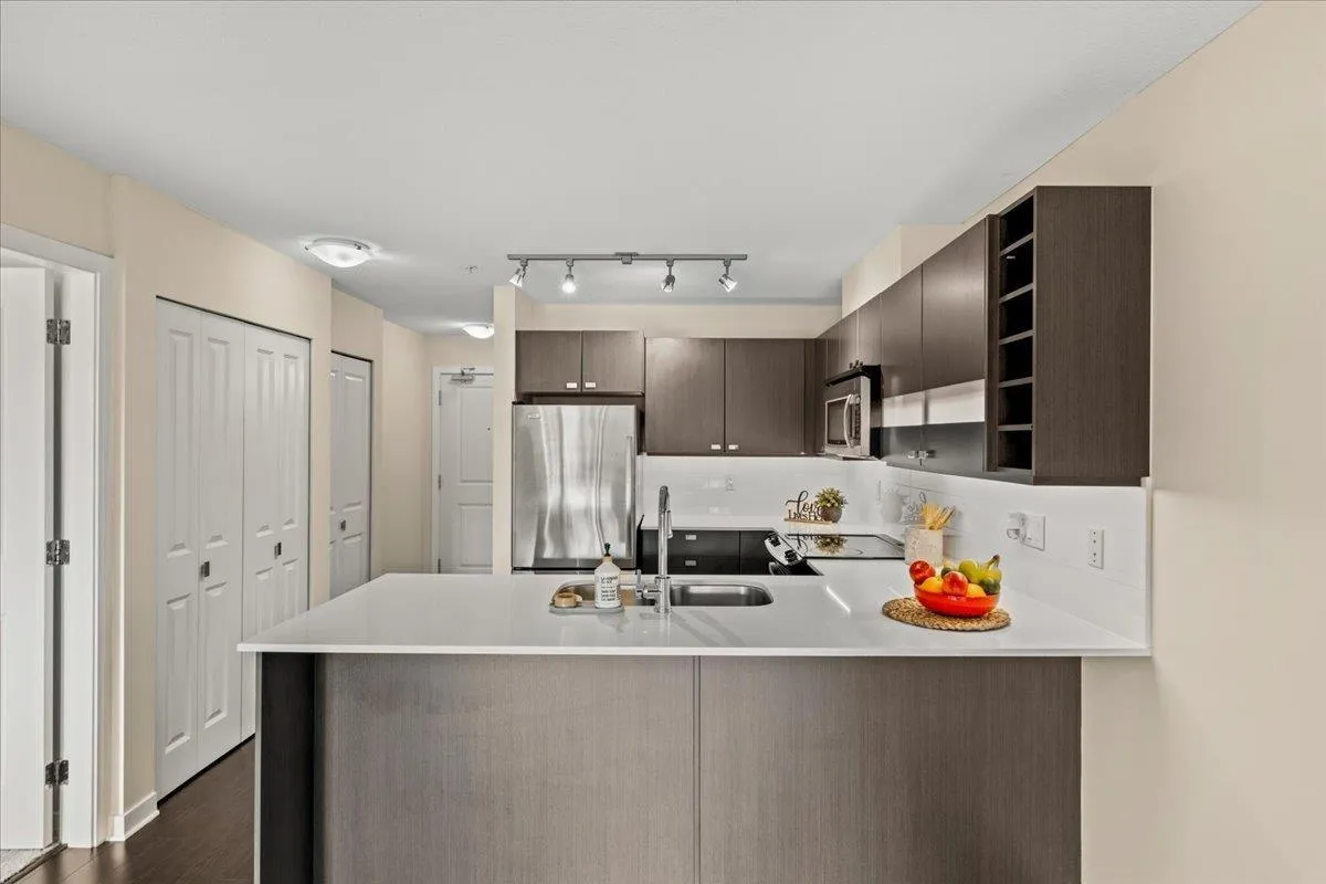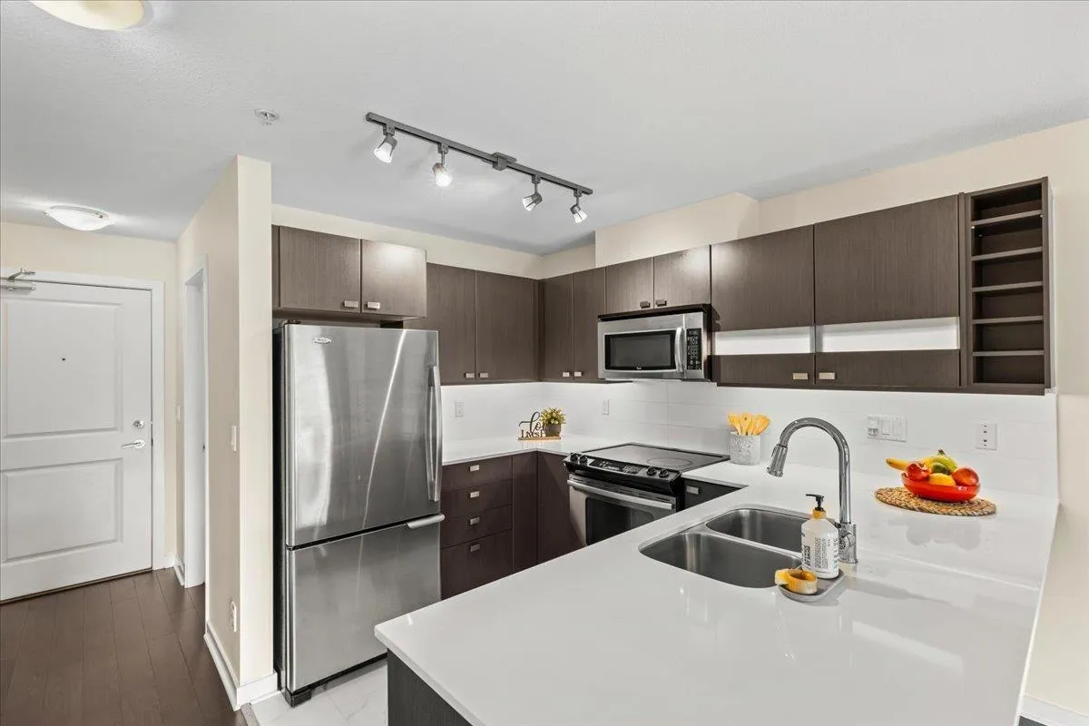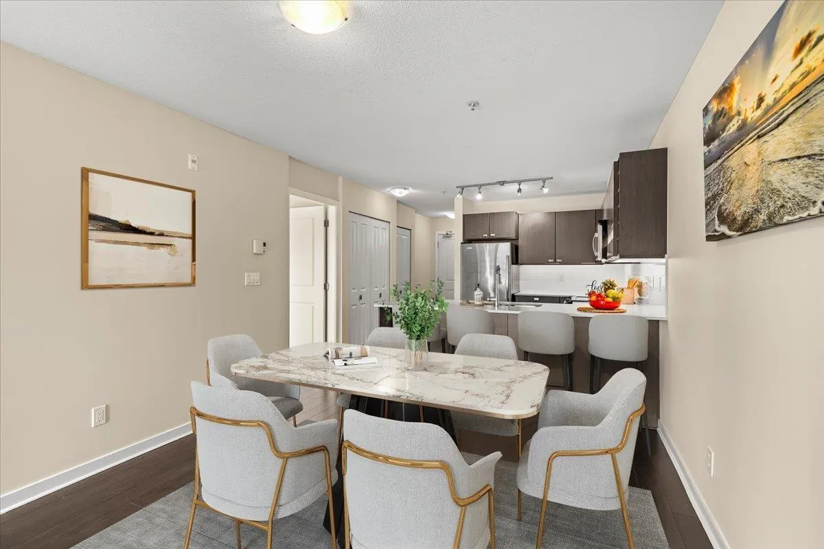 Quality built, MARCON “Cornerstone” upper unit. Marcon’s experience and attention to detail shines through in all the details. Everything makes sense and works well. Open concept, lots of natural light, SS appliances, quartz C/T, huge primary with a large walk in closet and ensuite. This well cared for unit is south facing, with a large covered balcony, brand new