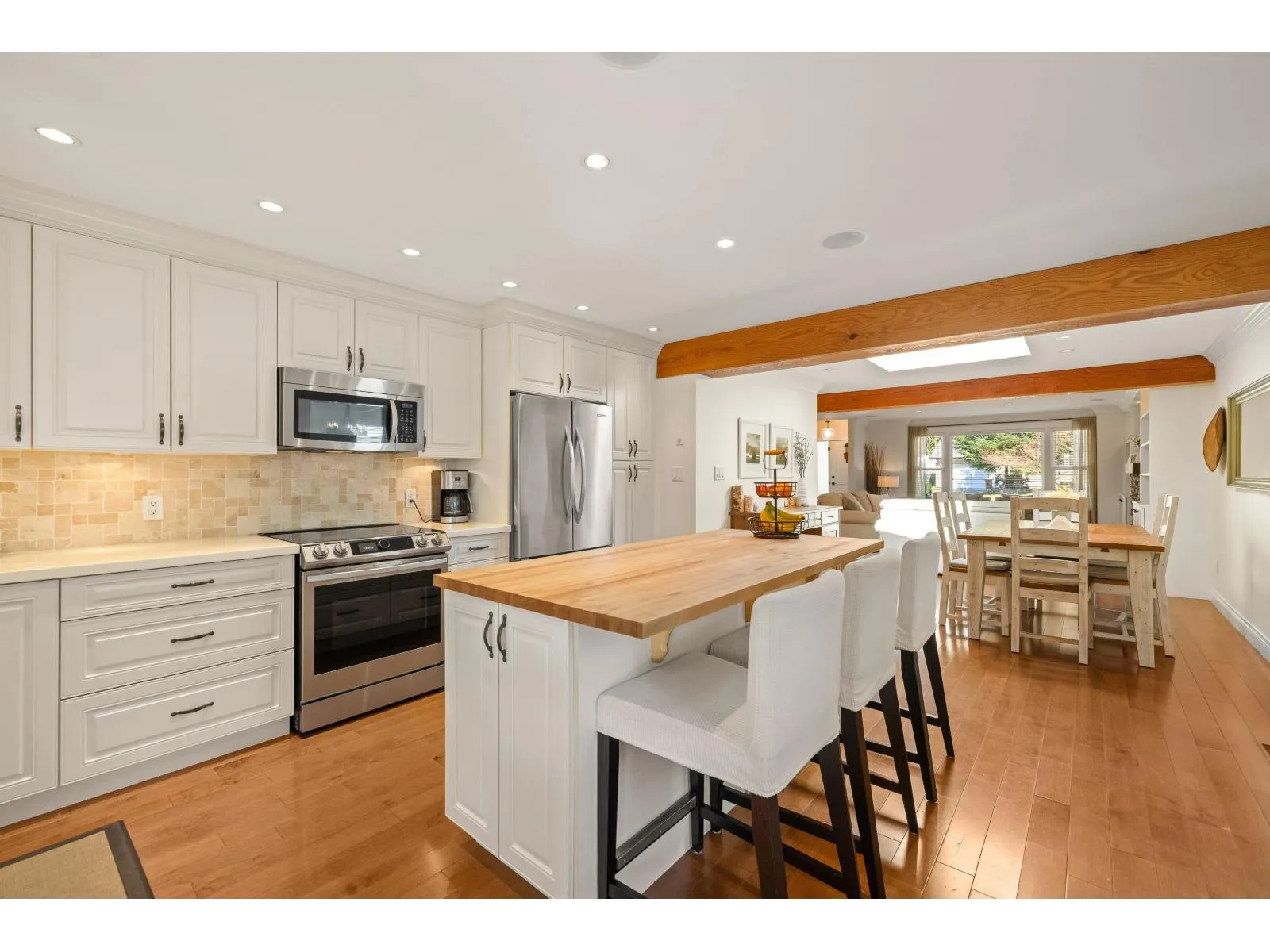 Beautifully renovated rancher w/loft on a quiet street in the family friendly neighbourhood of Brookswood. Front manicured garden, offering curb appeal that sets the tone for the rest of the home. The heart of the property is a chef-inspired entertainer’s kitchen, opens directly to the backyard for seamless indoor-outdoor living. Separate living and family areas off the kit. Enjoy the