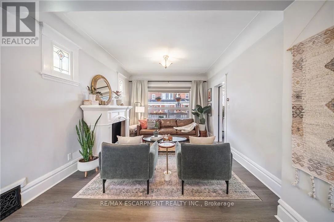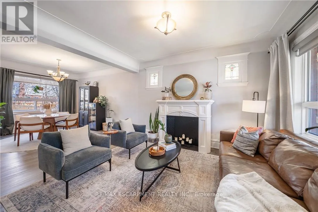 Over a century old and better than ever. This solid brick Hamilton home is the kind of property that earns a second look, and a third. Original stained glass windows frame a beautiful living room with soaring ceilings and ornate white millwork. High ceilings throughout. Thoughtfully styled and genuinely well cared for, every room tells you this home has been