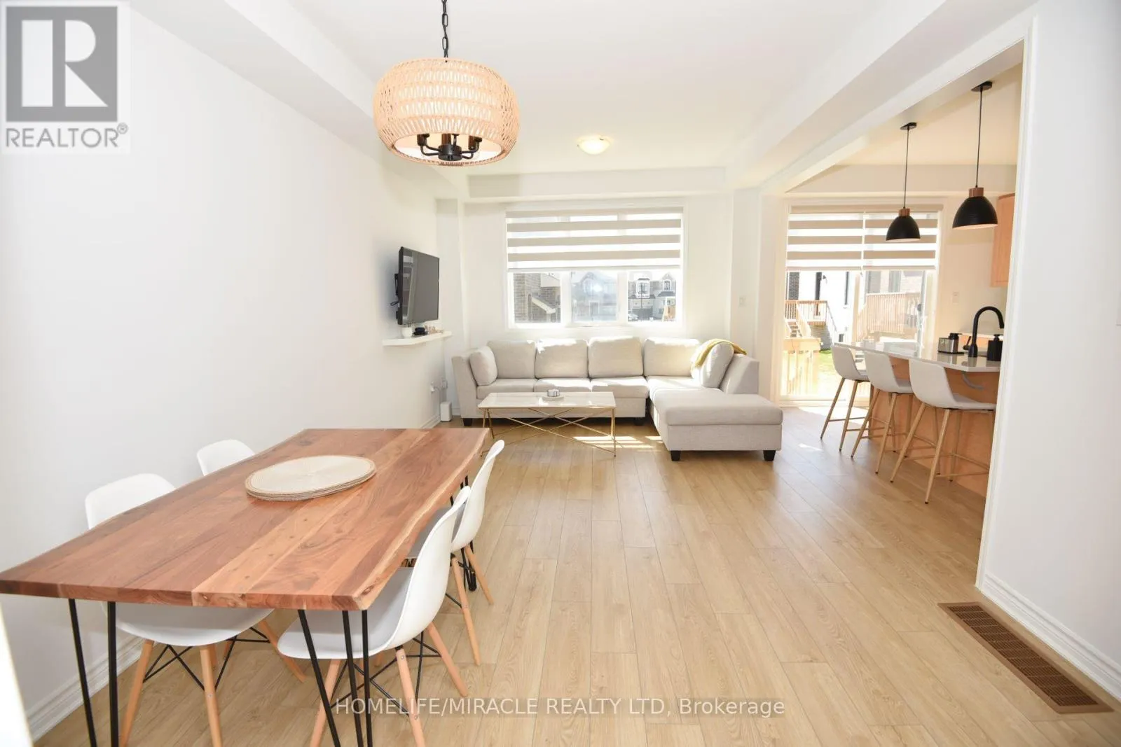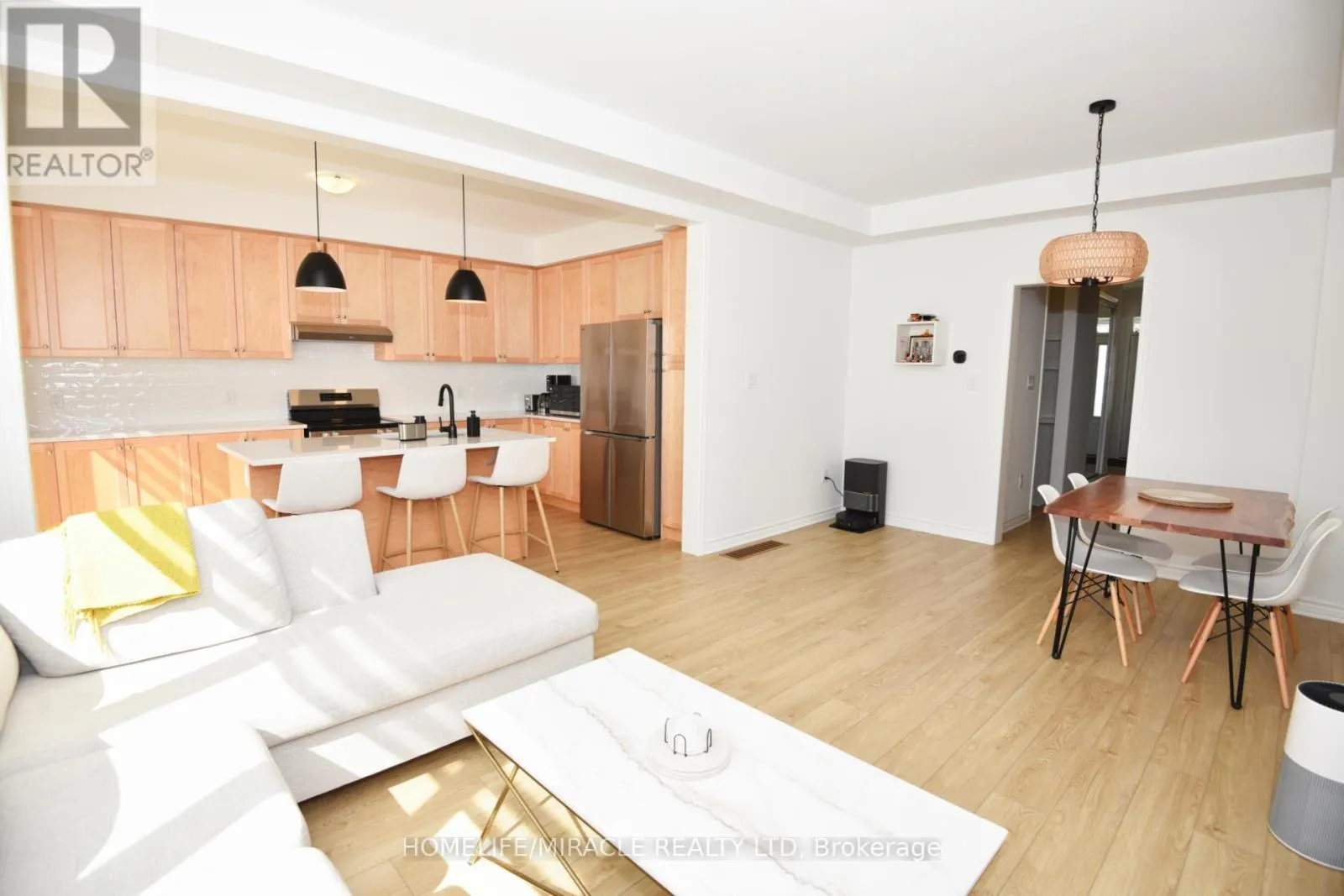 Welcome to this stunning, upgraded freehold townhome in Pickering’s sought after Seaton community. Thoughtfully designed with an east-west orientation, the home is bathed in natural light. Carpet-free interior comes with upgraded flooring and a timeless oak staircase. A spacious foyer leads into an open-concept main level with 9′ Feet ceilings, with a beautifully appointed kitchen showcases Hardwood cabinetry, Quartz countertop,