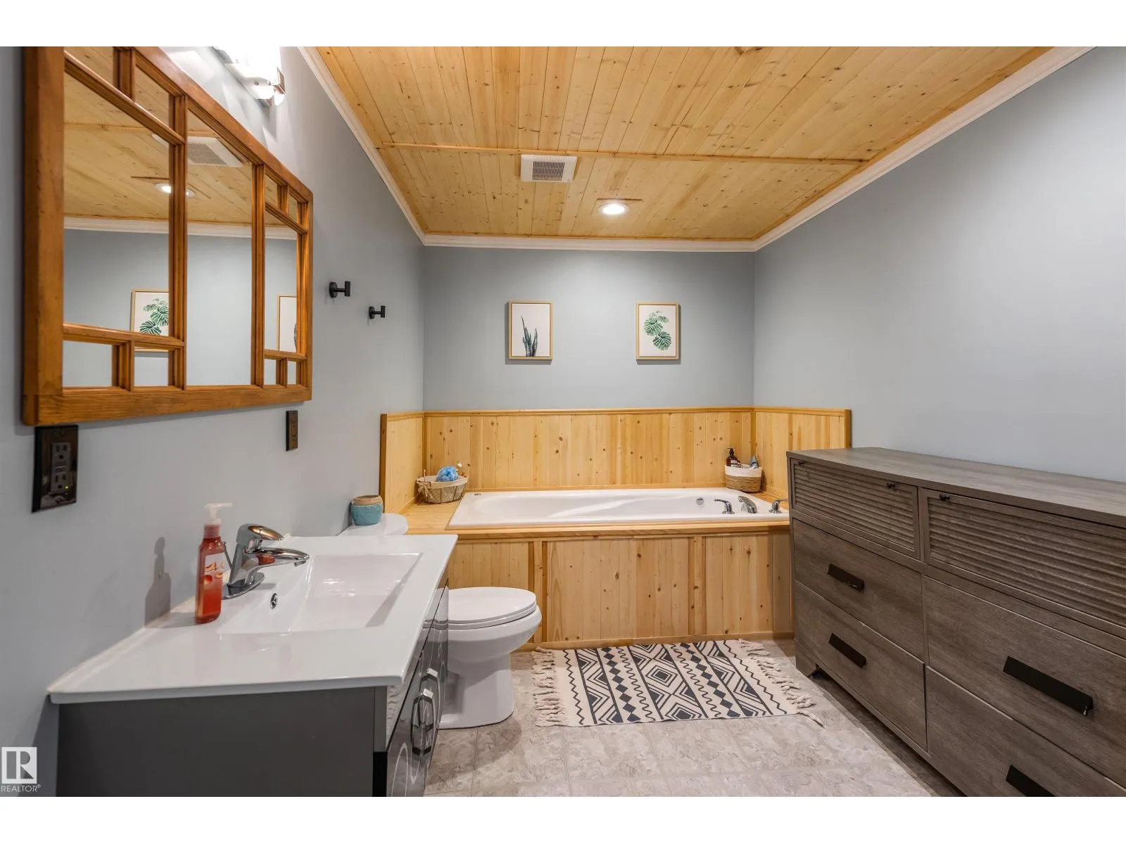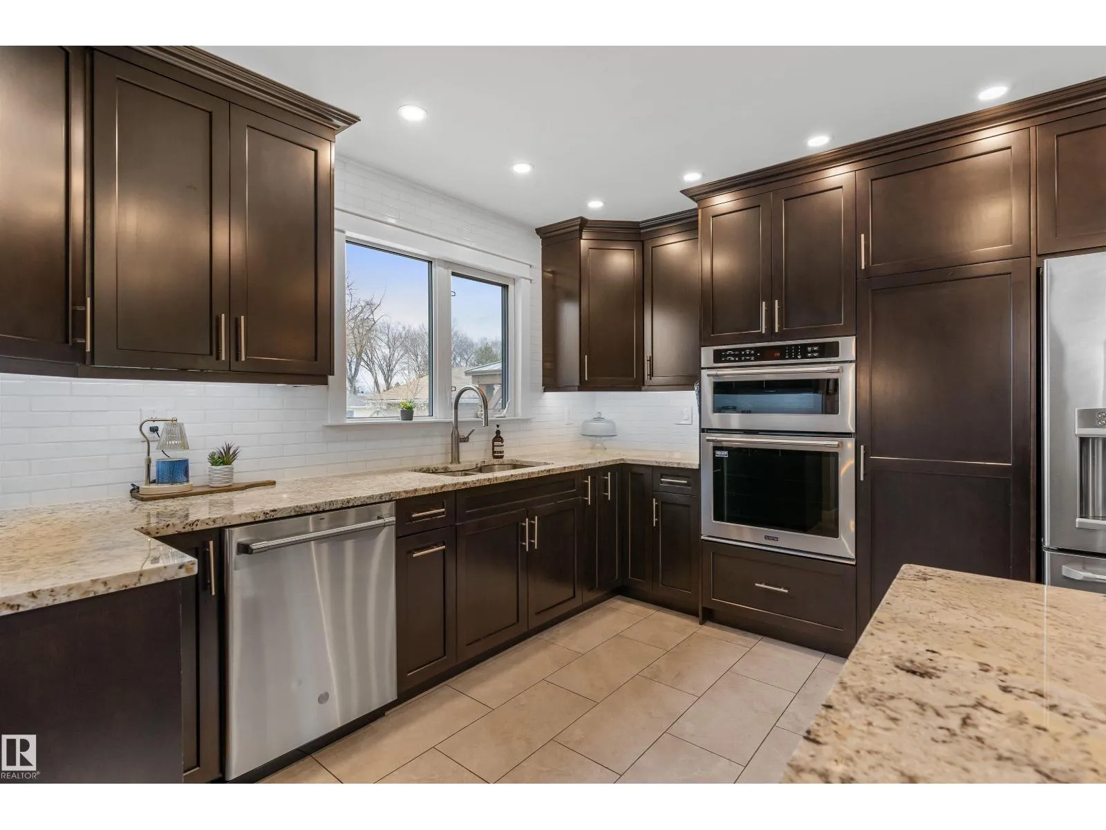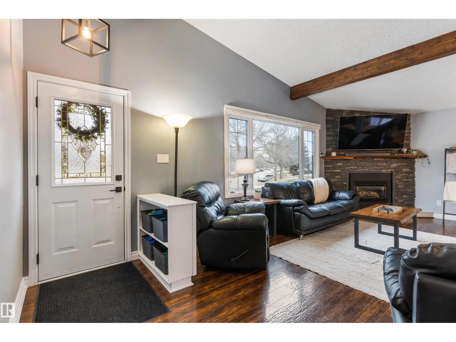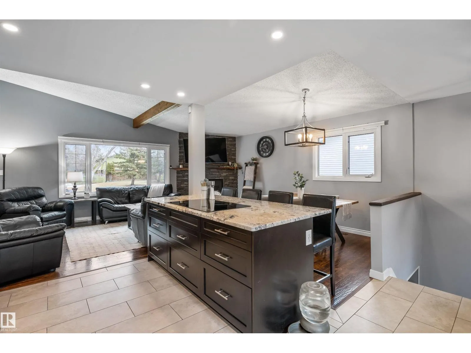 On a mature street in Pineview, discover this FULLY RENOVATED & spacious BUNGALOW. The entrance welcomes guests w/ laminate flooring that spreads through most of the main floor. There are soaring VAULTED CEILINGS w/ open beams in the main living areas. The living room has a corner gas f/p. The chef’s kitchen feat a huge eating bar island, pantry, built-in