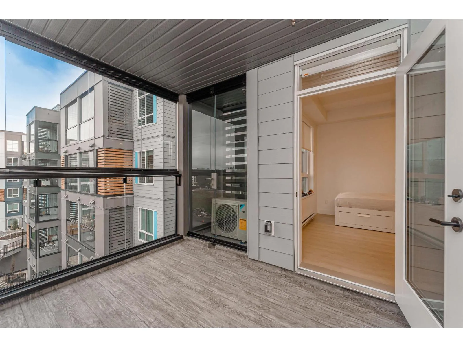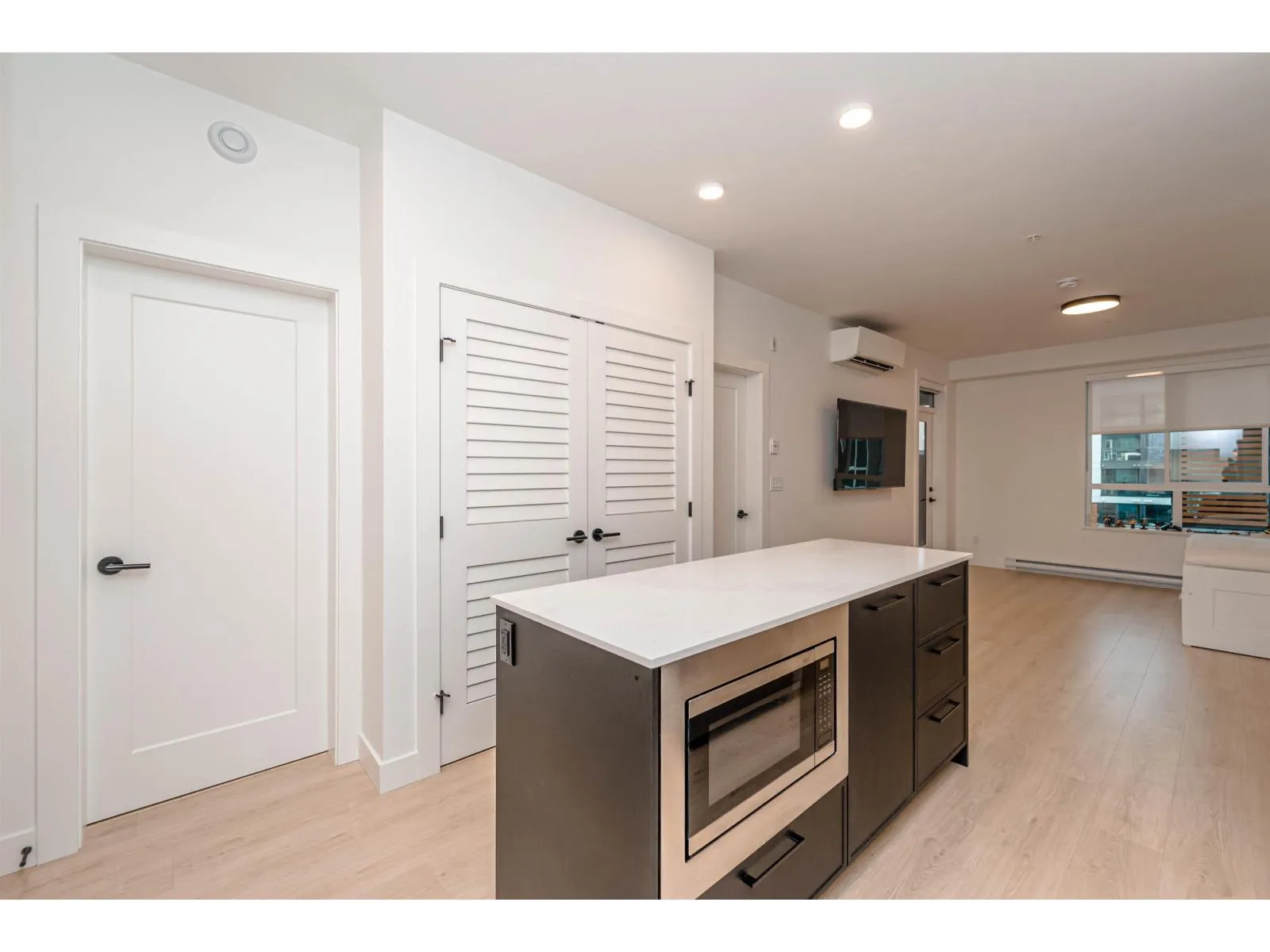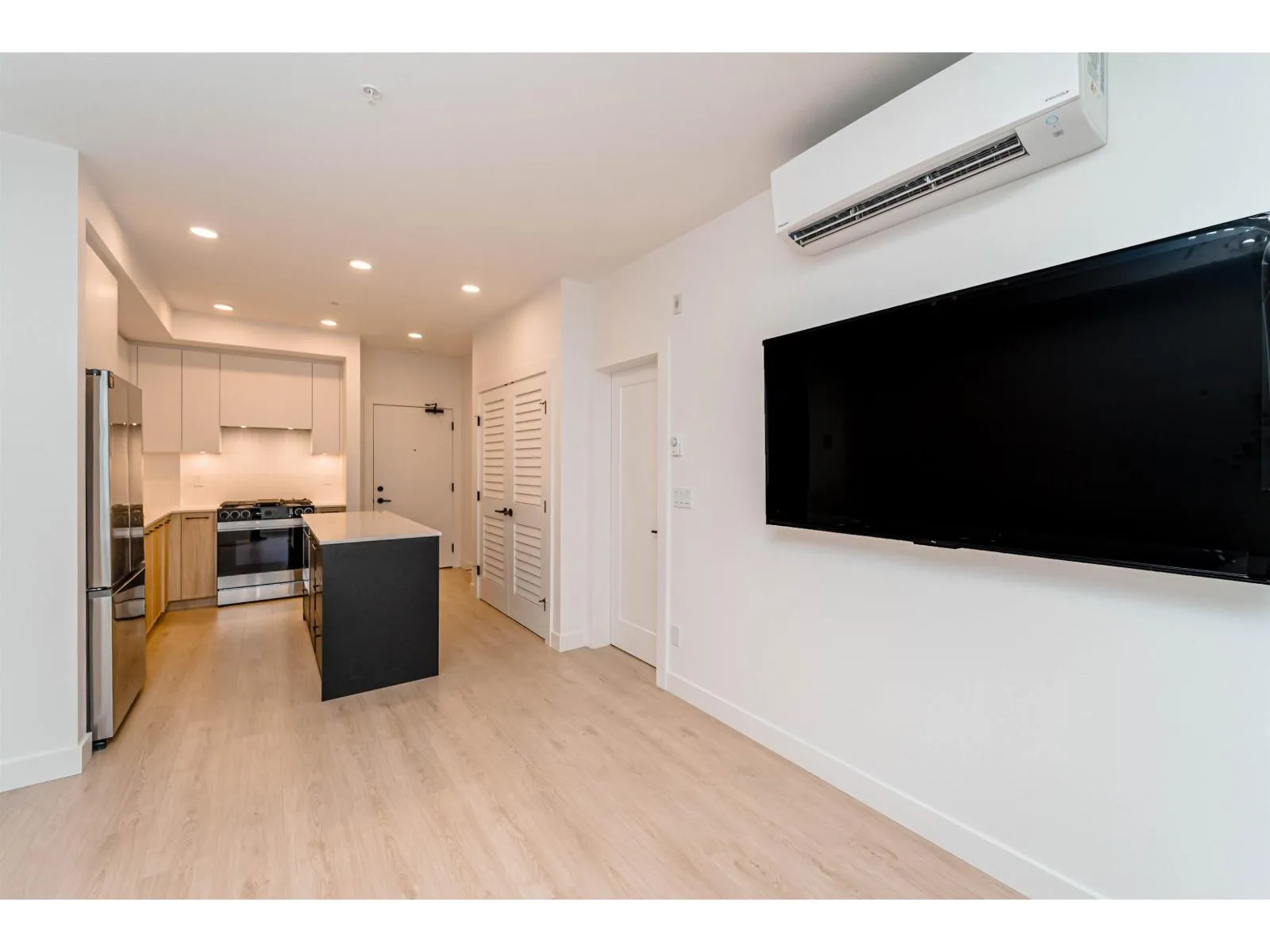 LIVE IN STYLE. Welcome to Hayer Town Centre located at 200 St & 76 Ave in West Langley, a master-planned community. Built in 2025- This unit plan features 1 bedroom, 1 bath, kitchen with quartz counter tops/ S/s appliances/ modern cabinetry, bright living area with air conditioning, in suite laundry and a spacious solarium with retractable upper glass. The stand-alone