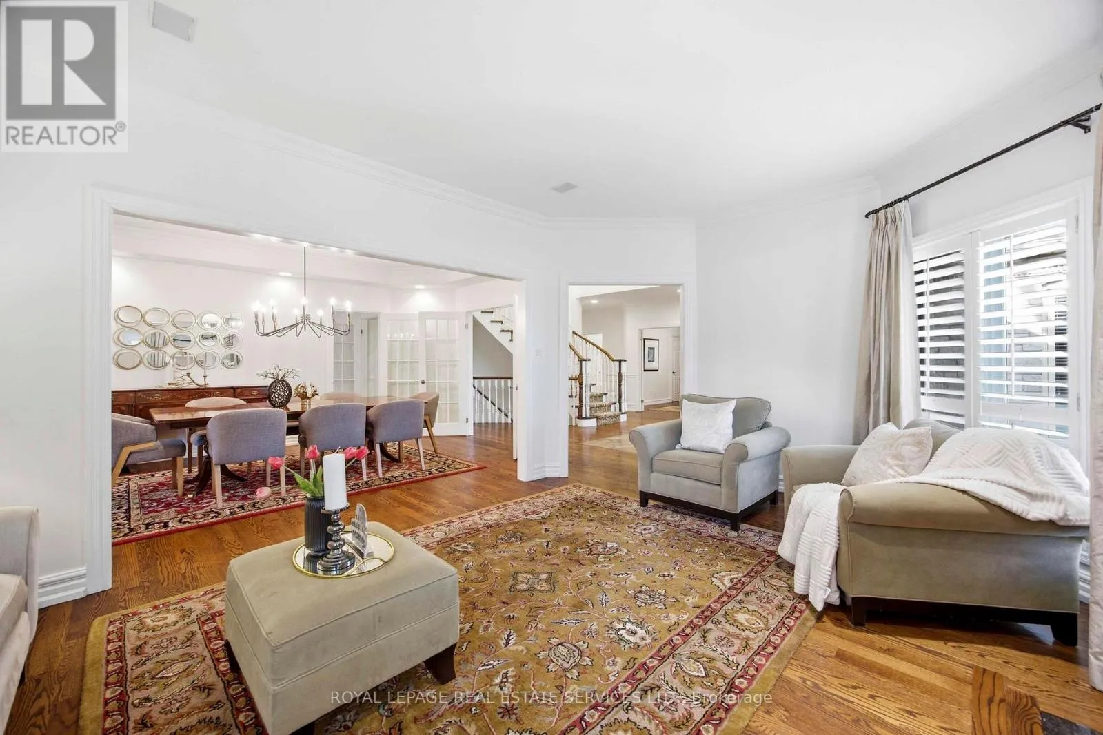 A stately and beautifully appointed residence located on a 70 x 165 foot lot in the prestigious Thorncrest Village, offering 5+1 bedrooms and 5 bathrooms across generously scaled living spaces. Defined by its craftsmanship and natural light, the grand foyer makes an immediate impression with cathedral ceilings, a winding staircase, elegant wainscoting, and rich hardwood flooring. Expansive windows throughout bathe