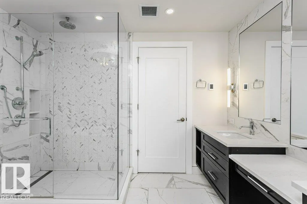 Welcome to West Block Glenora, luxurious condo living located in one of Edmonton’s most desirable areas. Upon entering 904 you’ll find the open concept living room plus the kitchen and dining area. On either side of the living area are two bedrooms, each with their own ensuite and walk in closet, plus a powder room and laundry room. The floor