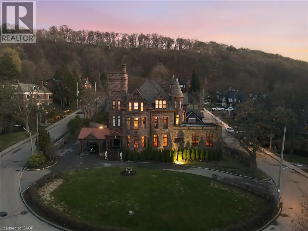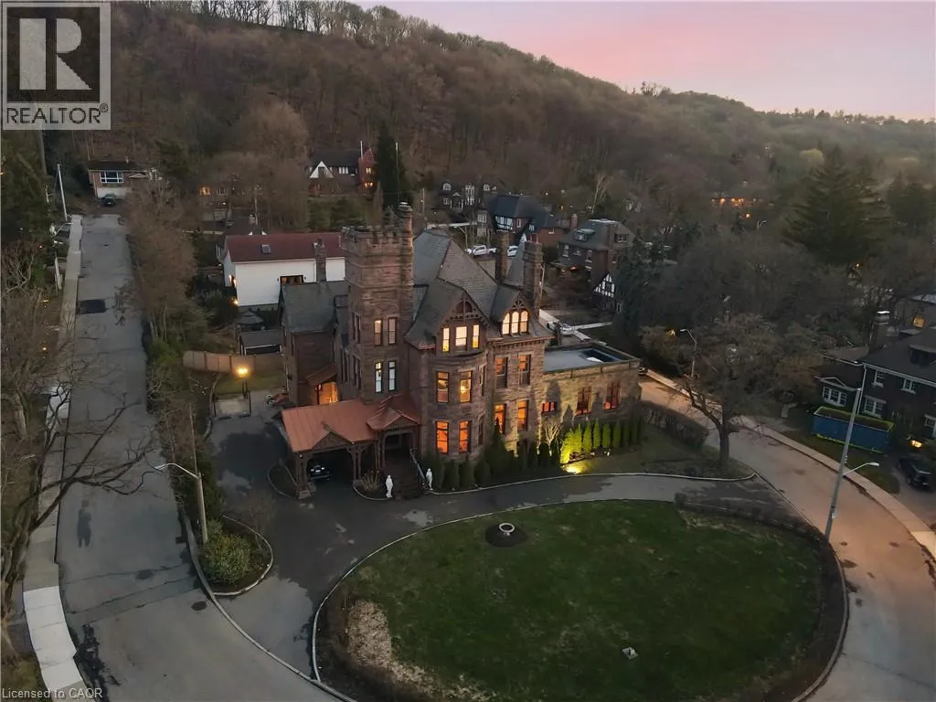 A landmark of extraordinary distinction, Ravenscliffe Castle stands as one of Hamilton’s most iconic and historically significant residences. Built in 1881 by renowned architect James Balfour, this Romanesque Gothic masterpiece is crafted from imported Scottish stone and defined by dramatic rooflines, a commanding five storey tower, and a striking turret that rises above the surrounding treetops. Spanning approximately 12,000 square
