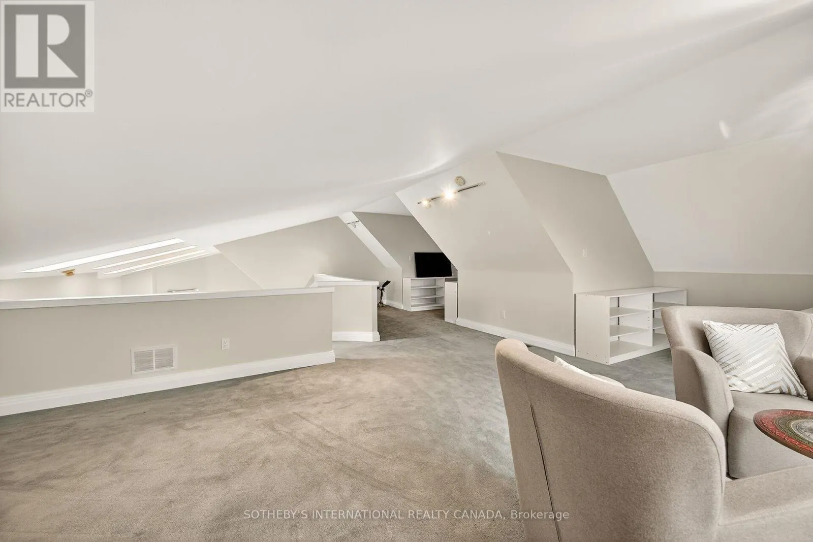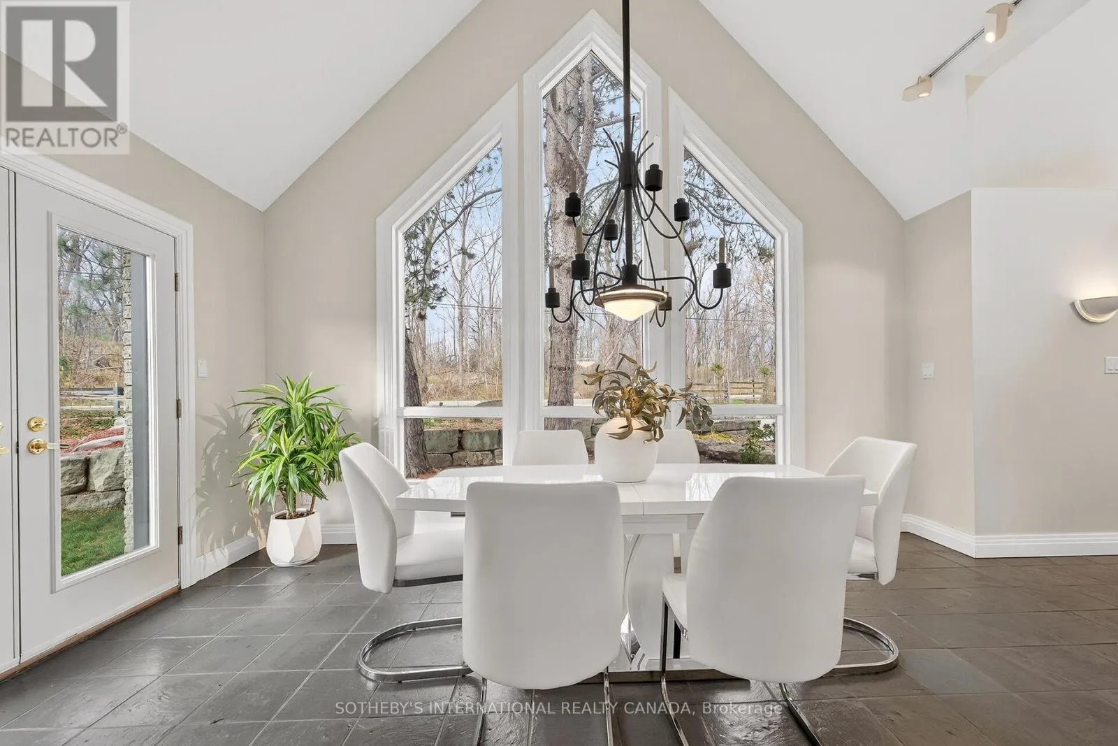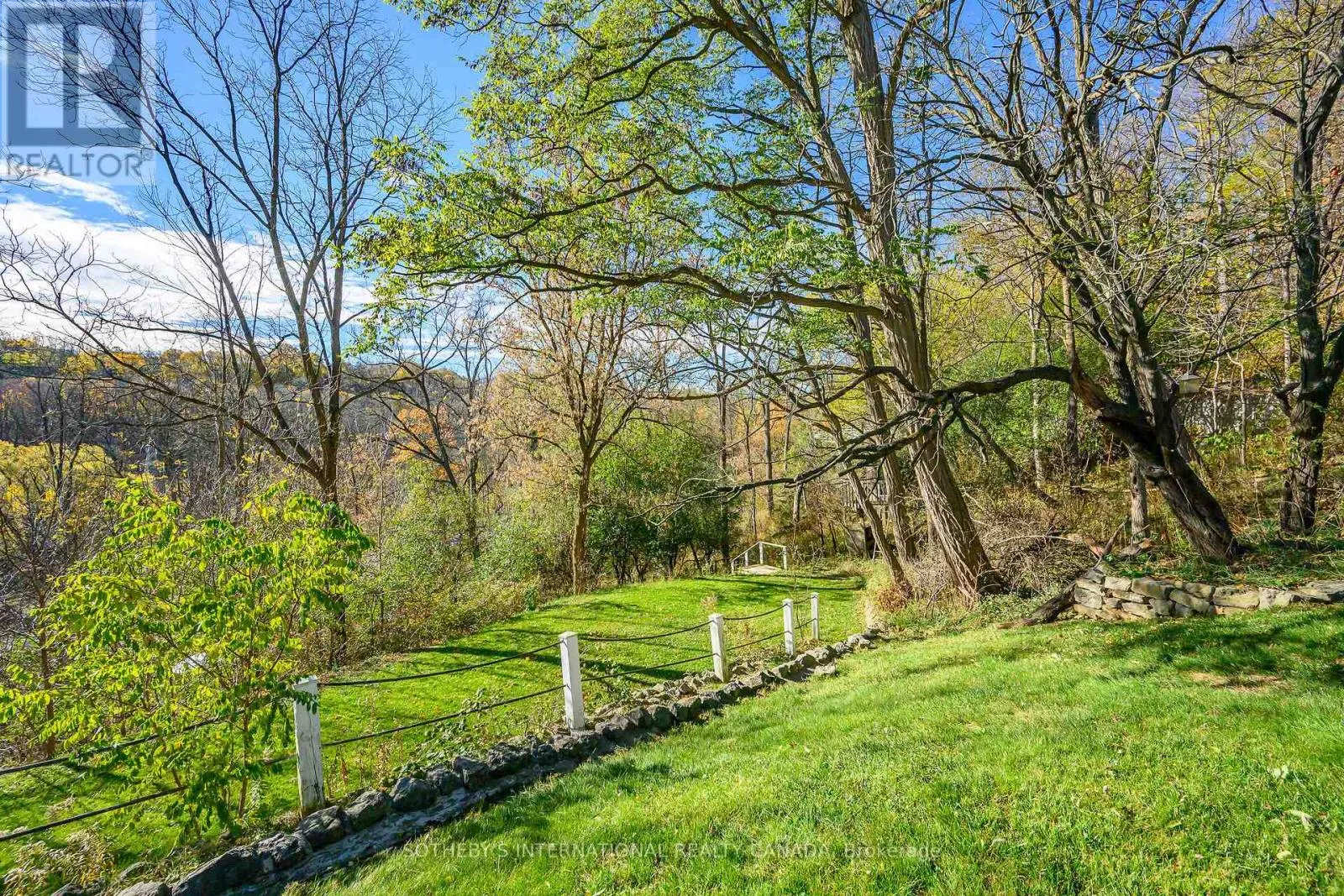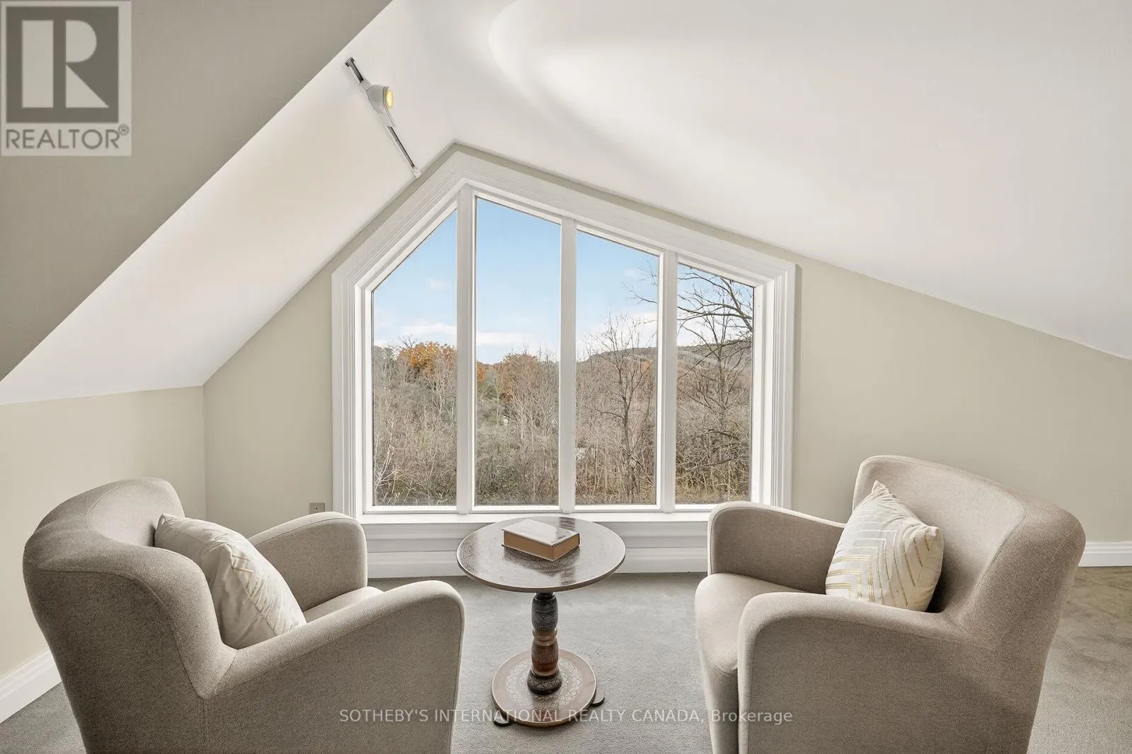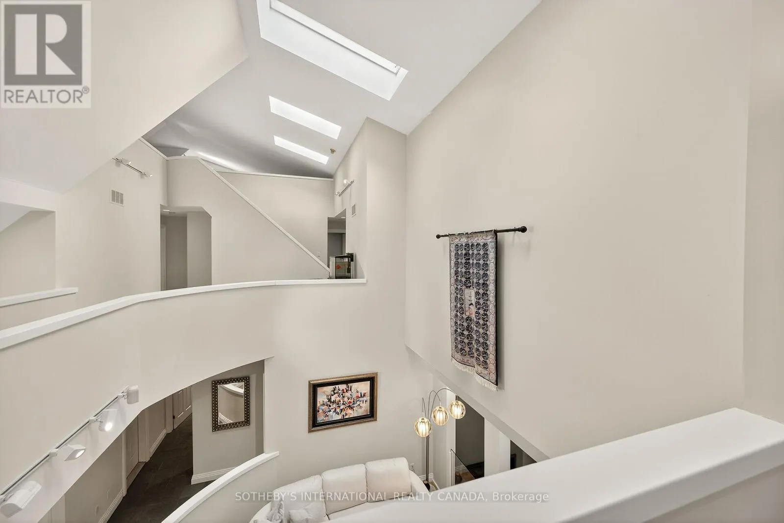 Breathtaking Ravine Views Meet Striking Architectural Design Set on over two acres of secluded woodland, this extraordinary custom-built estate blends dramatic architecture with natural serenity. From the moment you enter, soaring 23-ft ceilings and numerous skylights flood the home with sunlight, highlighting sweeping open-concept spaces and elegant curved upper hallways. Picturesque windows capture stunning ravine and forest views, creating a