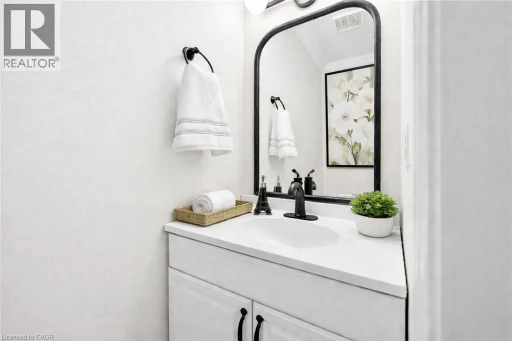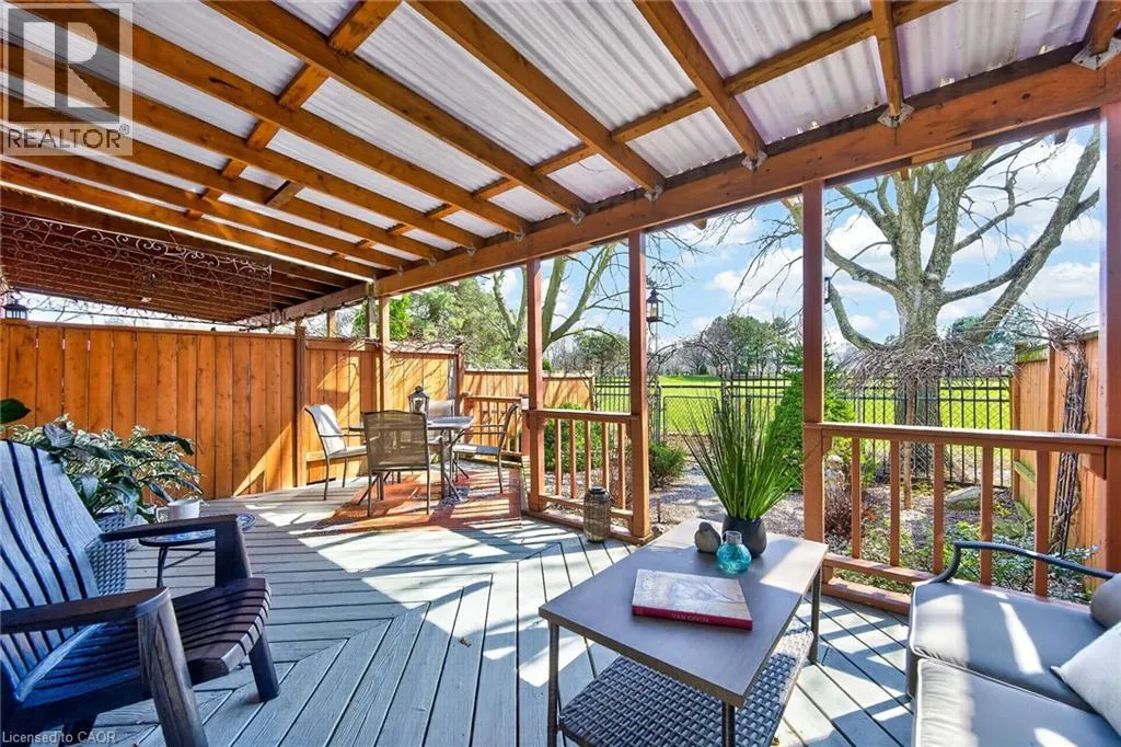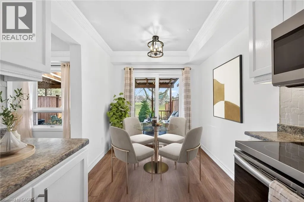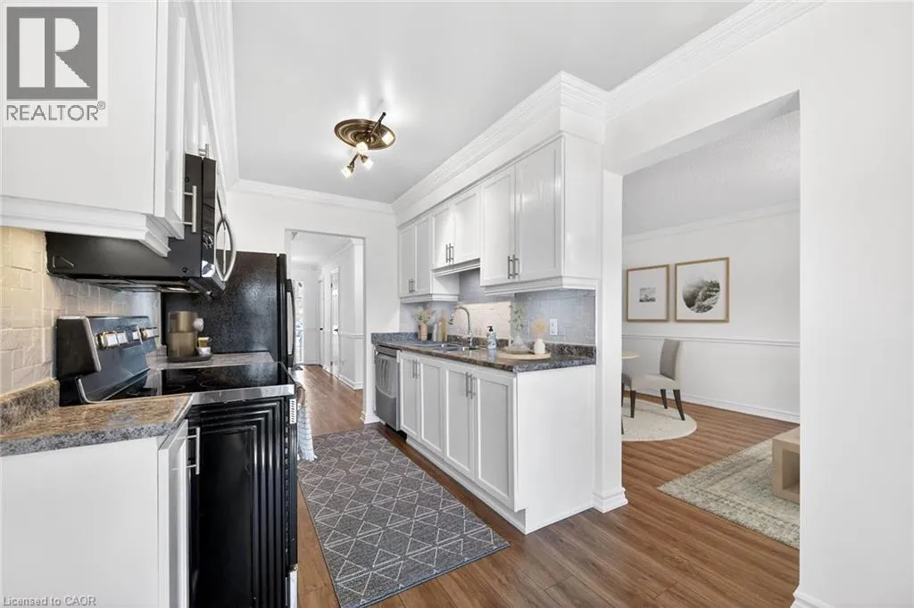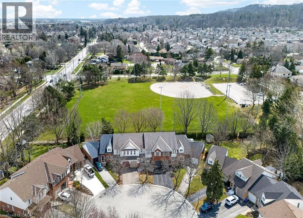 STUNNING 3 BEDROOM, 2.5 BATH, FREEHOLD TOWNHOME ON QUIET COURT backing onto Parkland. This spacious home is beautifully finished top-to-bottom. Welcoming foyer leads to gracious living room/dining room with crown moldings throughout. Fabulous kitchen with abundant cabinetry & appliances. Sliding doors from kitchen lead to serene backyard oasis with expansive covered deck, fenced yard with park & escarpment views. Large