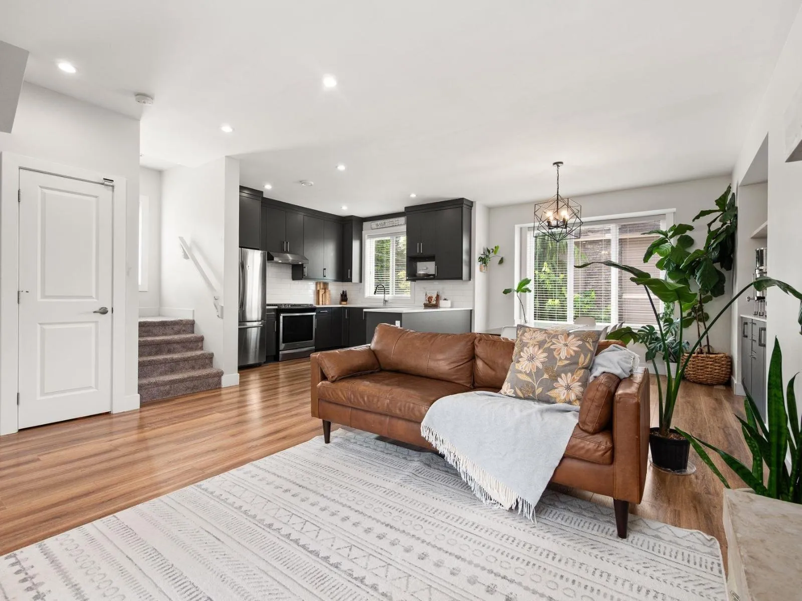 This beautiful family home is spacious & elegant featuring an open floorplan, laminate flooring, tall, dark cabinets & plenty of storage. Add’l Built-in storage in dining area. Walk out to the covered living space with gas fireplace & enjoy the beautiful view of farmland & nature to the east! Convenient powder room on main floor & office space. Upstairs