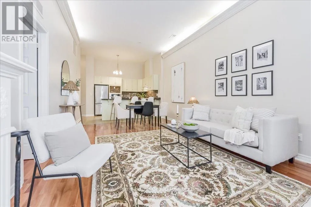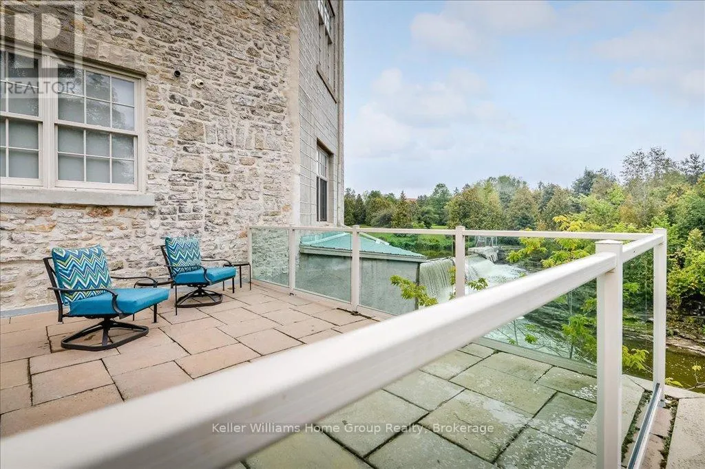 Heritage Charm Meets Riverside Serenity. A rare opportunity to downsize without compromise: Suite 104 at the Fergus Mill offers unmatched value with **6 months of condo fees included in the purchase**, giving you a worry-free start to homeownership. Set in one of Centre Wellington’s most iconic buildings, this ground-level condo blends historic character with modern comfort. It features soaring ceilings,