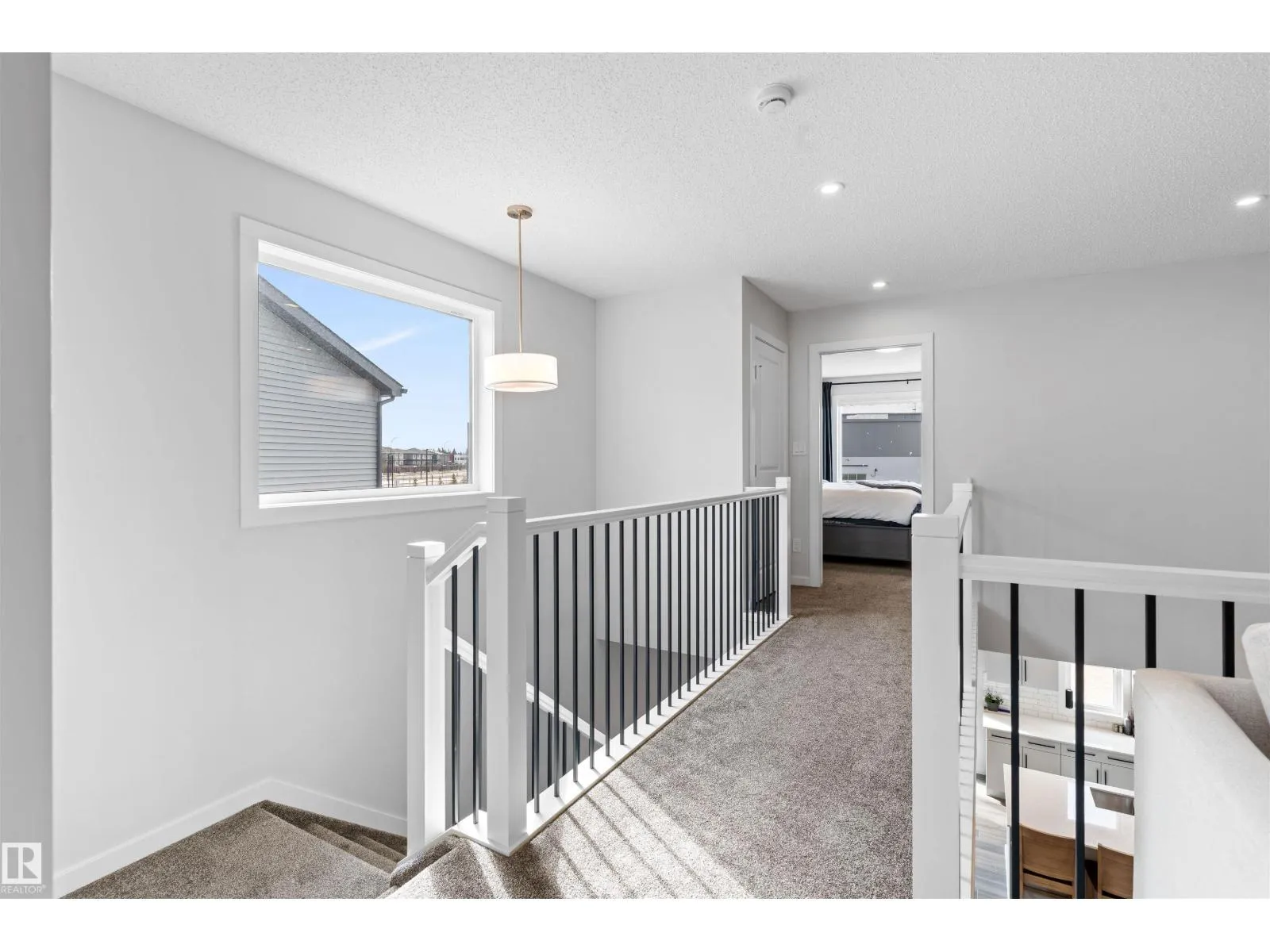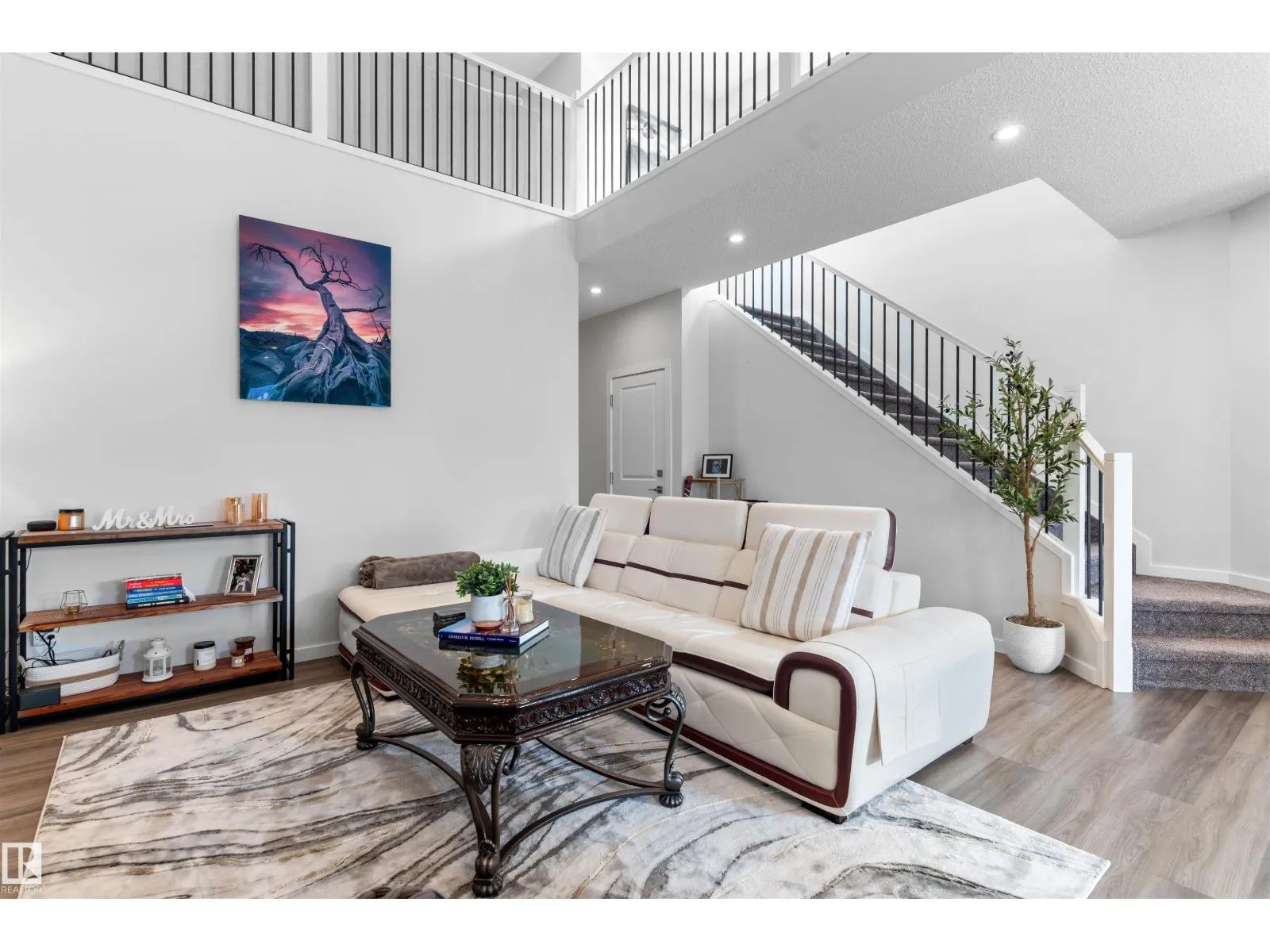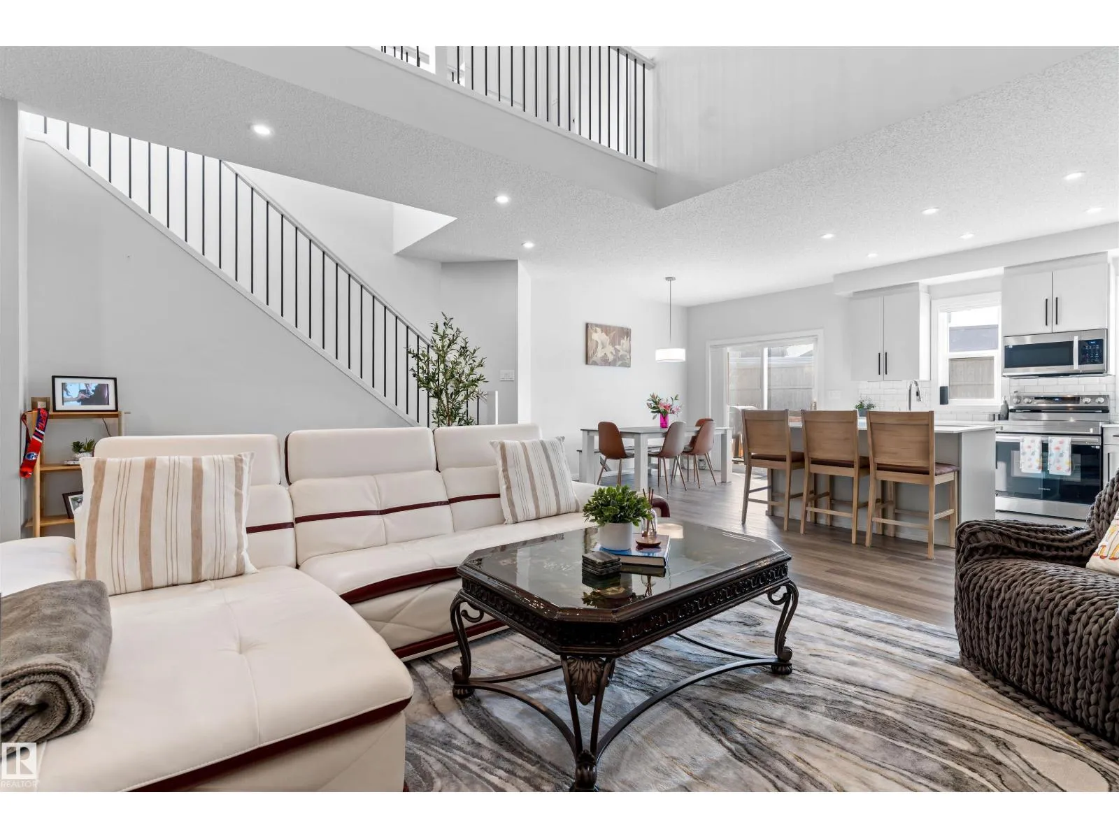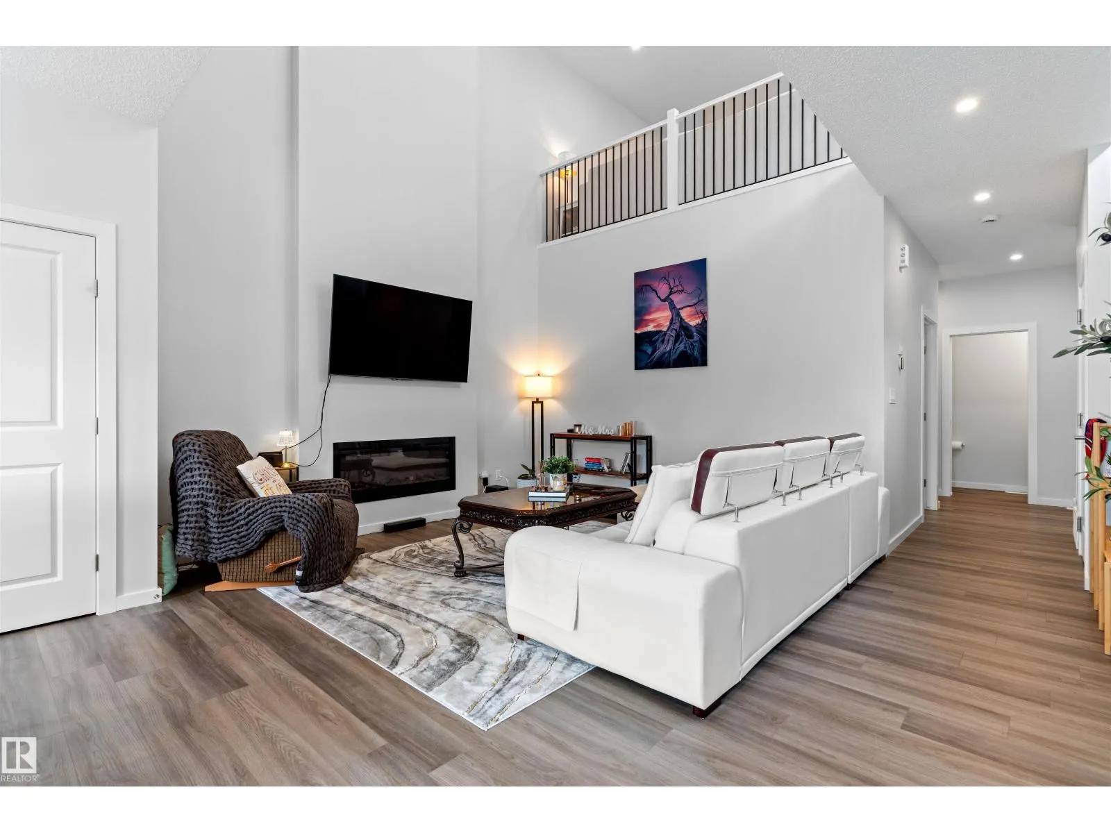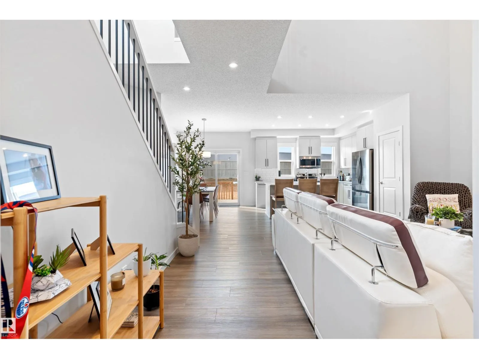 Step into this like-new SHOW HOME QUALITY two-storey residence, built by Bedrock Homes, and experience exceptional quality throughout. This bright, move-in-ready home offers approximately 2,068 sqft with impeccable finishes, including luxury vinyl plank flooring and LED pot lights. The main floor features soaring 9’ ceilings, an open-to-below great room w/ a cozy fireplace, and a convenient main-floor den/office & bath.
