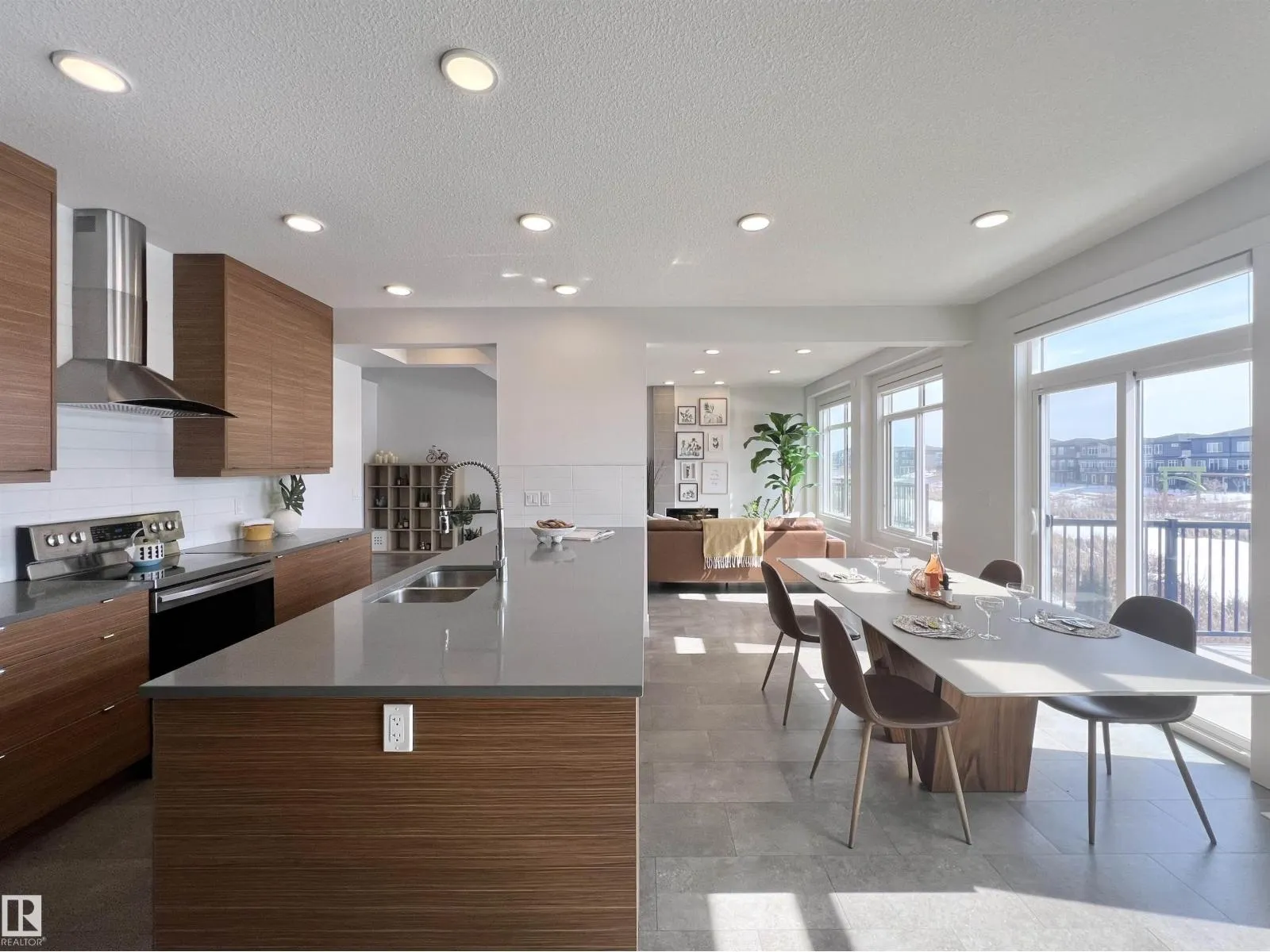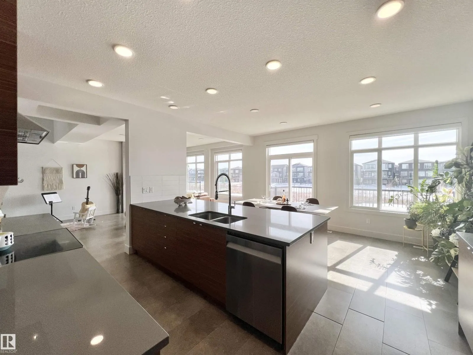 Welcome to this WALKOUT basement home w/ SOUTH backyard in Arbours of Keswick, backing onto a POND w/private seaside escape in SW Edmonton • features 32′ wide lot and oversized double garage and well maintained front and back lawns, central A/C • Main floor: 9ft ceilings, upgraded cork flooring, a cozy fireplace, bright open-to-above foyer that enhances the sense of