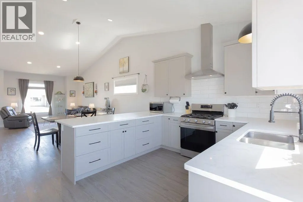 This exceptional, move-in ready home delivers a true “wow” factor from the moment you step inside. The bright, open-concept main floor showcases a spacious kitchen and living area filled with natural light, enhanced by soaring vaulted ceilings and recessed lighting for a refined, modern feel. The kitchen is beautifully appointed with quartz countertops, stainless steel appliances, and sleek finishes, while