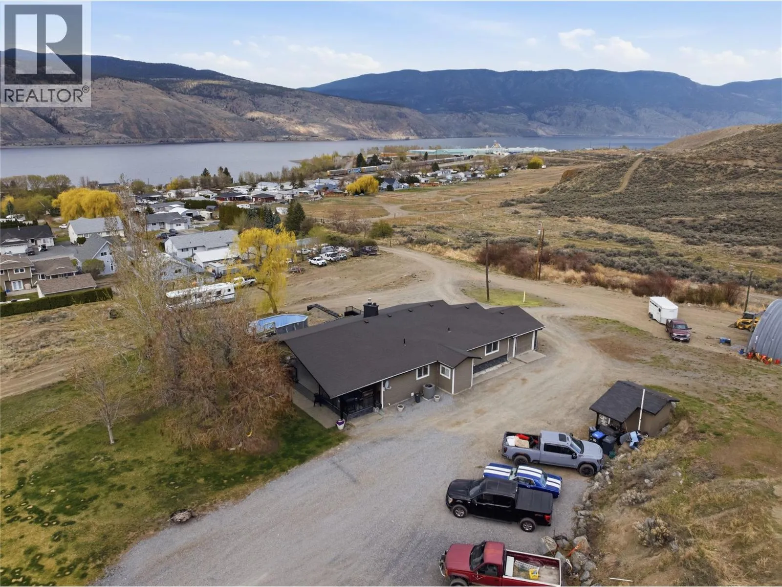 Experience the perfect blend of country charm and modern living at this stunning 39.65-acre property with panoramic views of Kamloops Lake. This beautifully updated farmhouse features a chef’s kitchen with gas stove, quartz countertops, and a sleek, open design ideal for entertaining. Enjoy a large covered porch and sundeck that capture breathtaking sunsets — perfect for those warm Kamloops summers.