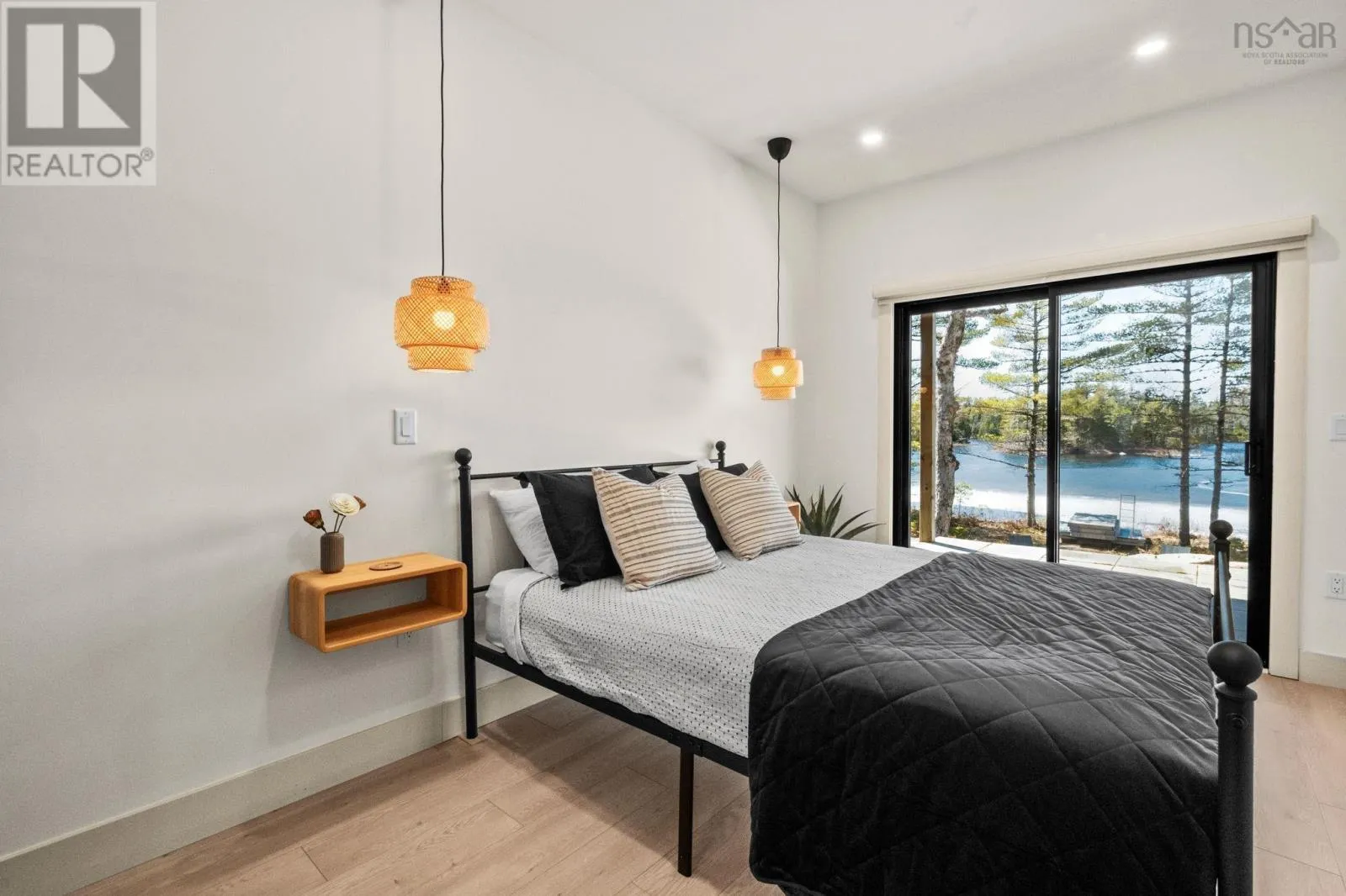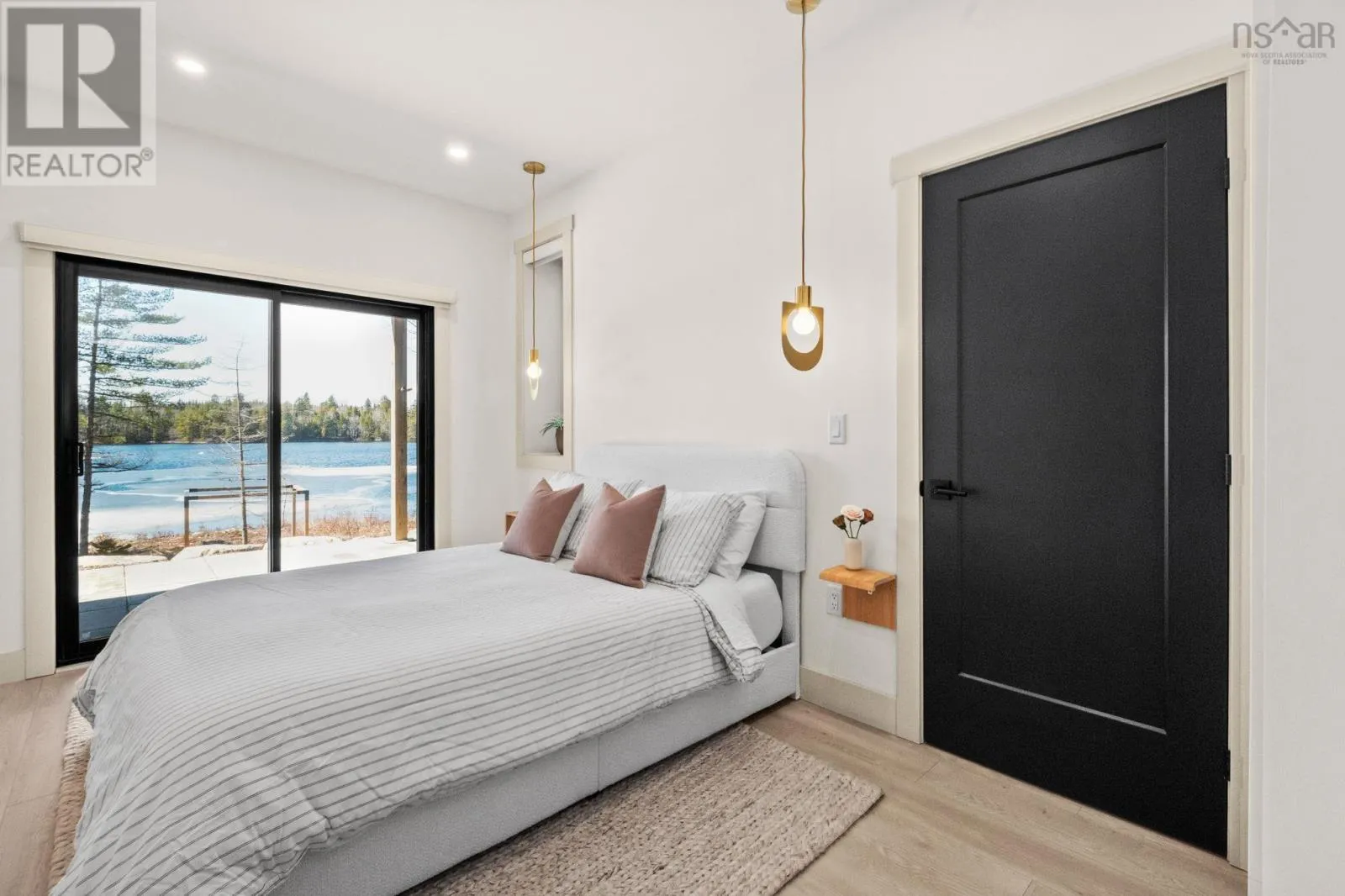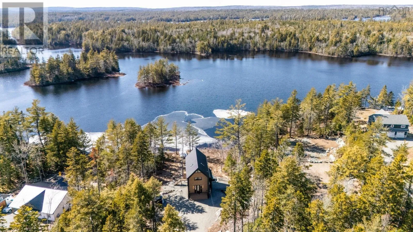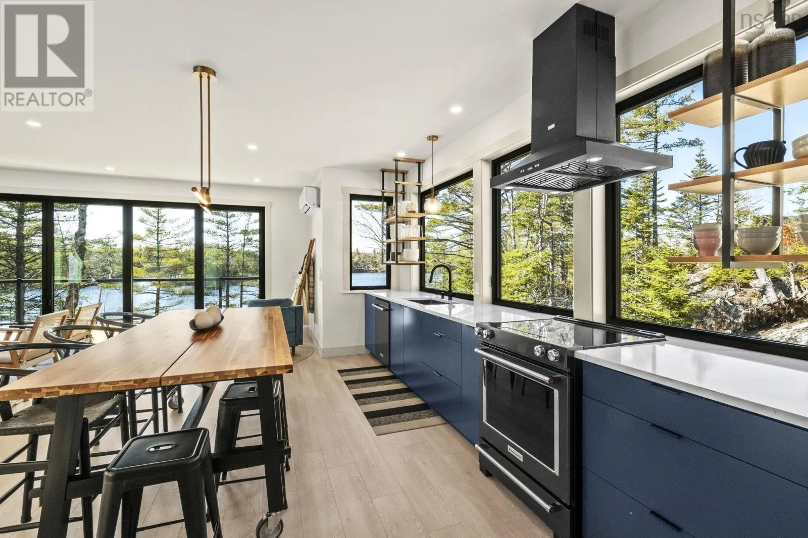 Tucked into a quiet cove on sought-after Long Lake, 179 Meek Arm Trail offers a rare blend of modern Scandinavian design and exceptional waterfront living. Built in 2023 and set on a private 1.25-acre, tree-lined lot, this custom home is thoughtfully positioned to capture nearly 270-degree lake views and a true connection to nature. The bright, open-concept main level is designed