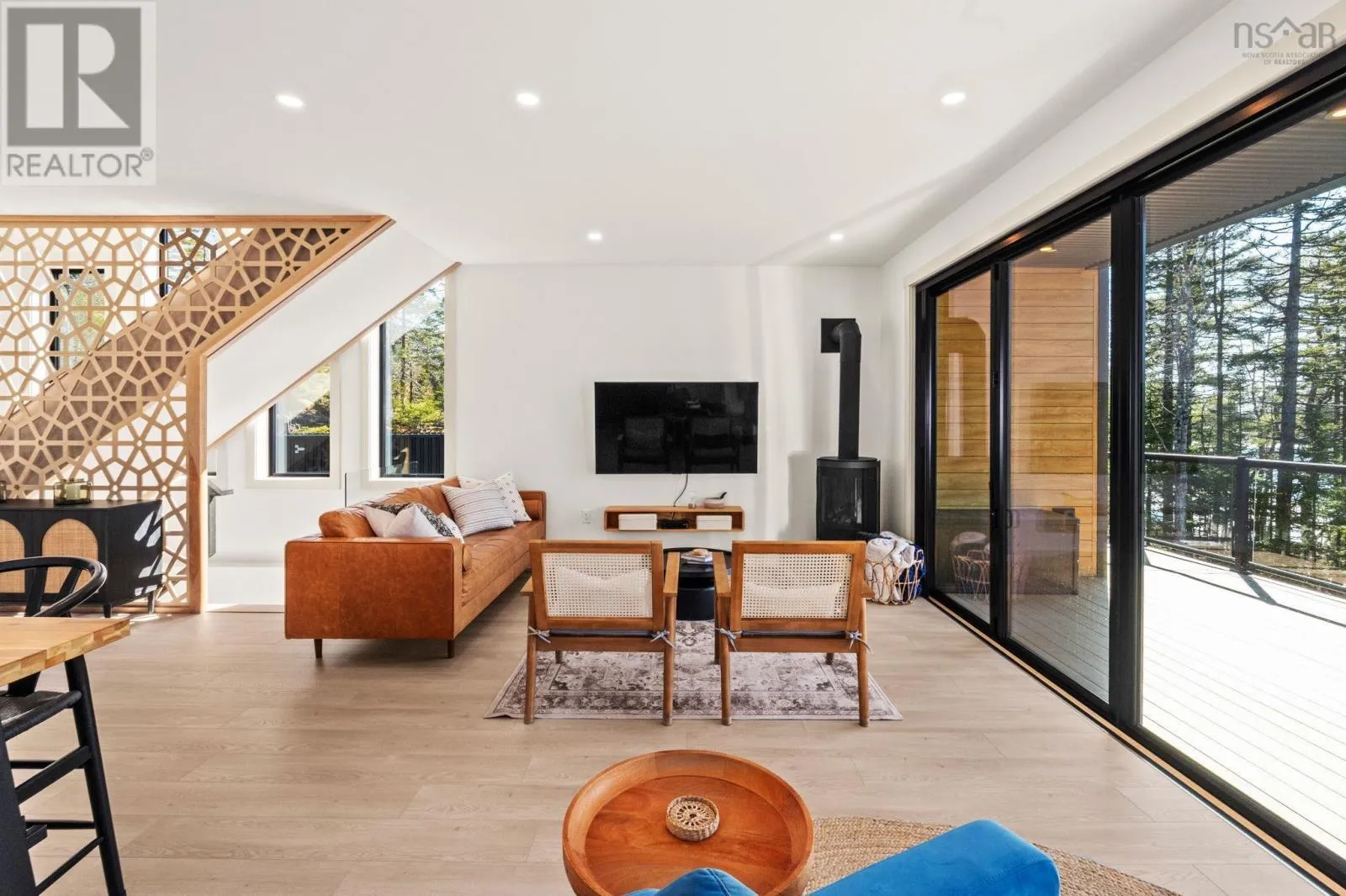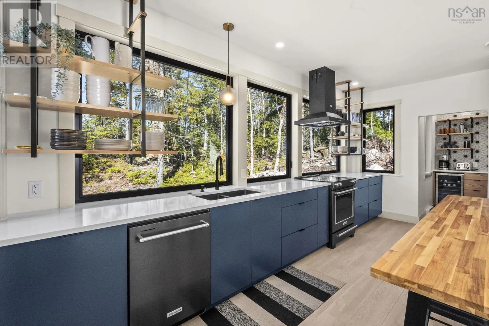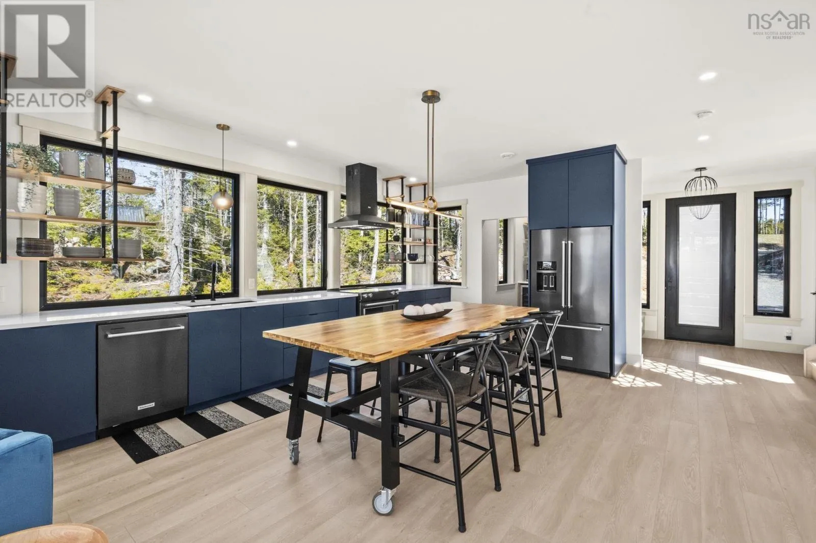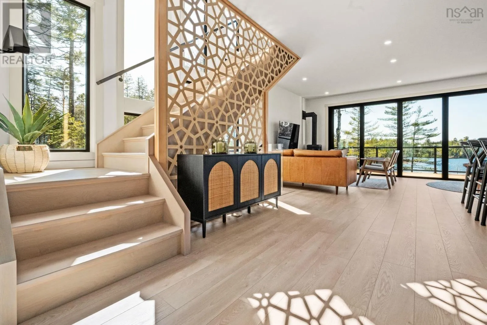 Tucked into a quiet cove on sought-after Long Lake, 179 Meek Arm Trail offers a rare blend of modern Scandinavian design and exceptional waterfront living. Built in 2023 and set on a private 1.25-acre, tree-lined lot, this custom home is thoughtfully positioned to capture nearly 270-degree lake views and a true connection to nature. The bright, open-concept main level is designed