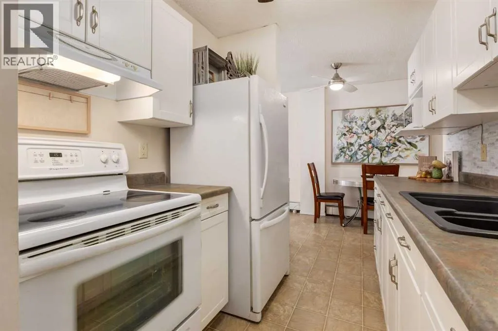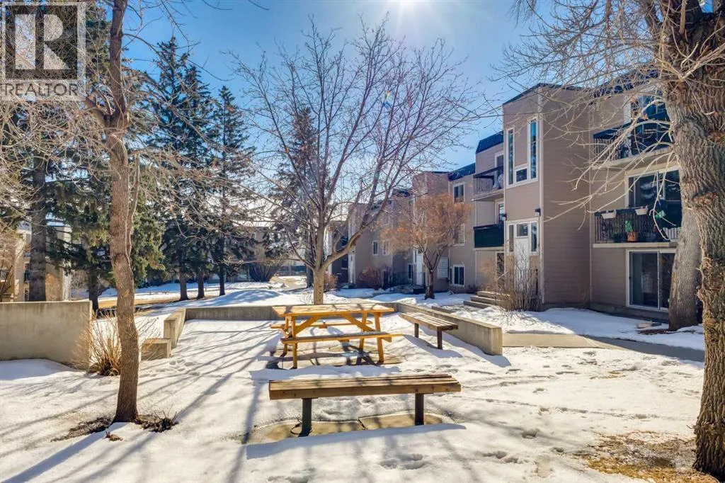 groceries, and a rear entrance providing easy access to the common laundry area, storage, and tranquil courtyard. The centrally located kitchen has been thoughtfully improved from the original and offers ample storage with additional cabinetry, plenty of counter space, and a comfortable eat-in dining area. With convenient openings at both ends of the kitchen, the layout allows for easy flow and accessibility while preparing meals or entertaining. The spacious living room easily accommodates your furniture and is filled with natural light from oversized sliding doors (replaced in 2019) that open onto your patio flanked by beautiful lilac bushes, creating a fragrant summer retreat. All of the windows were replaced in 2019 and brand new carpeting adds comfort and a fresh feel throughout the living spaces. The oversized primary bedroom offers a large closet and plenty of space for your king-sized bed. The second well sized bedroom provides flexibility as a home office, hobby room, fitness space, or guest room. A 4 piece bath completes the interior offerings. The well-managed complex has seen significant exterior improvements which have boosted the curb appeal – they include a new roof and Hardie Board siding in 2017, along with new concrete walkways and entry areas in 2020. The combination of these items has led to a refreshed appearance and revitalization. One assigned parking stall is included just steps from your door, for those needing an additional space there is a possibility of leasing an additional stall. Enjoy the convenience of this fantastic walkab le location, with restaurants, schools, grocery stores and everyday services/amenities just minutes away. Commuting is a breeze with access to the Heritage LRT Station and major roadways like Macleod, Deerfoot & Blackfoot Trails nearby. You will find popular stores such as HomeSense & Winners as well as South & Chinook Centre Malls and shopping district Deerfoot Meadows all close by. Outdoor enthusiasts can easily run, walk or cycle down to the Bow River Pathways or head in the other direction over to the Glenmore Reservoir. If you don’t already know Acadia is known for its mature trees, excellent access to amenities, and unbeatable connectivity throughout the ever growing city. Come see this unit for yourself. (id:64429)