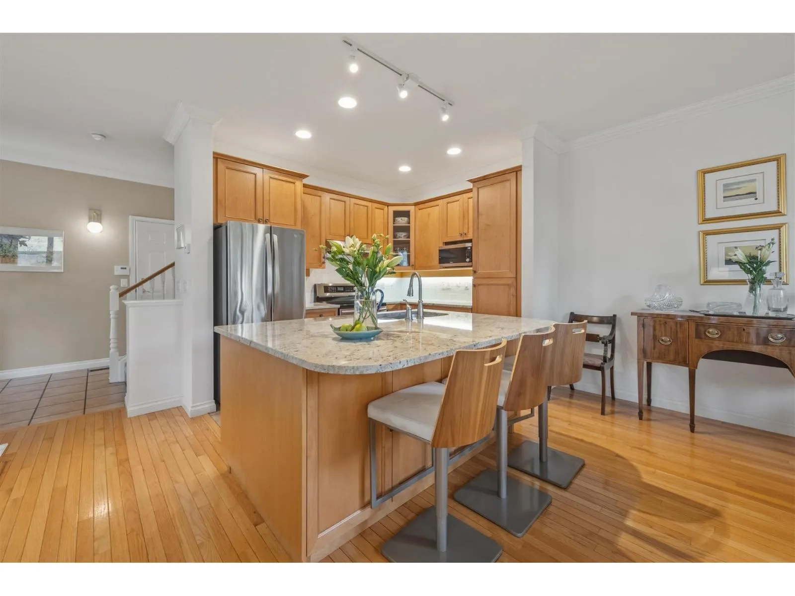 Experience Elegant Living at Highgrove II. Welcome to this stunning 55+ semi-detached townhome, where comfort meets craftsmanship. The heart of the home is a chef-inspired kitchen-featuring rich maple cabinetry and granite countertops-that flows seamlessly into an open-concept dining and living area anchored by a cozy fireplace. Expansive windows frame a private, lush garden retreat, creating an oasis for morning
