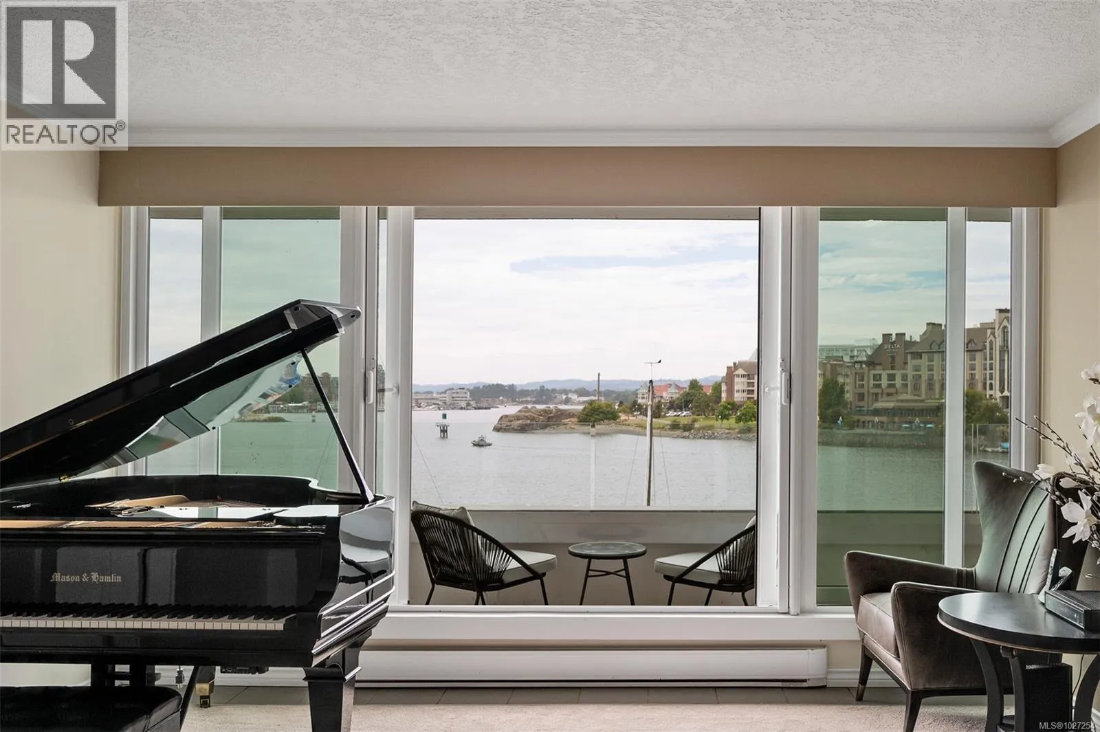 Experience luxury living in one of the finest oceanfront residences in historic Victoria, offering truly unmatched 185-degree views over the inner Harbour. This direct ocean-facing unit delivers a view so extraordinary it must be seen in person to be fully appreciated. The ocean feels almost within reach, just beyond your expansive patio, where the water shimmers and changes throughout the