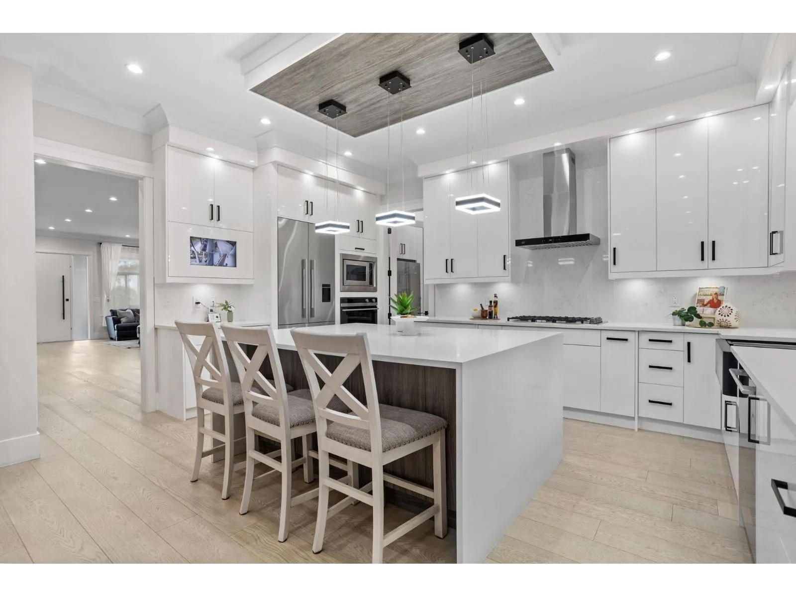 UNOBSTRUCTED RIVER VIEWS! This 2022-built 8BR/7BA masterpiece offers over 4,700 sqft of luxury with breathtaking views of the Fraser River. The main level boasts an open-concept layout, complete with both gourmet and wok kitchens. A rare main floor bedroom with ensuite provides an ideal space for multi-generational living. Enjoy the heated patio for seamless indoor-outdoor enjoyment. Upstairs, a retreat awaits