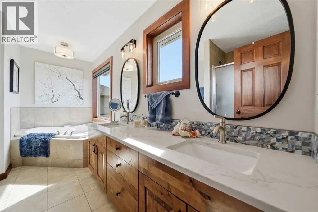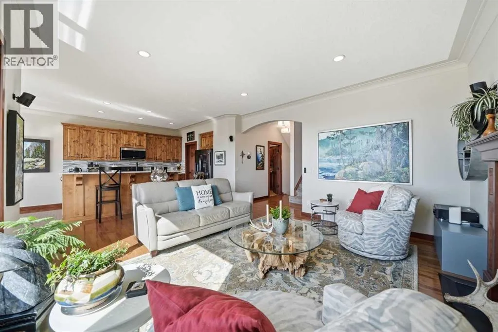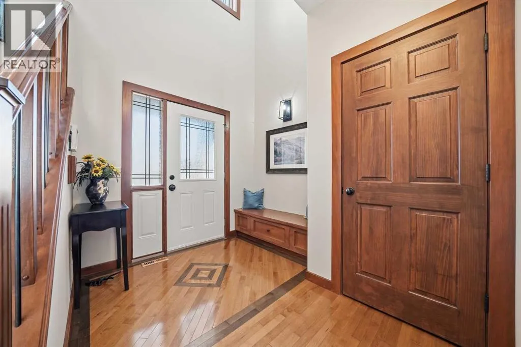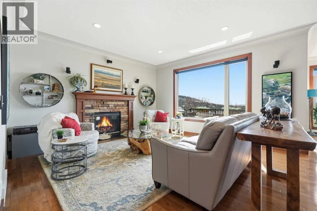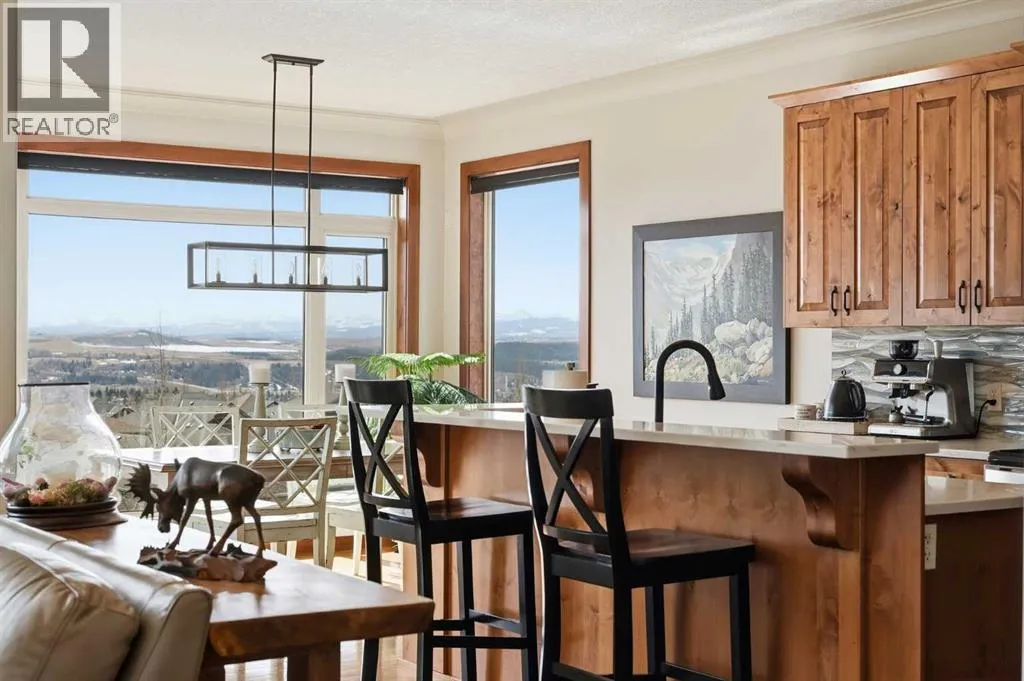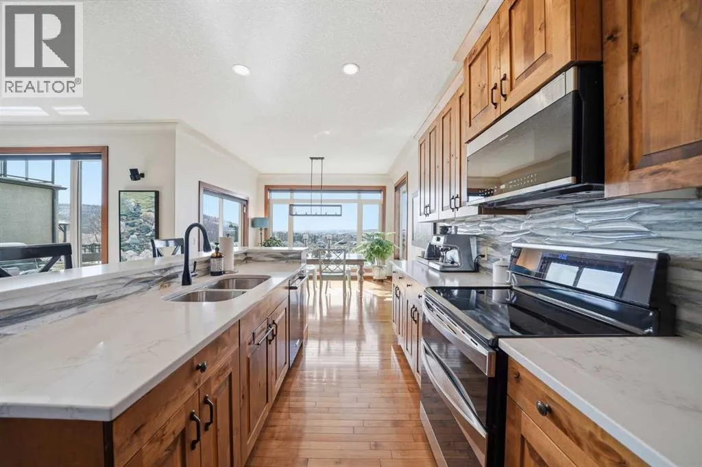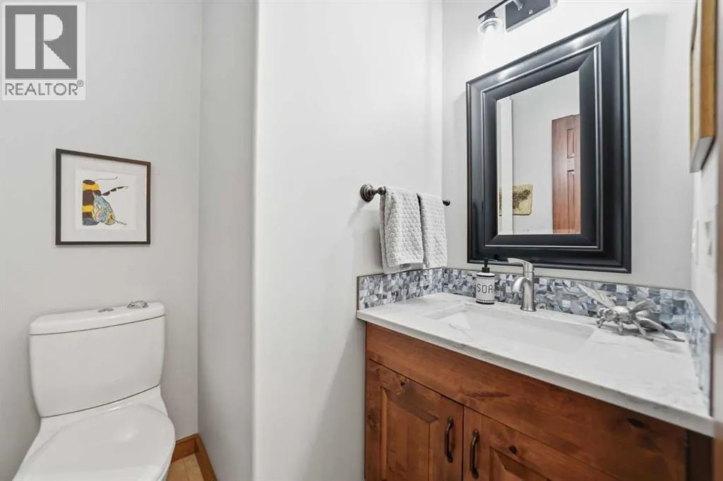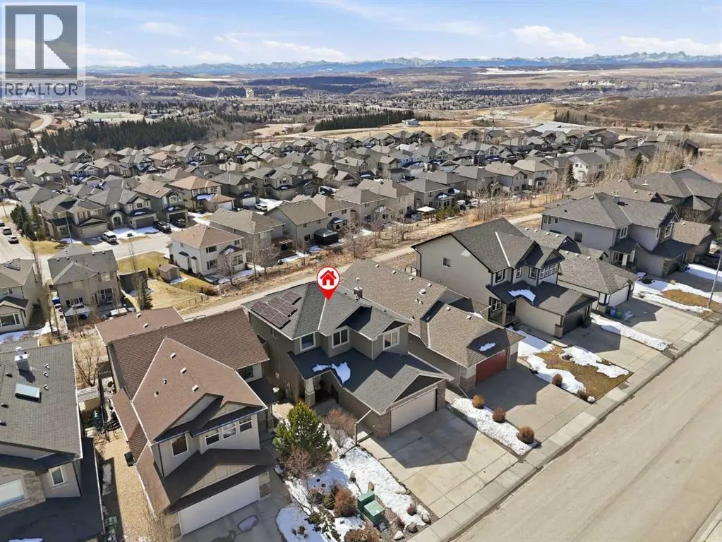 LOW TRAFFIC STREET just around the corner from a playground and with all levels of schools nearby. Immaculately clean and move-in ready – just bring your suitcases! The pride of ownership is evident in all of the upgrades and renovations, including FULLY PAID SOLAR PANELS that significantly reduce utility bills, TWO NEW HOT WATER TANKS installed in 2022, and PREMIUM SMART BLINDS with dual blackout and solar shades. Every detail has been meticulously updated, from the FRESH PAINT and NEW PREMIUM CARPETING to the replacement of every light fixture. The build quality is evident in the solid wood doors, refinished trim and banisters, and wood shelving in all the closets and pantry. With an open plan concept, the main floor offers 9-foot ceilings and beautiful HARDWOOD with inlay detailing, leading to a large KITCHEN RECENTLY RENOVATED with elegant QUARTZ COUNTERTOPS, a new tile backsplash, premium appliances including a double oven, a new KitchenAid dishwasher, and custom drawer pull-outs. Relax on the deck overlooking the backyard, BBQ and enjoy the mountain views and frequent wildlife sightings. There is also an awning for shelter on hot days! Completing the main floor is a laundry room/mud room with a utility sink and powder room – also renovated to match the kitchen. Upstairs, the primary retreat remains a standout, strategically positioned to capture the mountain view, complete with a spa-like ensuite and walk-in closet. Completing the upper level are two generously sized additional bedrooms. The bright walkout level features IN FLOOR HEATING, a fourth bedroom, family room, a stor age/hobby room, and a radon mitigation system for total peace of mind. Outside, the professionally landscaped backyard with NEWLY INSTALLED TURF, connects you directly to recreation along the ravine pathways. Enjoy your private backyard space by the fire pit or barbecuing with friends on the patio. The cherry on top of this remarkable property is the FULLY INSULATED, HEATED, OVERSIZED GARAGE! This is truly a once in a lifetime home offering a laid-back Cochrane lifestyle with MILLION DOLLAR VIEWS for only $889,900. Call your Realtor for a private viewing! (id:62650)