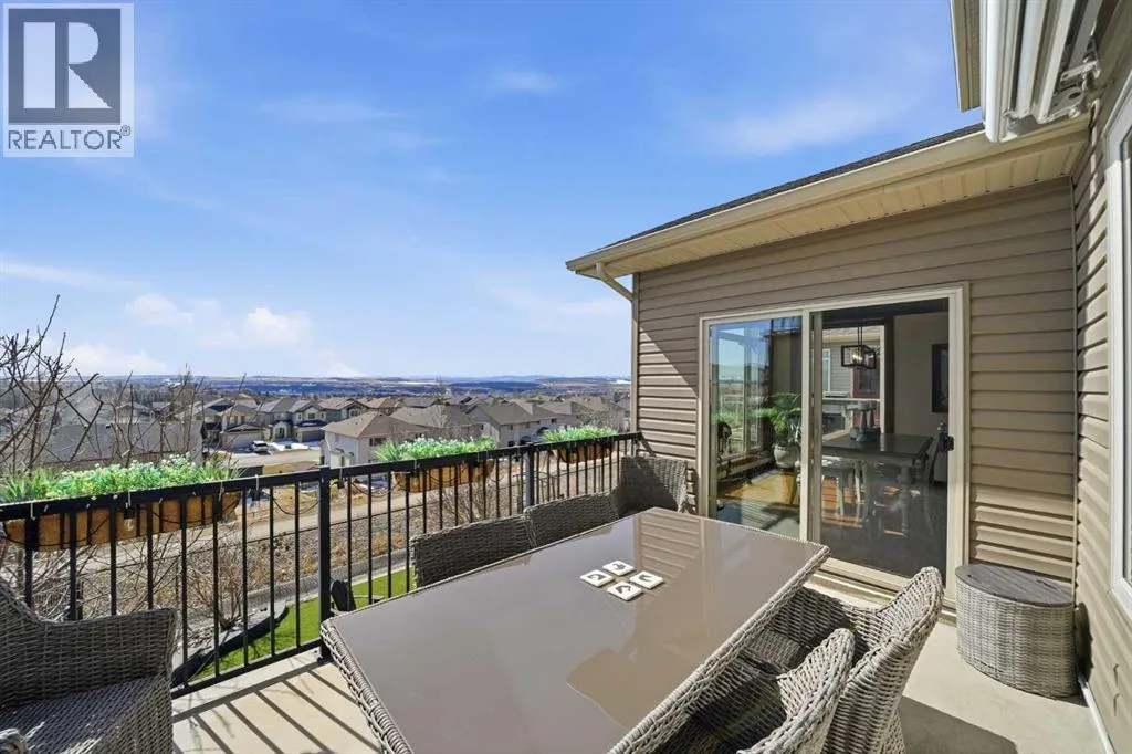 INCREDIBLE MOUNTAIN VIEWS! The coveted ridge location of 185 Sunset Circle will truly take your breath away, offering a daily panorama of the Rockies across all three levels of this exceptional 4 bedroom/3.5 bathroom WALKOUT home. Backing directly onto a walking path leading to Cochrane’s expansive trail system, this fully finished and AIR CONDITIONED two-storey residence sits on a QUIET,