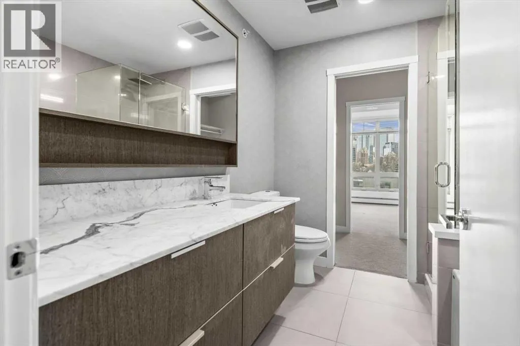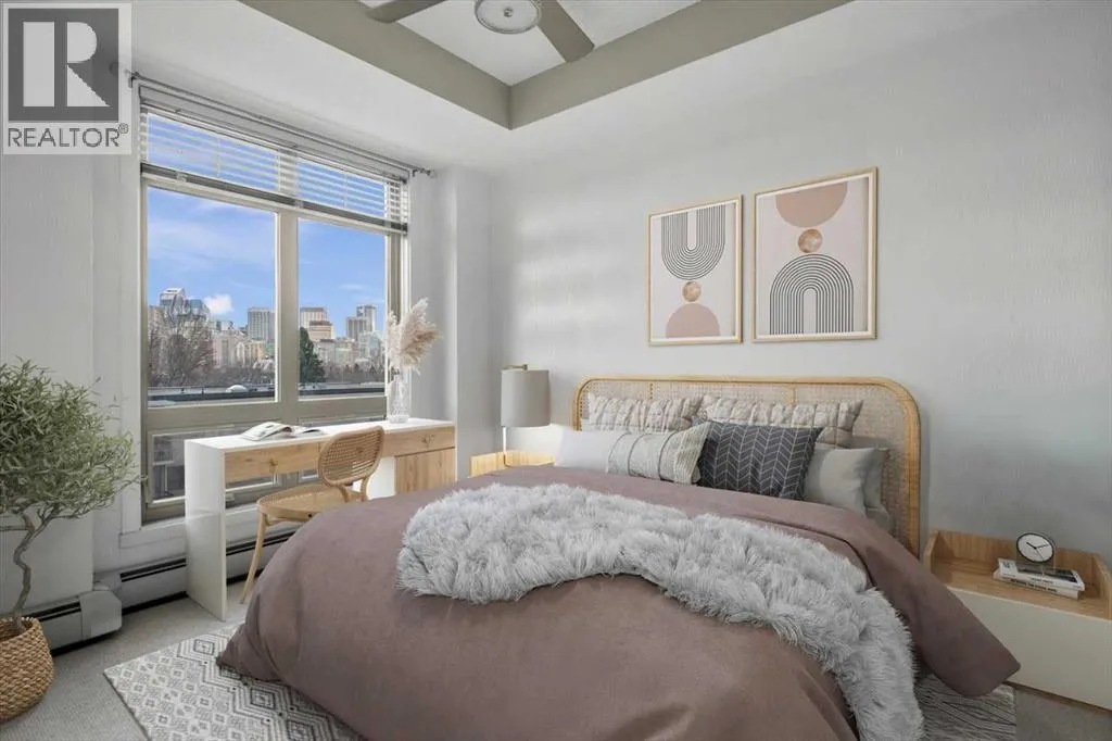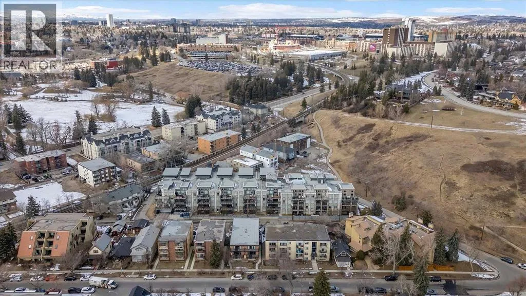 Fourteen-foot vaulted ceilings, massive windows that fill the space with light, and a south-facing balcony so generous it becomes a room of its own. Inside, the open-concept living and dining area feels genuinely spacious, those soaring ceilings and oversized windows do a lot of the heavy lifting, making the space feel bright and open on a quiet weeknight and easy to have people over on the weekend. The kitchen is well set up for someone who enjoys cooking, quartz countertops, stainless steel appliances, and a gas cooktop that gives you real control. In-suite laundry means one less errand on the to-do list, and additional in-suite storage means everything has a place without giving anything up. The primary bedroom is bright and naturally lit, connecting to a four-piece ensuite through a walk-through closet, a standup shower and soaker tub that make winding down at the end of the day genuinely easy. Then there’s that balcony. South-facing, loaded with sun across all four seasons, with a gas hookup ready for the BBQ and enough room to actually use it — for morning coffee with the skyline in front of you, a summer dinner that stretches into the evening, or a quiet afternoon with a book and more sun than you expected in October. The location does what only a handful of Calgary neighbourhoods can. The Sunnyside LRT is steps away, putting downtown within a seamless commute and SAIT just up the hill, the kind of access that quietly shapes how you spend your time. Puccinella, Hayden Block, and Kensington Pub are down the street for evenings out, Kensington Wine Bar when the occasion calls for it, and High Ground Cafe or Agudo Coffee R oasters for the mornings that deserve a proper start. The Bow River pathways, Prince’s Island Park, and everything the inner city offers are all within easy reach, close enough to be part of your regular week, not just a weekend plan. The building takes care of the rest — pet-friendly with board approval, visitor parking, a car wash, bicycle storage, an assigned storage locker underground, and a small workshop tucked in for the projects that need a bit more room to breathe. This is the kind of home and the kind of address that makes the decision easy, and makes you feel good about it long after you’ve settled in. (id:62650)