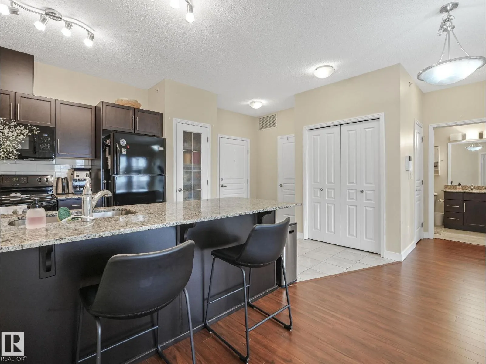 Welcome Home! Bright West facing TOP FLOOR unit in 10/10 condition! This 2 bedroom, 2 bathroom condo offers 871 square feet of living space with 9 foot ceilings and is flooded with natural light throughout. Open concept layout with a clean, modern kitchen featuring granite countertops, stainless steel appliances, espresso cabinetry and a quartz island. The living and dining