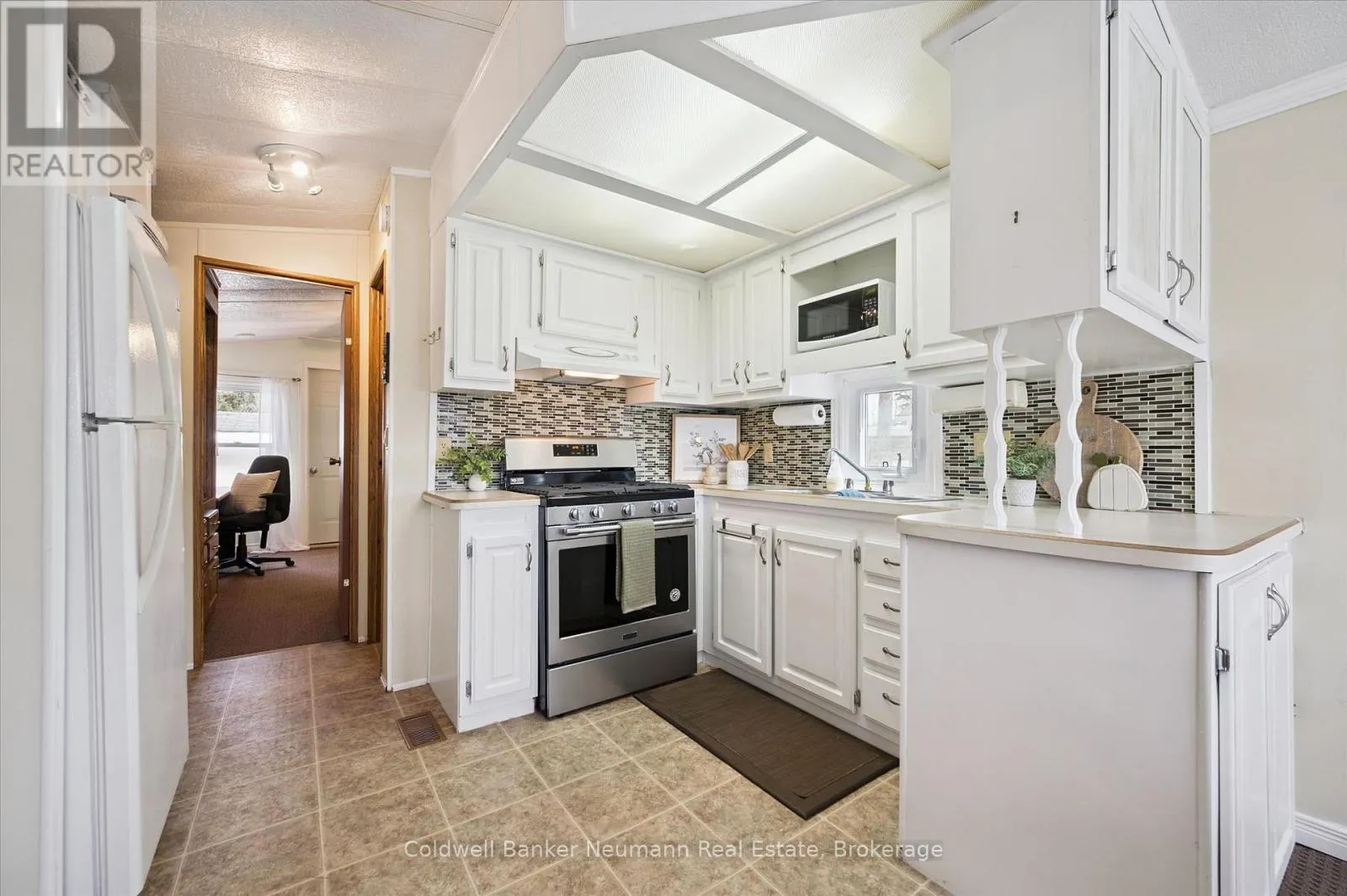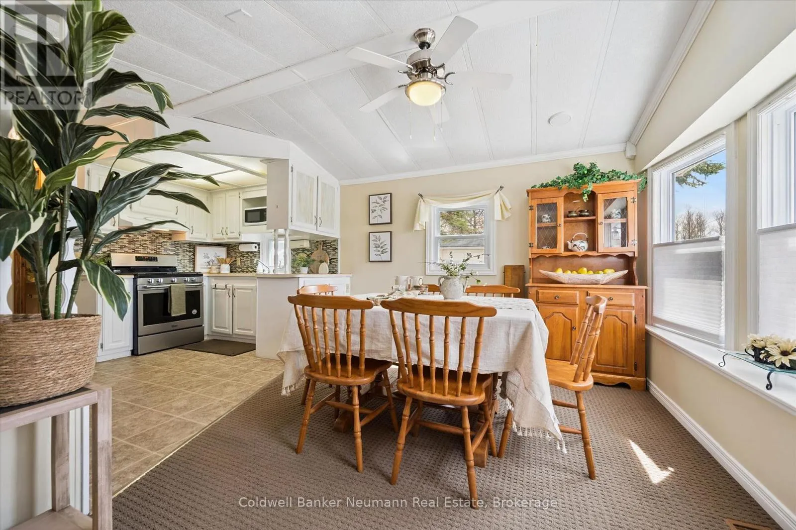 Welcome to your perfect retreat in the sought-after Maple Leaf Acres community at beautiful Belwood Lake. This bright and spacious 2-bedroom, 2-bathroom mobile home offers comfortable year-round living in a serene, nature-filled setting. Step inside to an inviting open-concept layout, ideal for both relaxing and entertaining. The living room features a cozy fireplace, creating a warm and welcoming atmosphere year-round.
