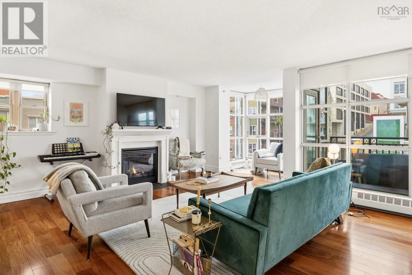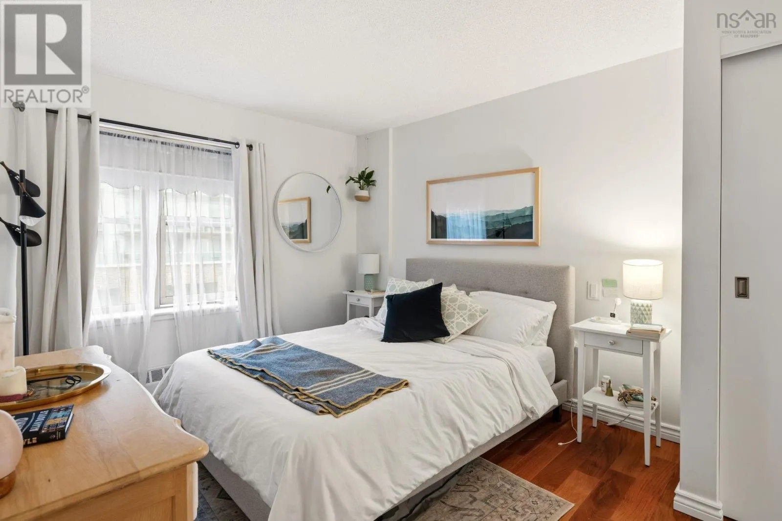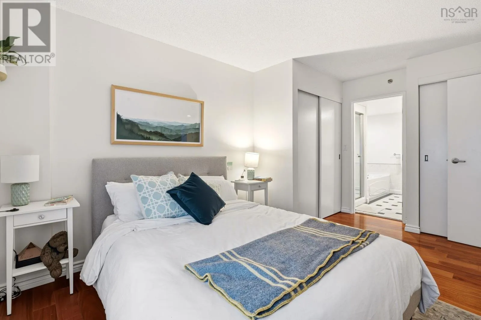 Experience the ultimate downtown lifestyle at Bishops Landing, one of the most iconic buildings on the Halifax waterfront. This 1,179-square-foot corner condo is flooded with natural light from floor-to-ceiling windows, creating a bright and inviting atmosphere. The open-concept layout includes a spacious primary bedroom with a large ensuite and double closets, a second bedroom currently used as an office, and
