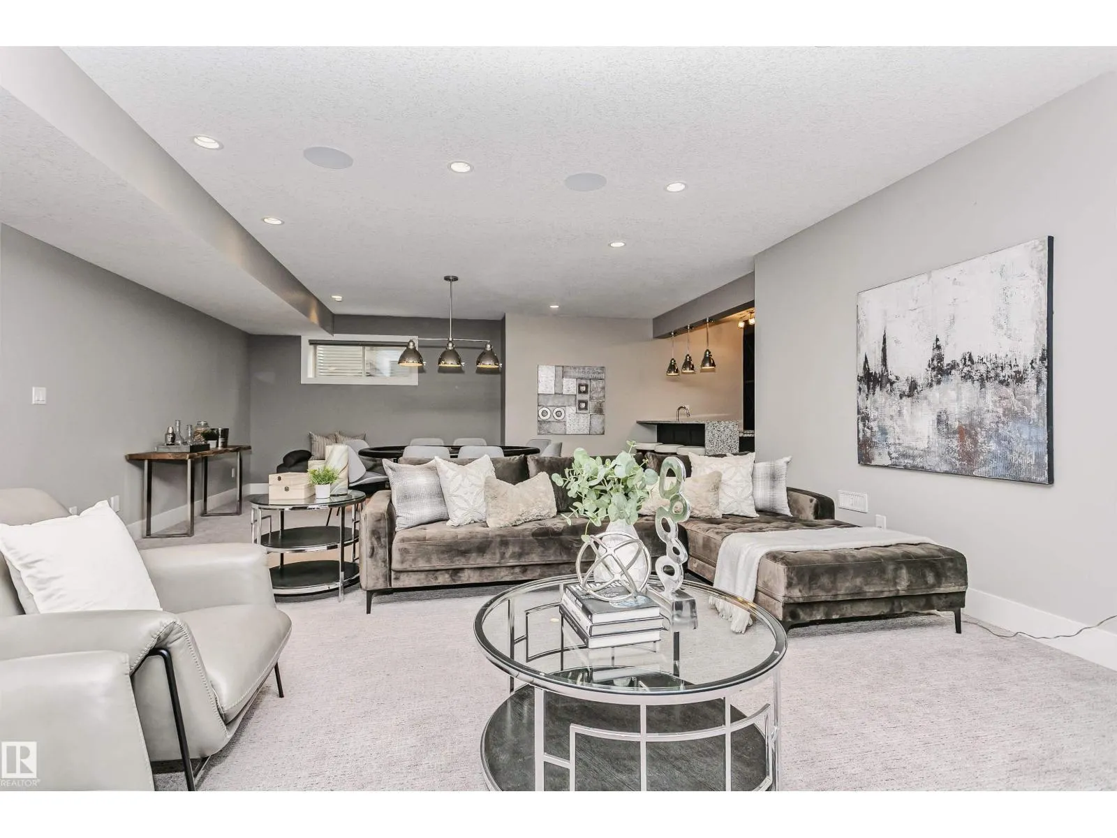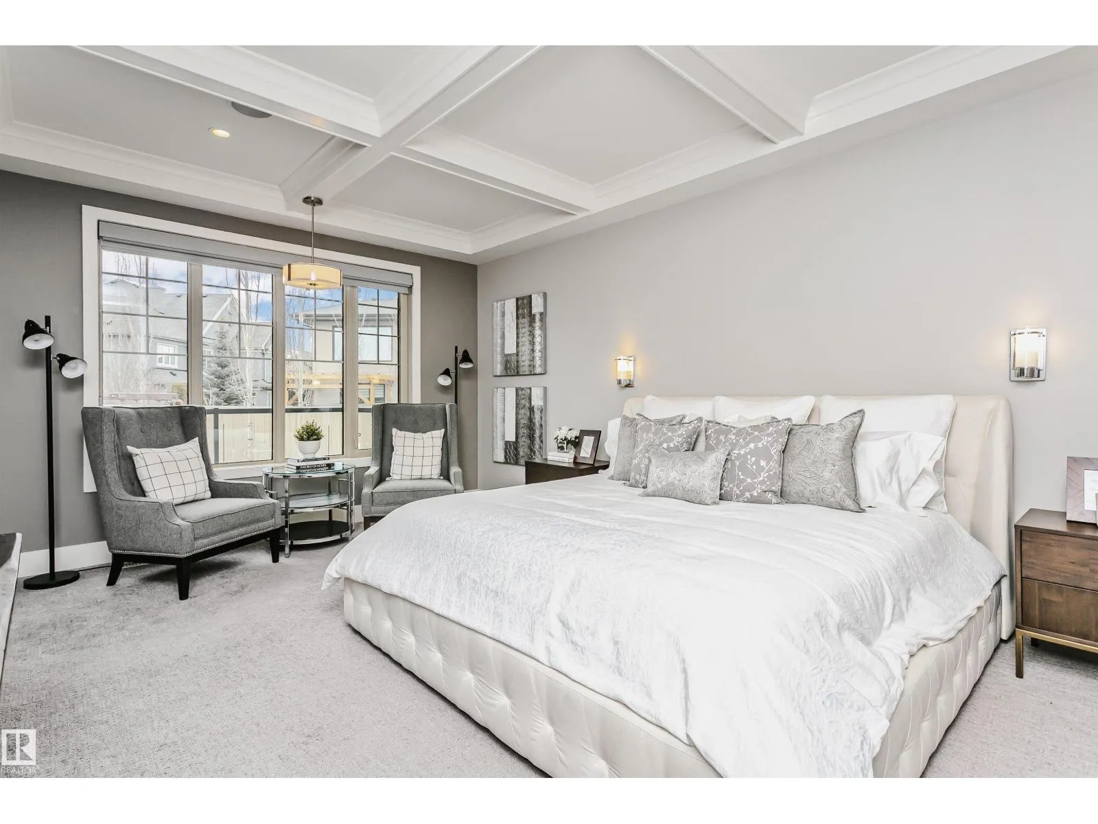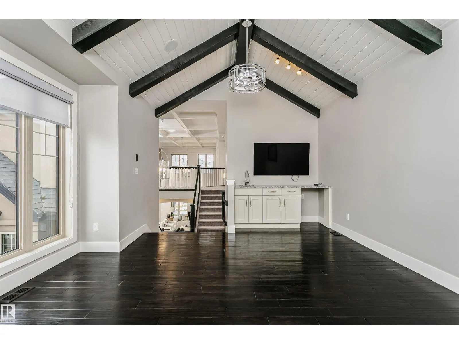 Welcome to this architecturally stunning residence in the prestigious community of Keswick on the River. Boasting over 4,950 sqft of refined living space (3,350+ above-grade), this home offers a rare 300+ sqft main-floor bedroom with a full ensuite and private coffee bar—perfect for multi-generational living or guests. The grand 2-story living room is flooded with natural light, featuring a modern