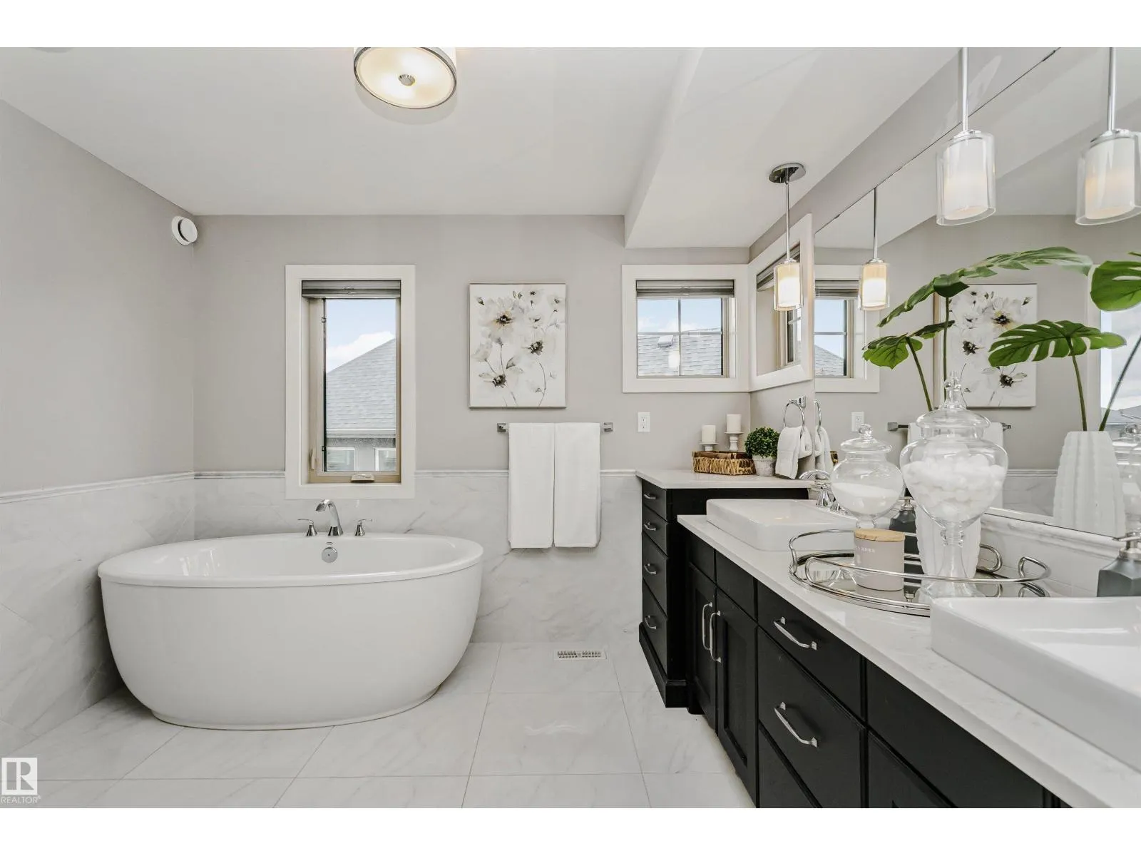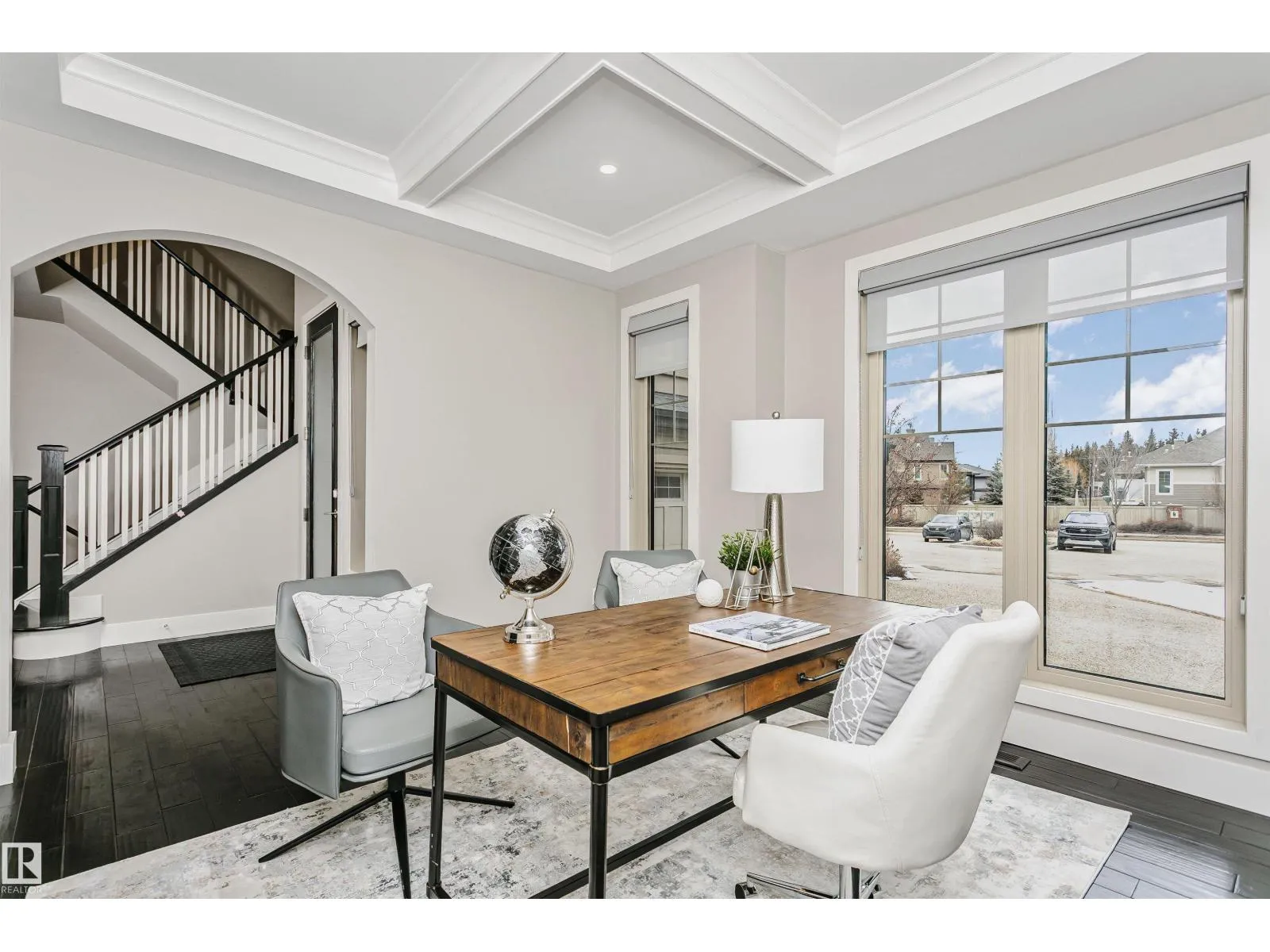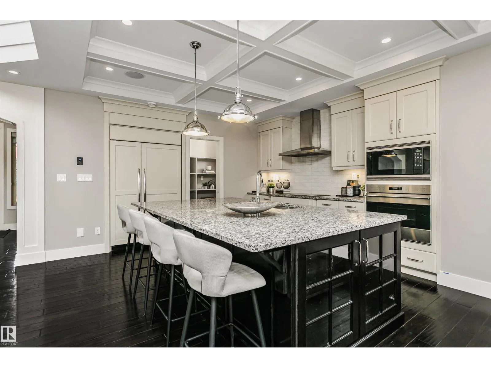 Welcome to this architecturally stunning residence in the prestigious community of Keswick on the River. Boasting over 4,950 sqft of refined living space (3,350+ above-grade), this home offers a rare 300+ sqft main-floor bedroom with a full ensuite and private coffee bar—perfect for multi-generational living or guests. The grand 2-story living room is flooded with natural light, featuring a modern