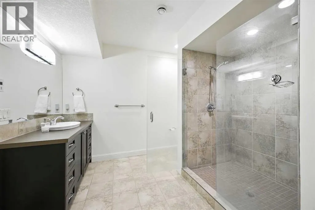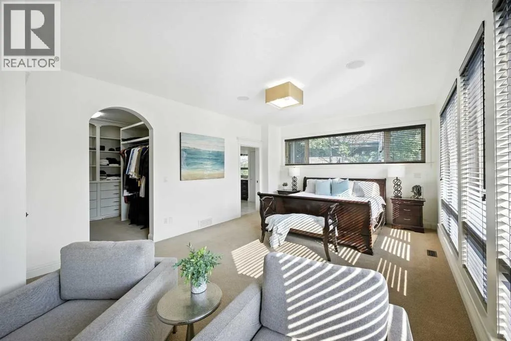 sided gas fireplace, each with a wood mantle that cleverly defines each space, & have sweeping views over the private backyard oasis, ideal for hosting large gatherings. The gourmet kitchen is an entertainer’s dream, featuring an oversized island w/clever storage built into either end, quartz counters, gorgeous Jatoba custom cabinetry, 6 burner Viking gas range, Thermador wall oven, Miele dishwasher, & Frigidare Gallery refrigerator. The butlers pantry off the kitchen features additional quartz countertops & sink, matching cabinetry & built in storage for all your entertaining needs. The mudroom features a large walk in closet w/custom built ins to help organize those hectic arrivals home with the kids. A generous office & large powder room complete the main floor. The bright upper floor features central AC, 9′ ceilings, and in the open area, a custom built in bookcase w/seating & homework area just outside the secondary bedrooms. The generous primary suite features a wall of windows flooding the room with light, a cozy sitting area w/gas fireplace, faced with custom millwork, ideal for unwinding at the end of the day. The large walk in closet features custom built in shelving & drawers. The luxurious 5 pc ensuite features a large glass steam shower, freestanding soaker tub, his & hers vanities and in floor heat for those chilly mornings. The two large secondary bedrooms each feature several windows & walk in closets w/custom built ins. The huge upper shared bath has individual personal vanity areas, custom built in shelving w/cabinetry, private tub & shower room p lus separate water closet, perfect for kids of any age. The fully finished lower level features a large recreation area, dry bar w/full sized fridge, gas fireplace and plenty of space for kids to play or enjoy cozy family movie nights. The light filled lower guest bedroom features a walk through closet with custom built ins and adjoins a large 3 piece bath w/huge glass shower, allowing for ultimate guest privacy. Zoned in-floor hydronics make heating the lower level even cozier. The triple oversized heated garage has 12′ ceilings, perfect for car lifts. The exceptional backyard oasis features a large deck plus an additional BBQ deck off the kitchen, flag stone patio and exudes a park like setting surrounded by native aspen groves. Posthill Drive is an enclave like no other, and this home exceeds expectations. Close to exceptional schools, restaurants & shops, as well as quick access to Stoney Trail from 17th Ave, making getting downtown or to the mountains a breeze. View this exceptional property today! (id:62650)