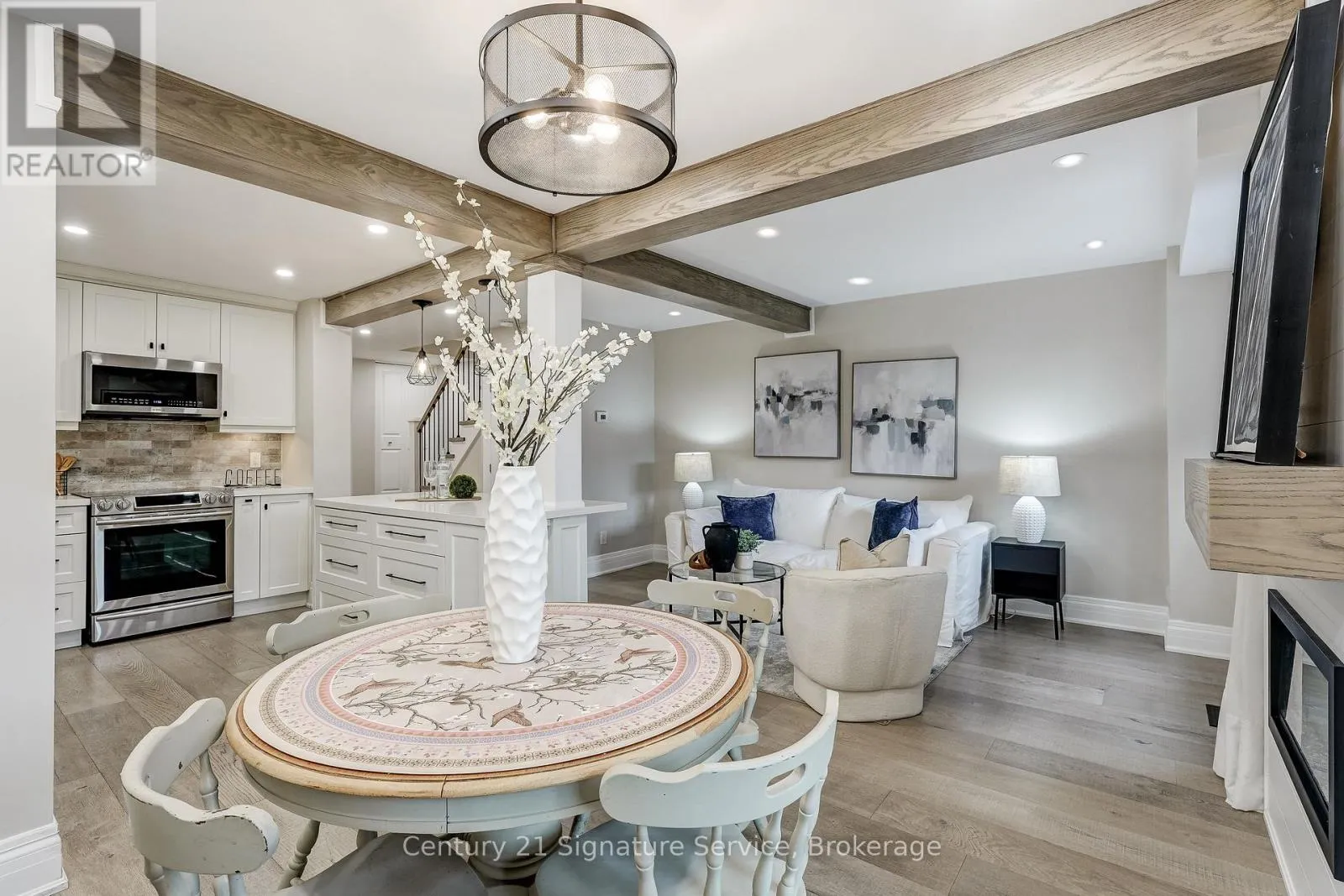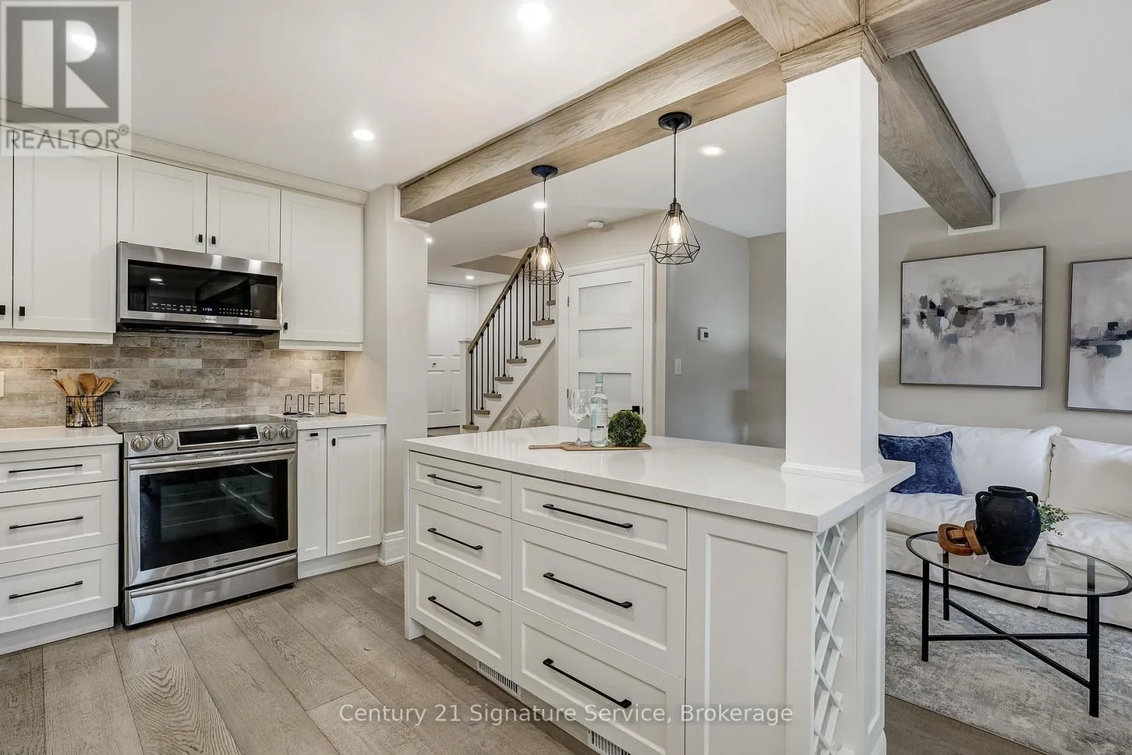 Welcome to Rockwood Village, one of East Mississauga’s most established family-friendly communities, surrounded by green space and connected trails. This fully renovated townhome is a true showpiece, ideally located within the complex near visitor parking, playground, and tennis courts. The open concept kitchen features waterfall quartz countertops, stainless steel appliances, added built-in cabinetry, and under-valance lighting. It opens into bright