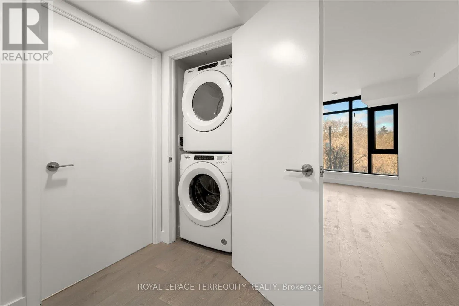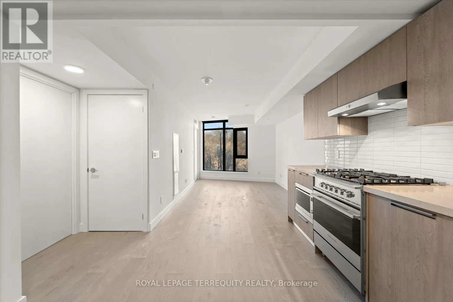 Discover the unparalleled charm of this pristine, extra large, 1 bed 1 bath suite. A sunlit sanctuary with panoramic windows. Immerse yourself in the seamless open concept design, showcasing a contemporary kitchen adorned with chic built-in fixtures & stainless steel appliances with space for a large dining table & full size living room furniture. Tucked away in a picturesque, tree-lined