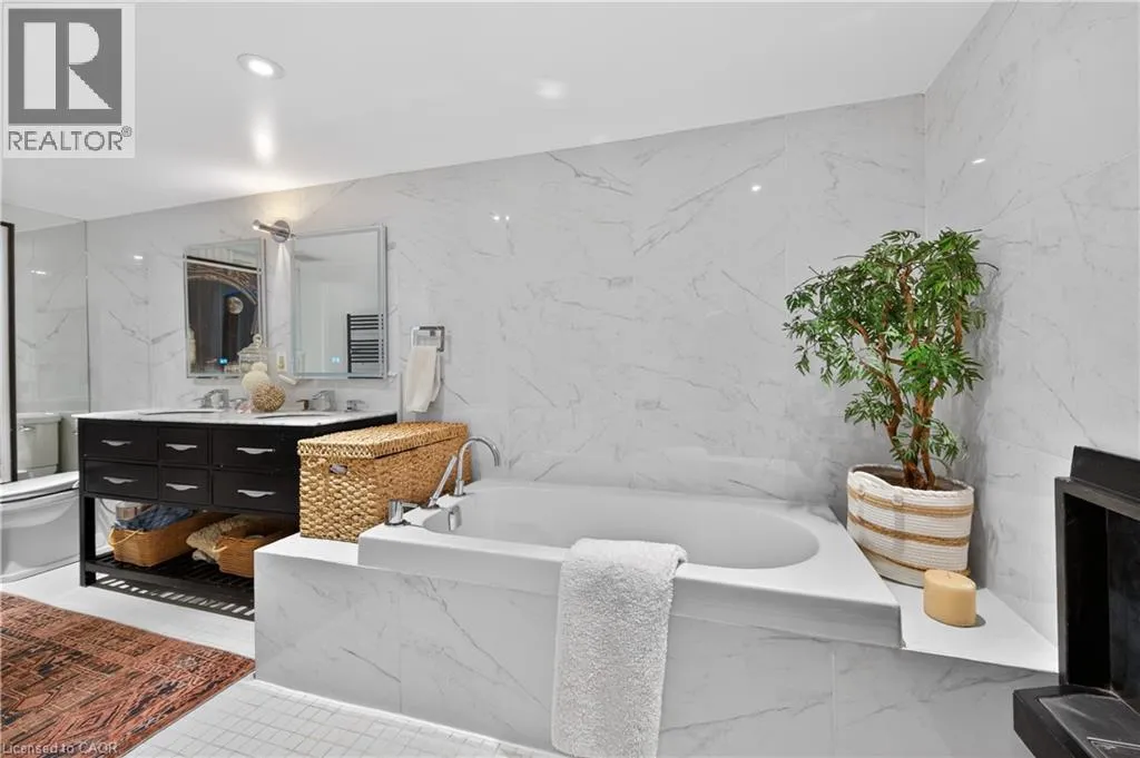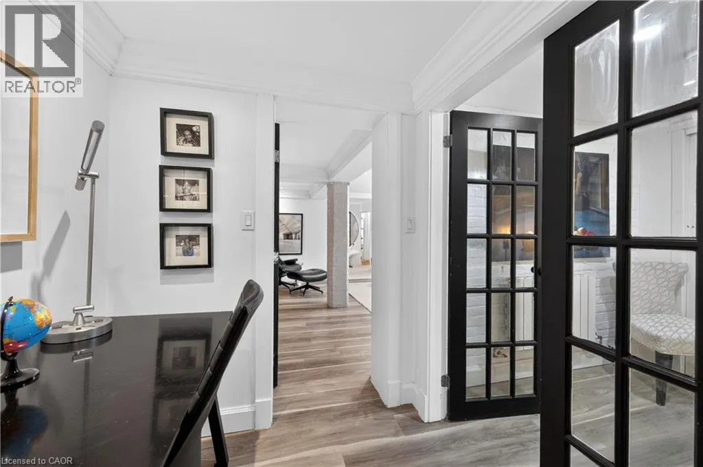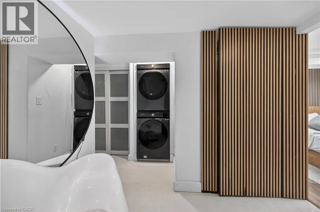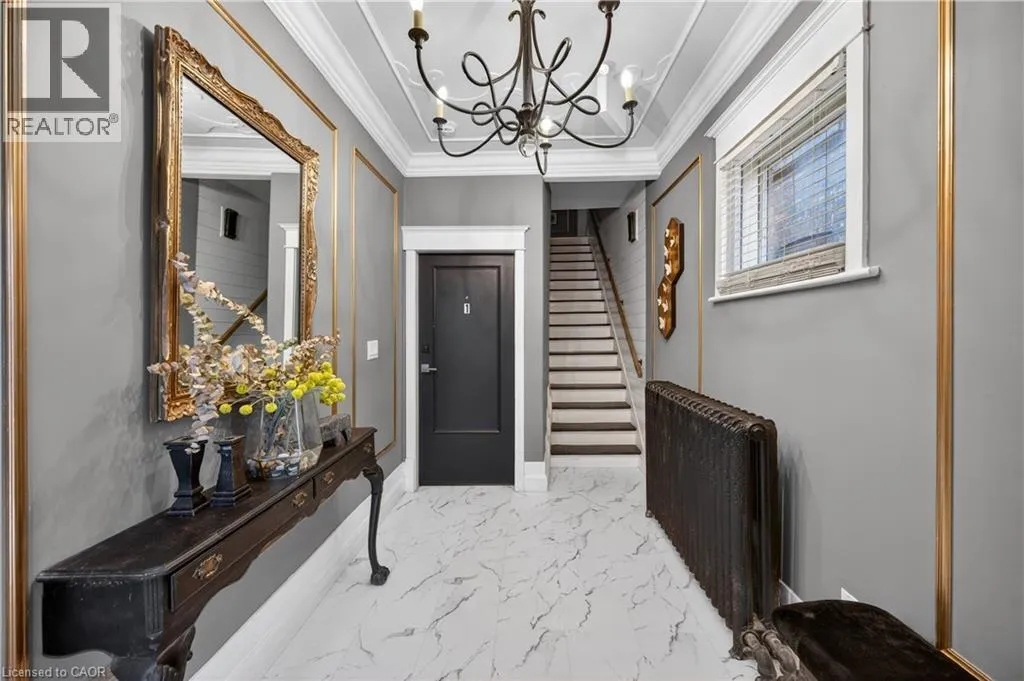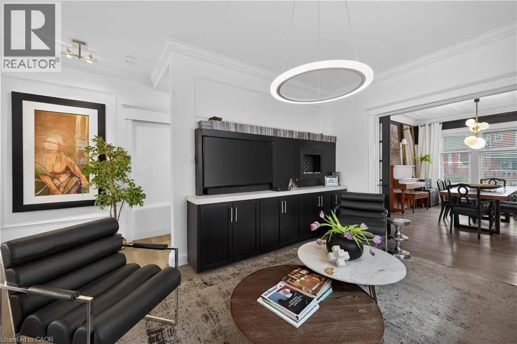 Stunning fully furnished 2-bedroom, 2-bathroom two-storey apartment offering 1,565 sq ft of modern living, modelled after a New York City penthouse and rich in timeless character. An impressive common foyer leads to your private main-floor entrance. The formal dining room welcomes you with elegant mouldings, ceiling detail, and an ornamental fireplace. Sliding French doors open to a sophisticated living room