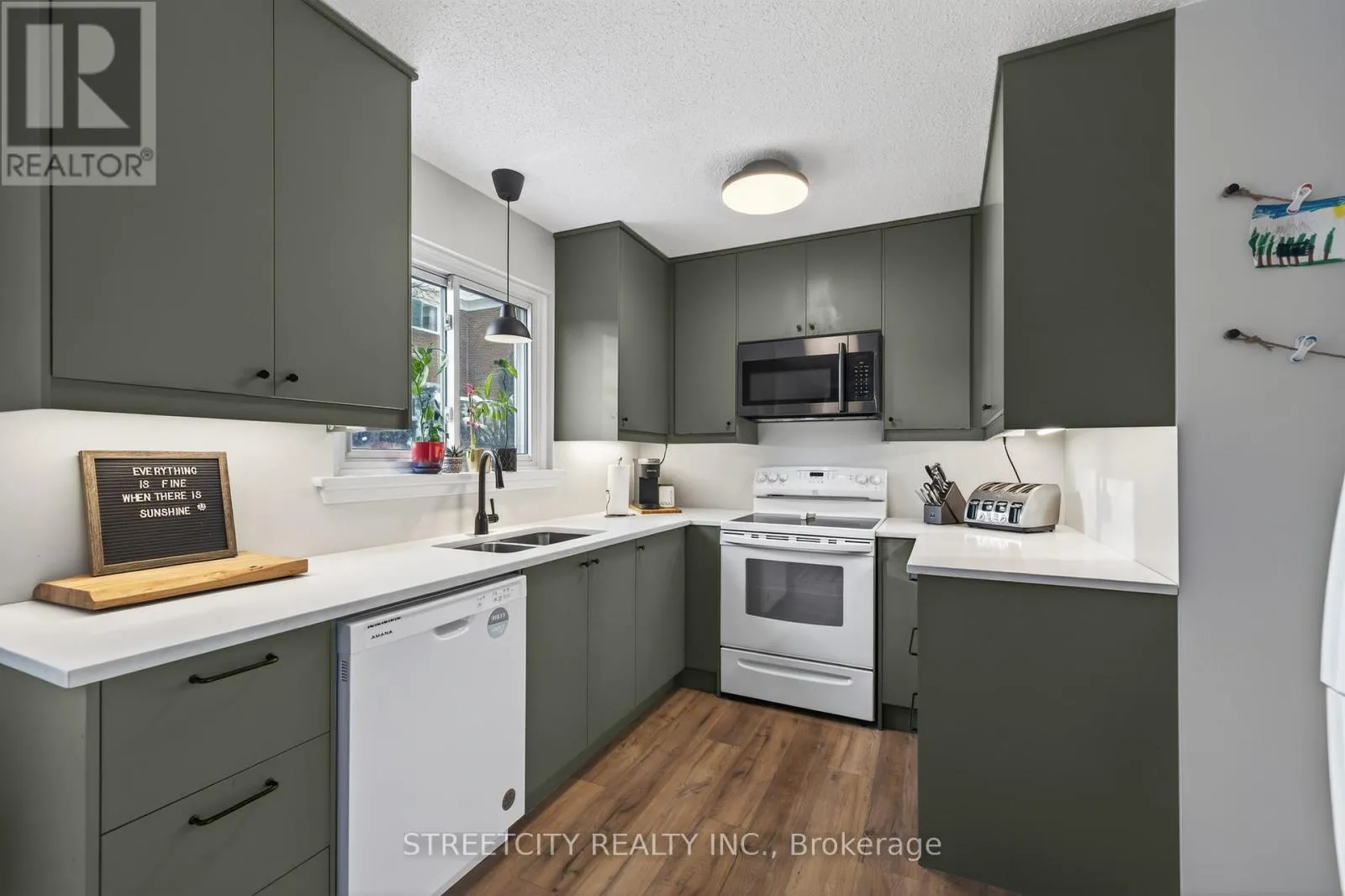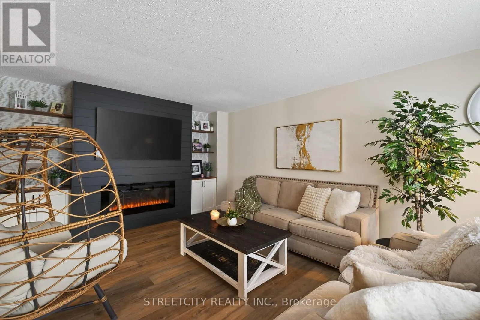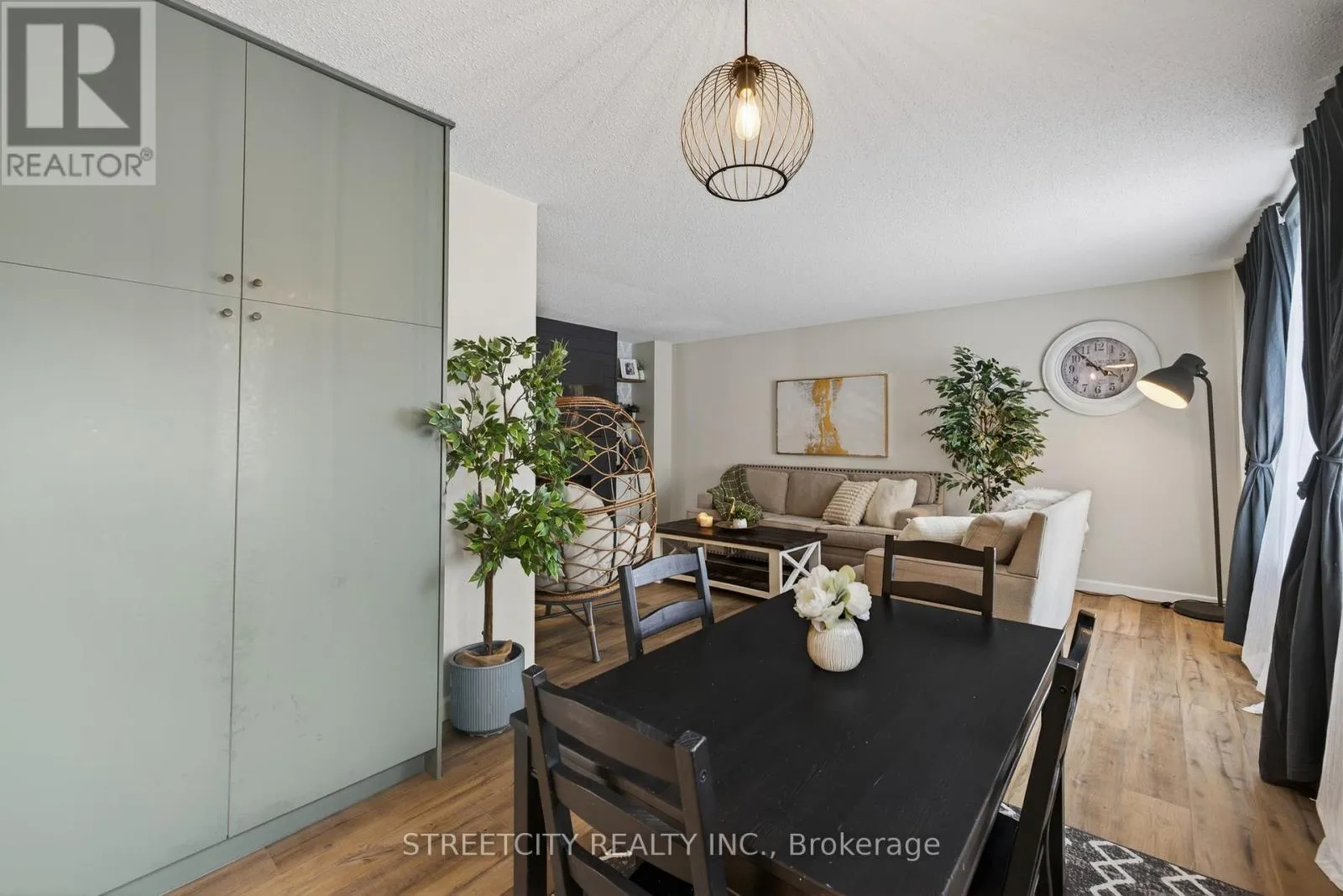 Stylish 3 bedroom, 1.5 bathroom townhouse offering comfortable, low maintenance living in Northwest London. The fabulous kitchen features modern cabinetry, clean finishes, and a functional layout, opening to a bright dining and living area with updated flooring and a striking fireplace feature wall that adds warmth and character. A patio door leads to a private courtyard patio providing private outdoor