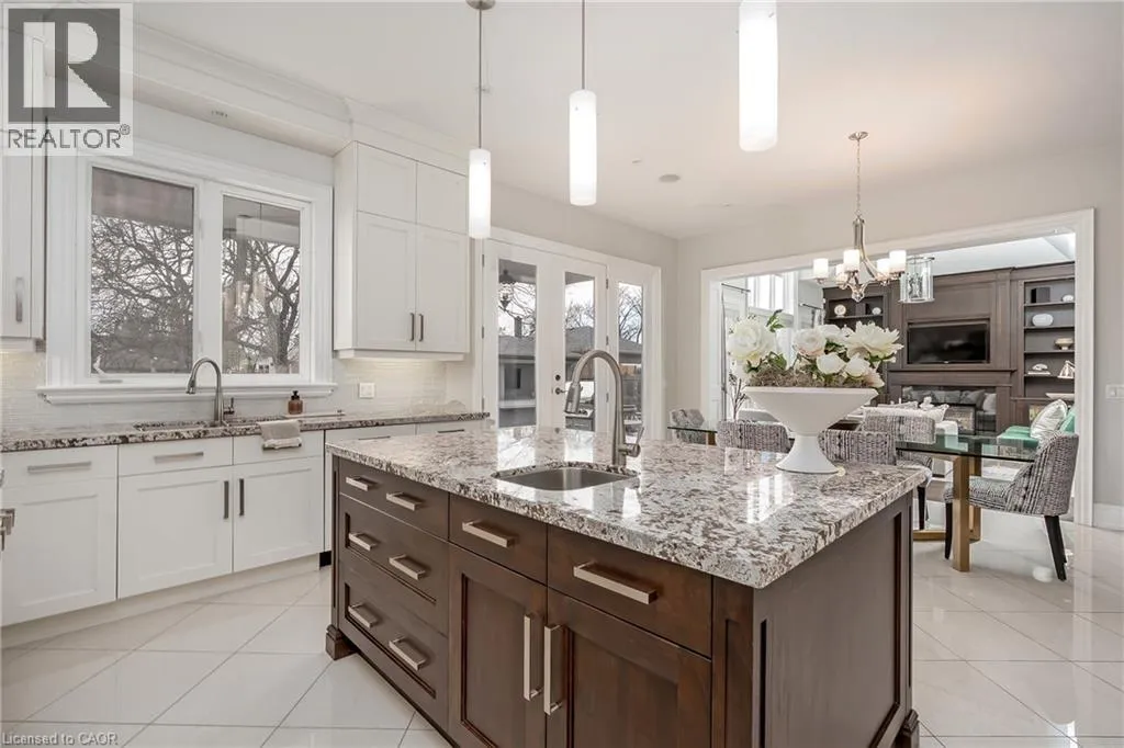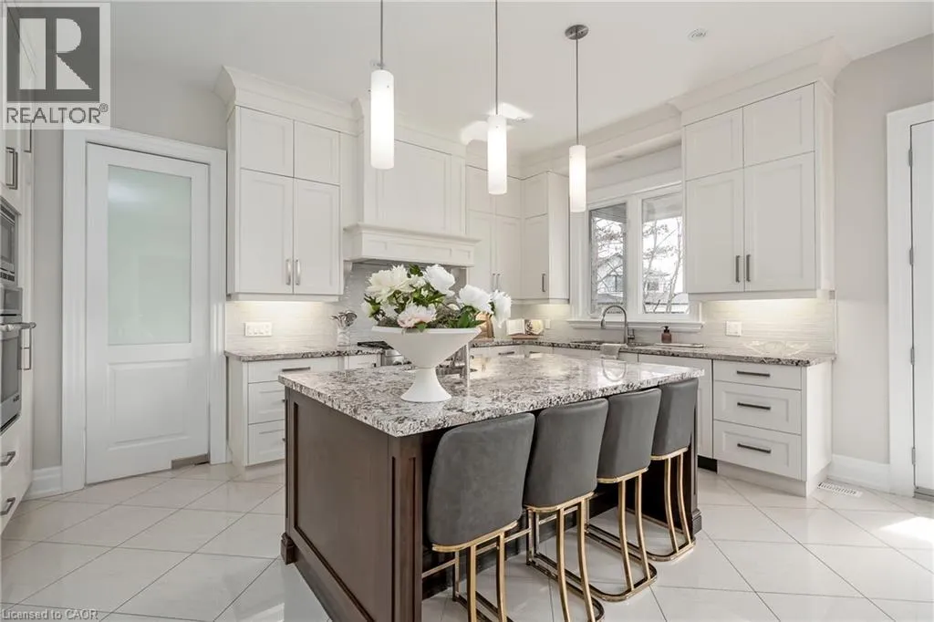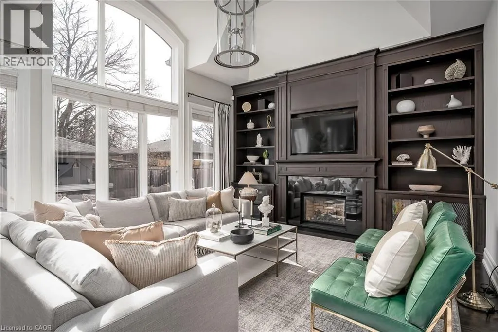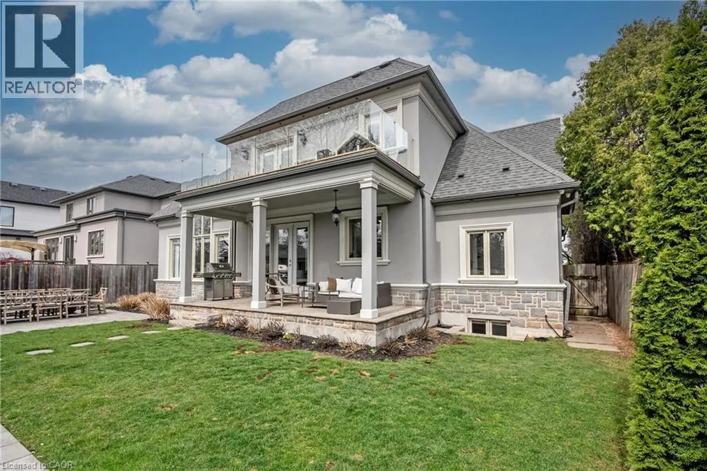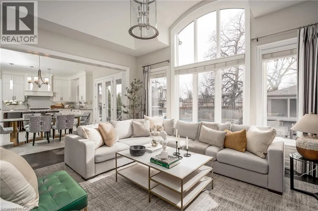 Set on a well-loved street in established West Oakville, this inviting custom family home blends contemporary refinement w/everyday comfort. The west-facing rear yard is thoughtfully curated with intentional hardscaping, mixed evergreens + topiary + stone-lined pool. Mature cedars + flat stone pavers lead to a peaked portico + stately entry, opening to a refined interior w/soaring ceilings + expansive glazing.