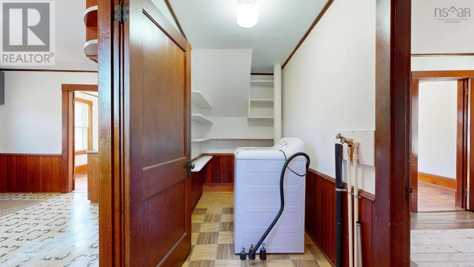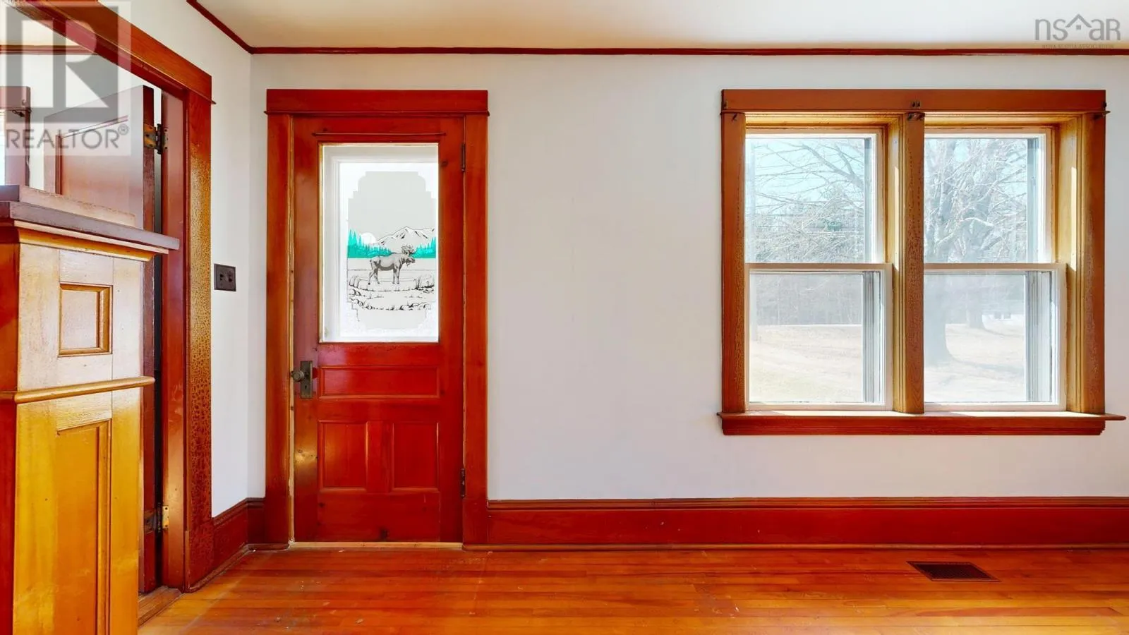 L&S #1298. Framed by stately maples and well set back from the road, this cozy compact well-maintained home has been in the same family since it was built, with character intact. Main floor comprises a spacious living room, dining room, eat-in kitchen with woodstove, main floor bedroom or den, full bath and pantry/laundry. Upstairs are two generously sized bedrooms and