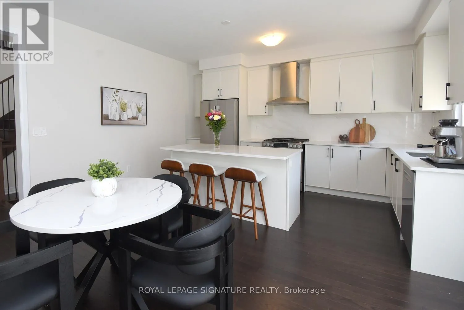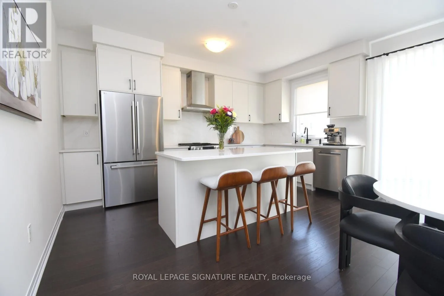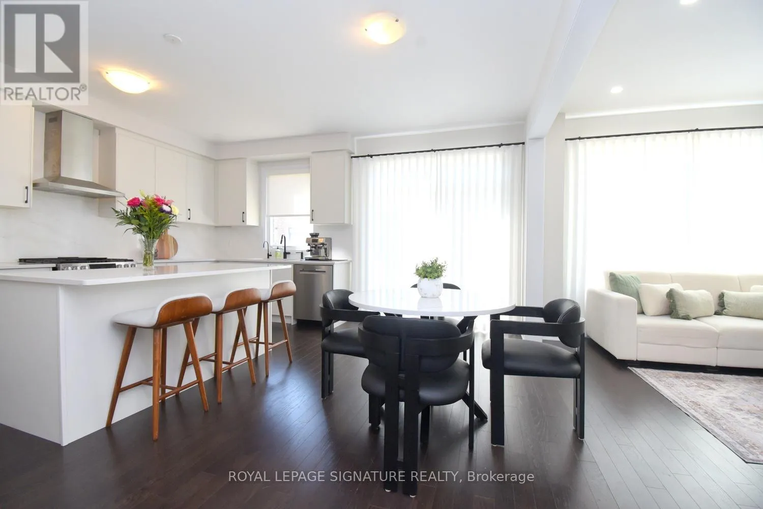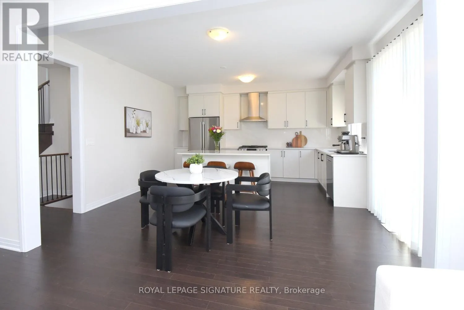 Welcome to the prestigious, newly developed Erin Glen community by the award-winning Cachet Homes. This exceptional four-bedroom luxury residence showcases a bright and expansive open-concept main floor, enhanced by soaring 9-foot ceilings and oversized windows that bathe the space in an abundance of natural light, creating a warm and inviting atmosphere throughout. The living and dining areas transition seamlessly into
