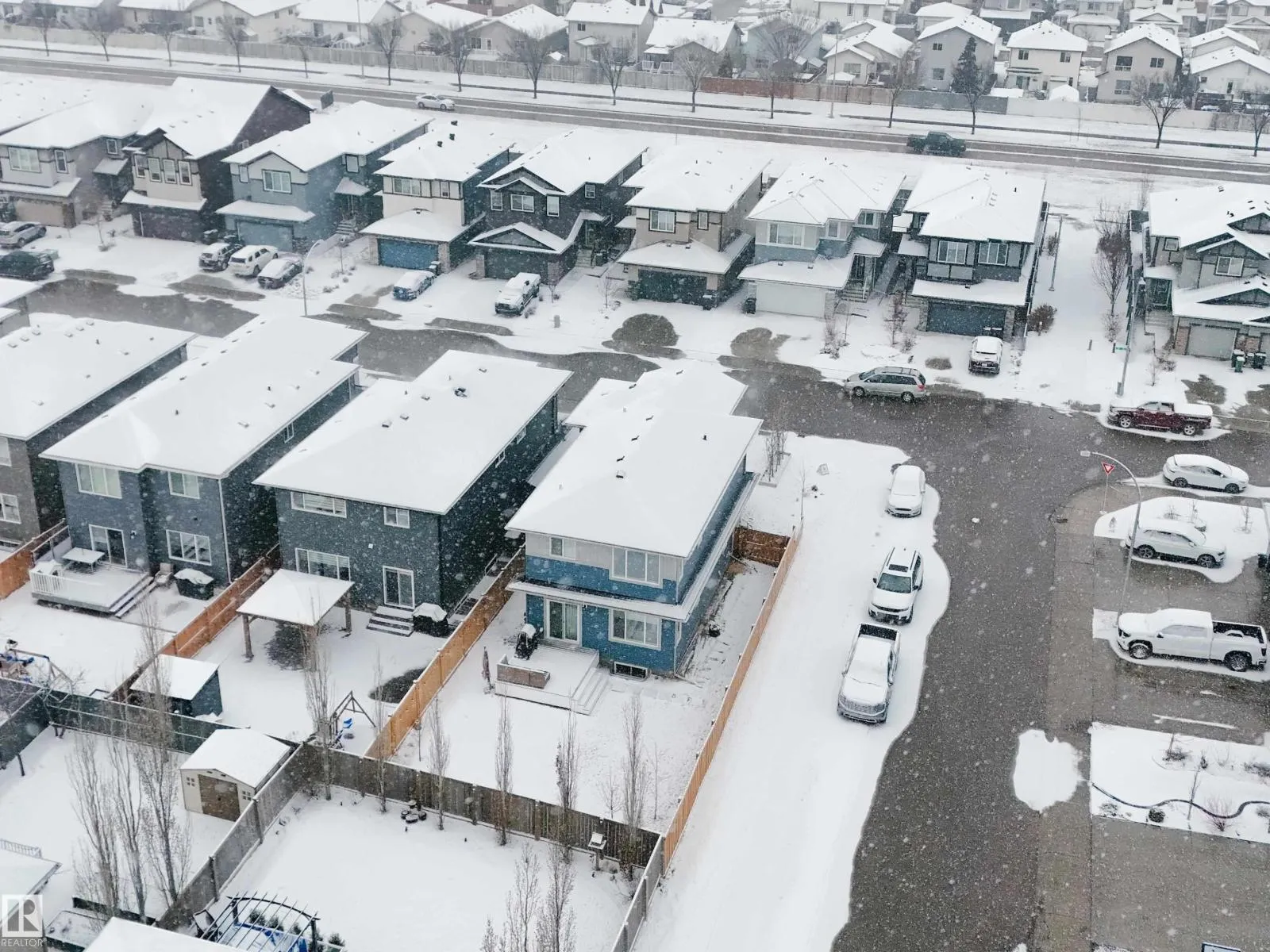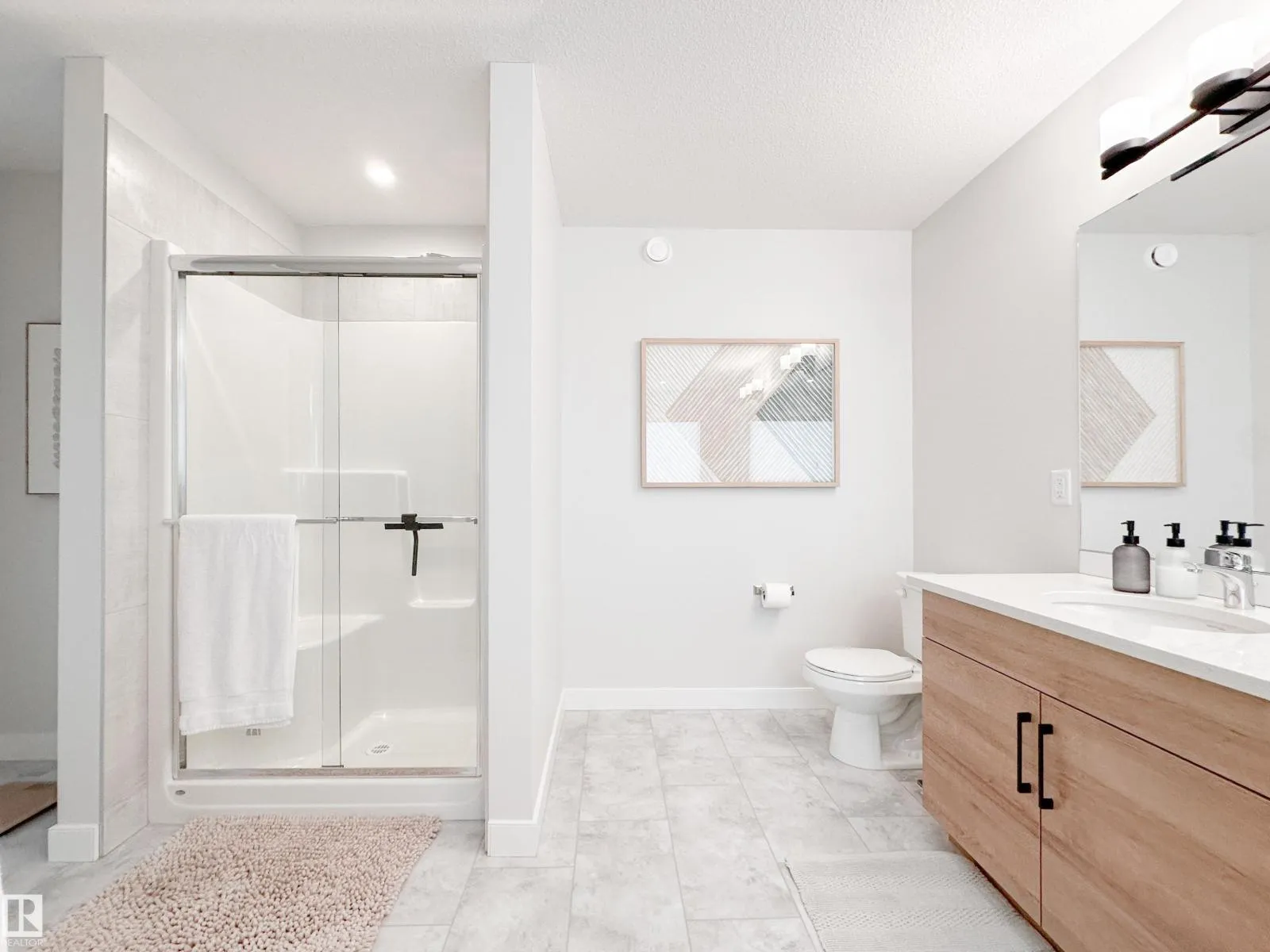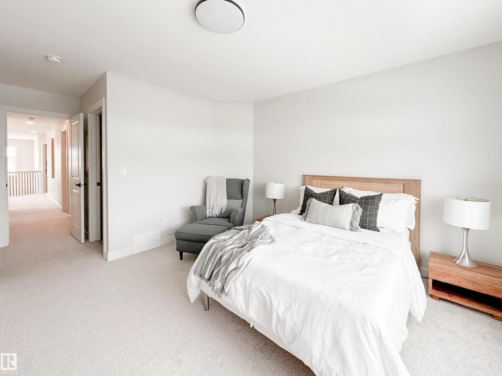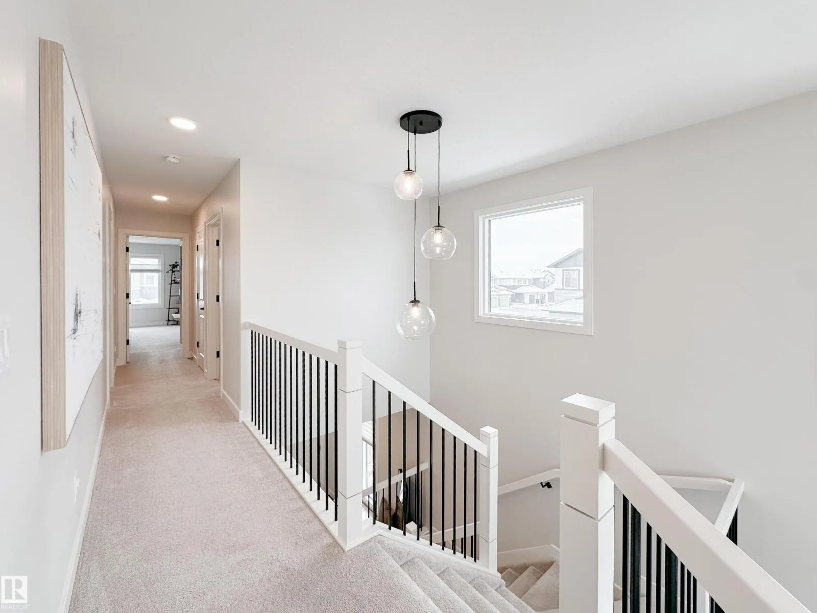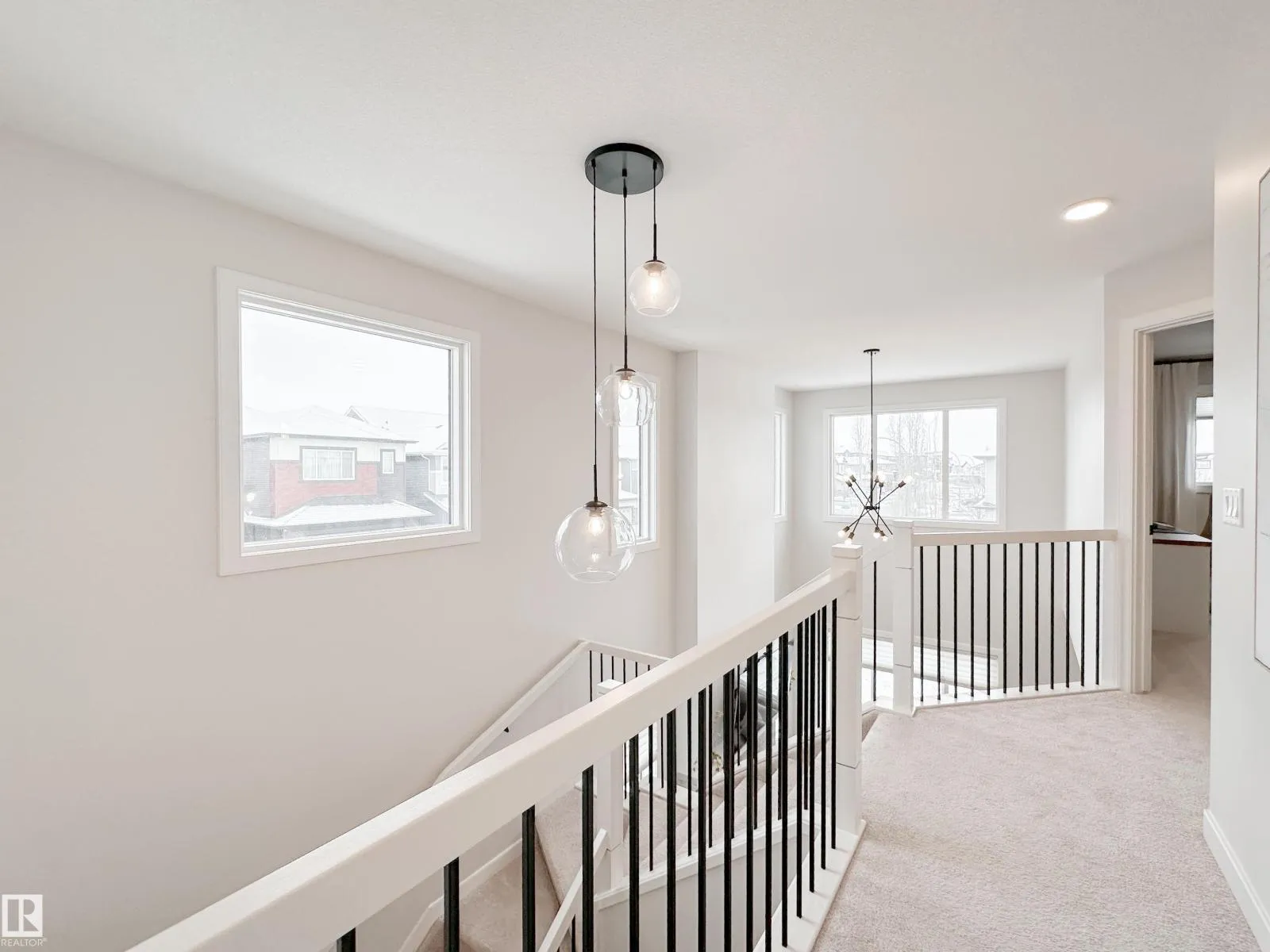 Discover refined living in this elegant 2-storey home, thoughtfully designed w/ a bright open-concept layout & soaring open-to-above living room. Expansive windows bathe the space in natural light, while an electric fireplace adds warmth and sophistication. The designer kitchen showcases white quartz countertops, a sleek tile backsplash, premium stainless steel appliances & a walk-through pantry for added convenience. The adjoining