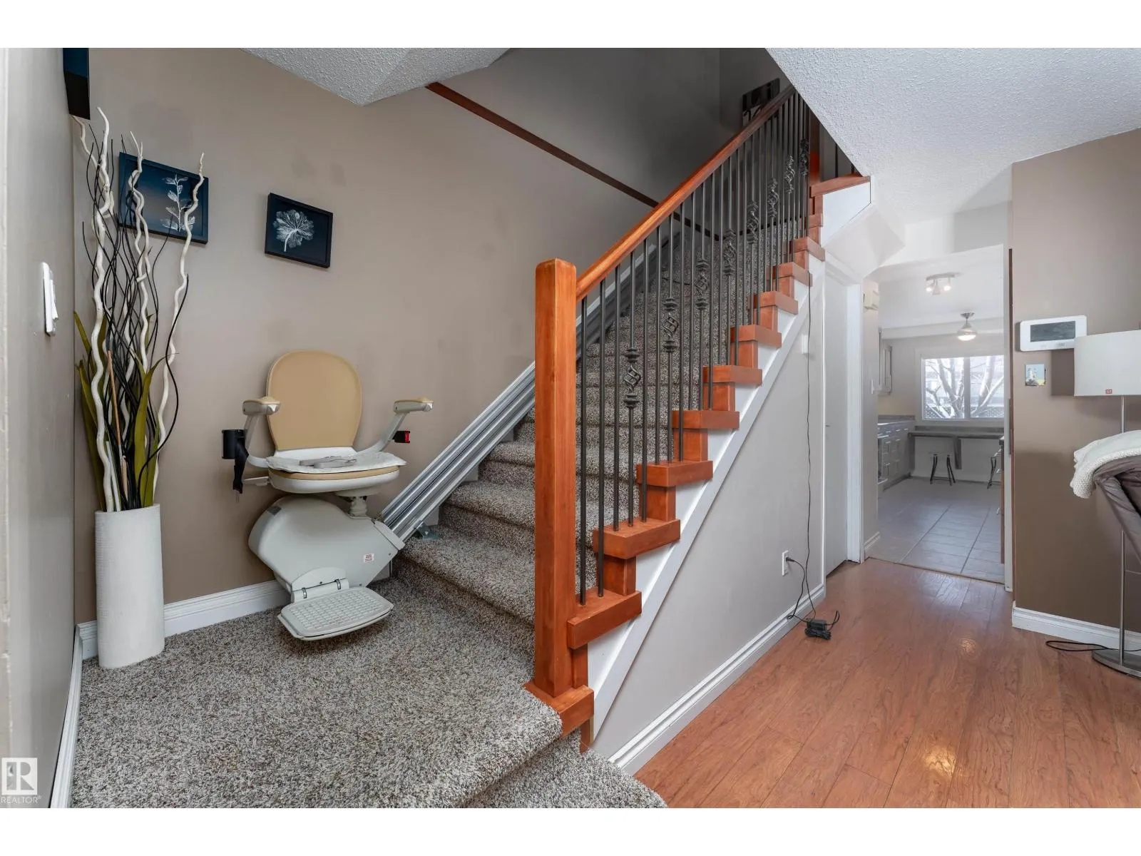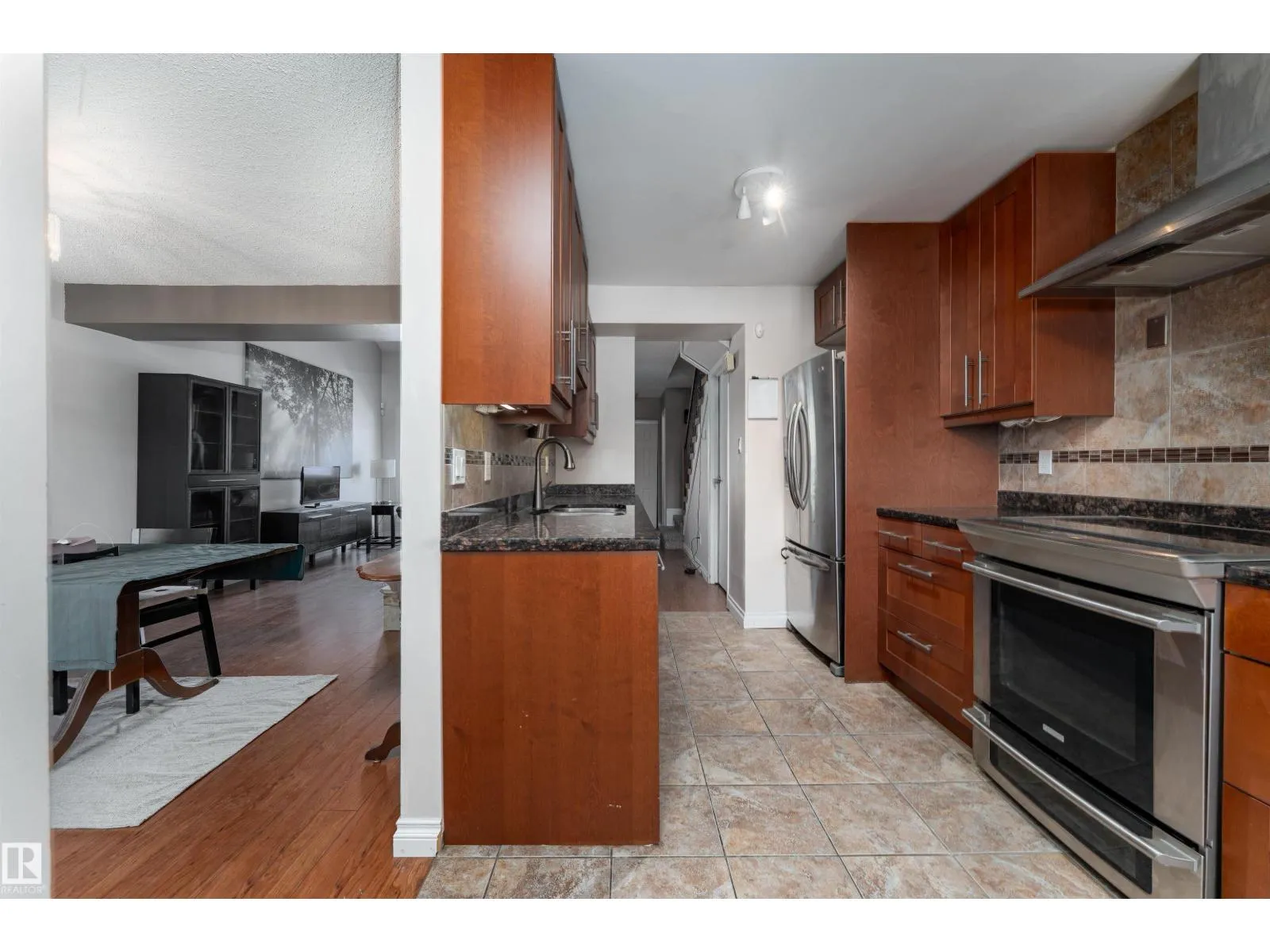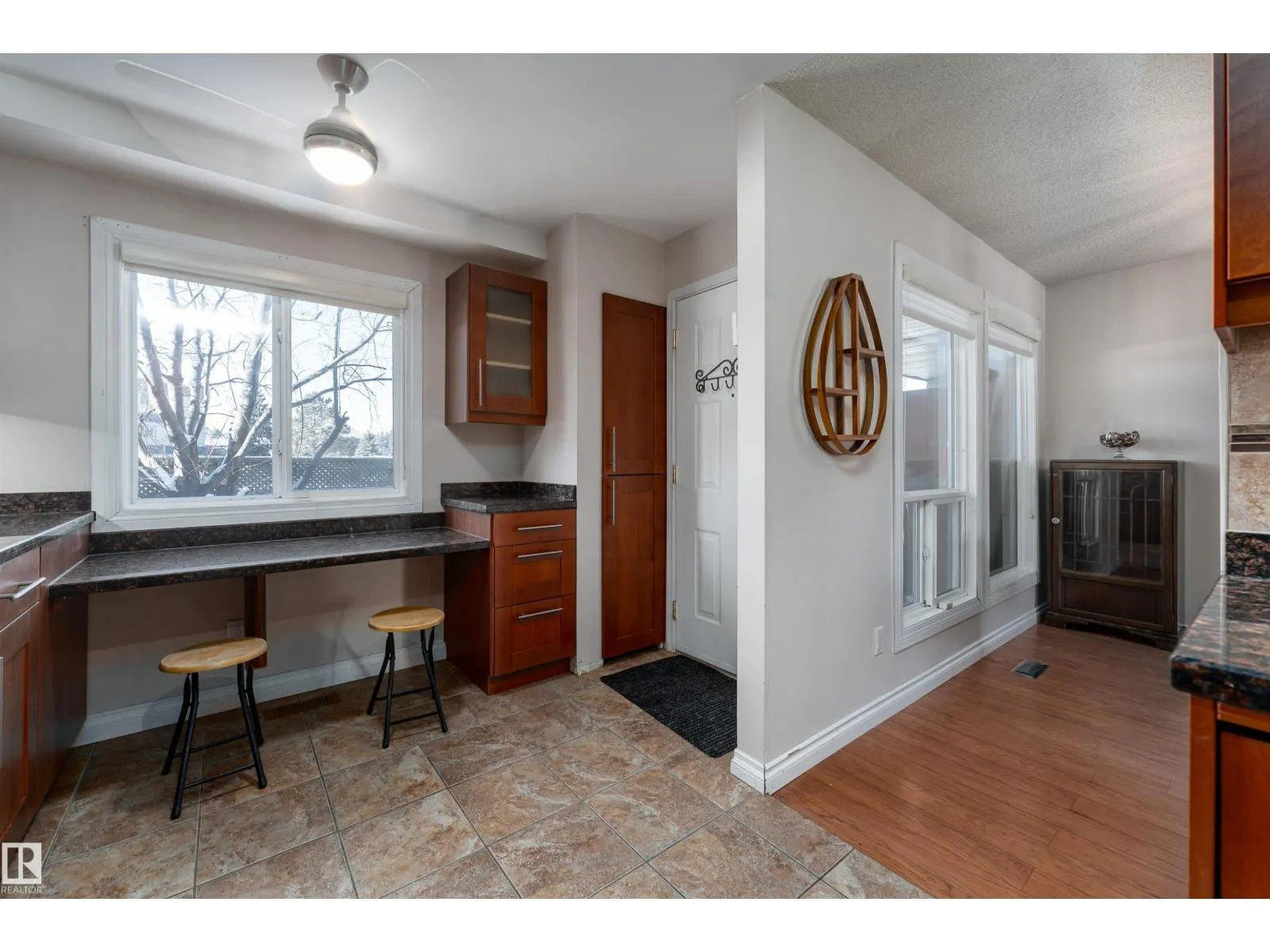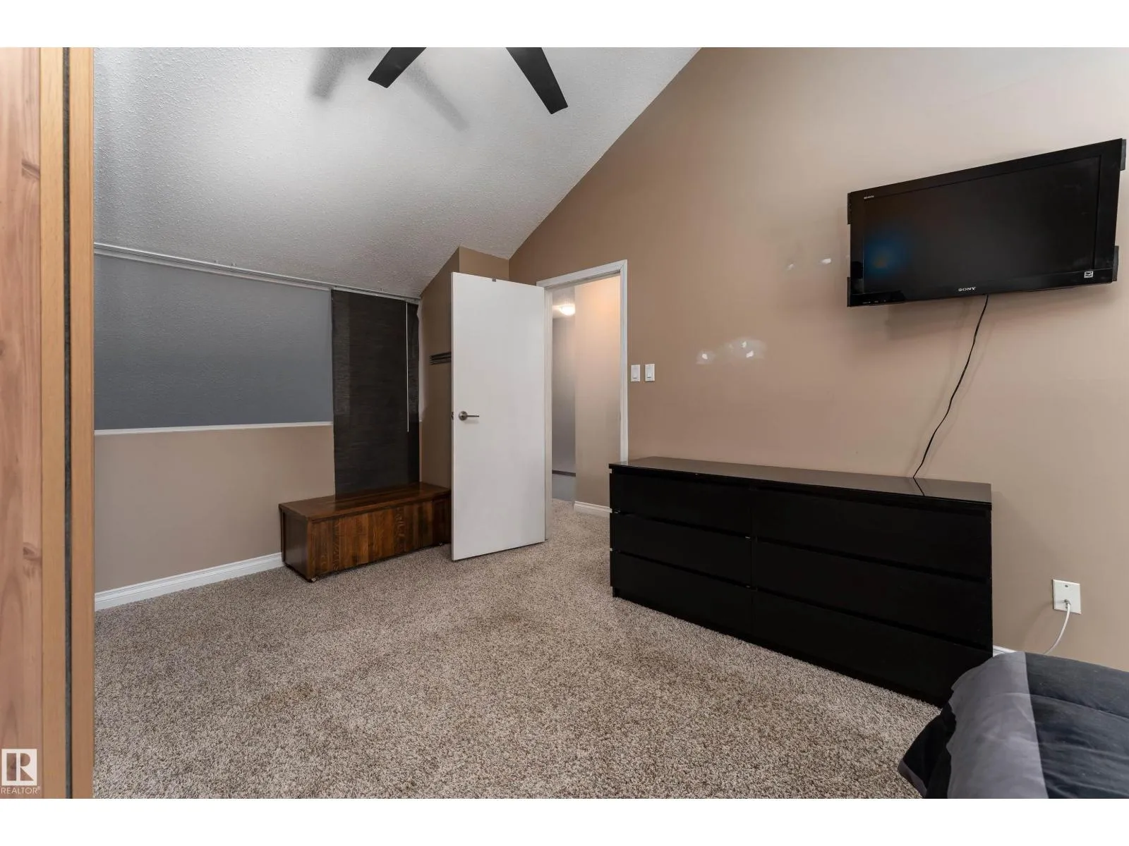 Stop searching and start packing because this uniquely designed 1,222 sq. ft. Hillview Crescent gem is the one you’ve been waiting for! The main floor features a grand living room with high vaulted ceilings and a cozy stone-surround wood fireplace. The modern kitchen is a dream. Designed with warm wood cabinetry, beautiful tile backsplash, dark counters, and a bright breakfast