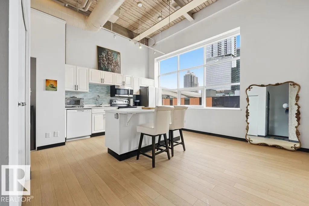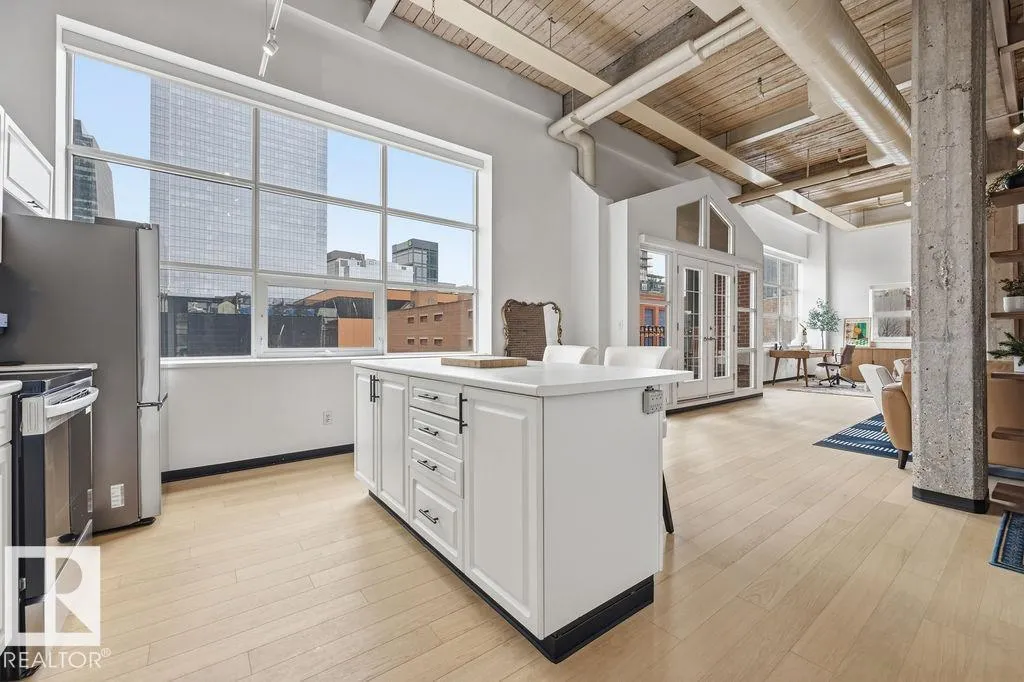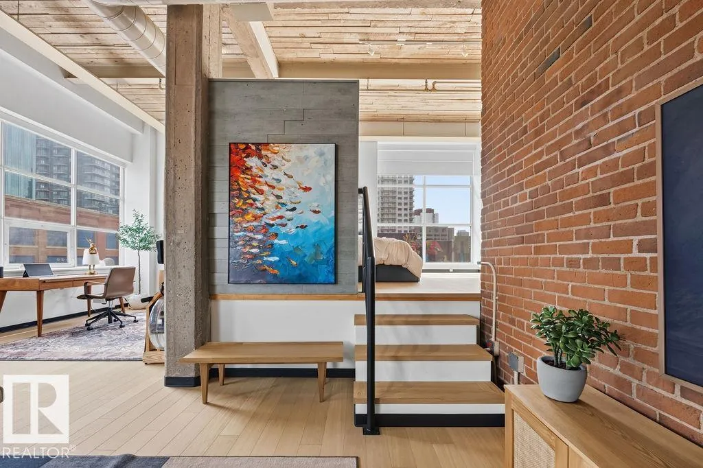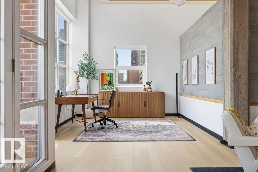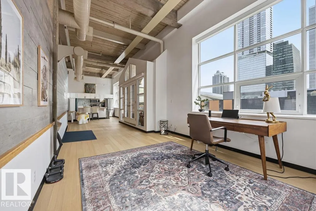 Step into one of Edmonton’s most iconic loft residences in the heart of the vibrant Ice District. Located in the historic Miller Building, this former warehouse showcases true character with soaring 14-ft ceilings, exposed brick and expansive SE-facing windows with stunning downtown views. The open layout offers a character filled flexibility, with space to easily add a 2nd bedroom, den