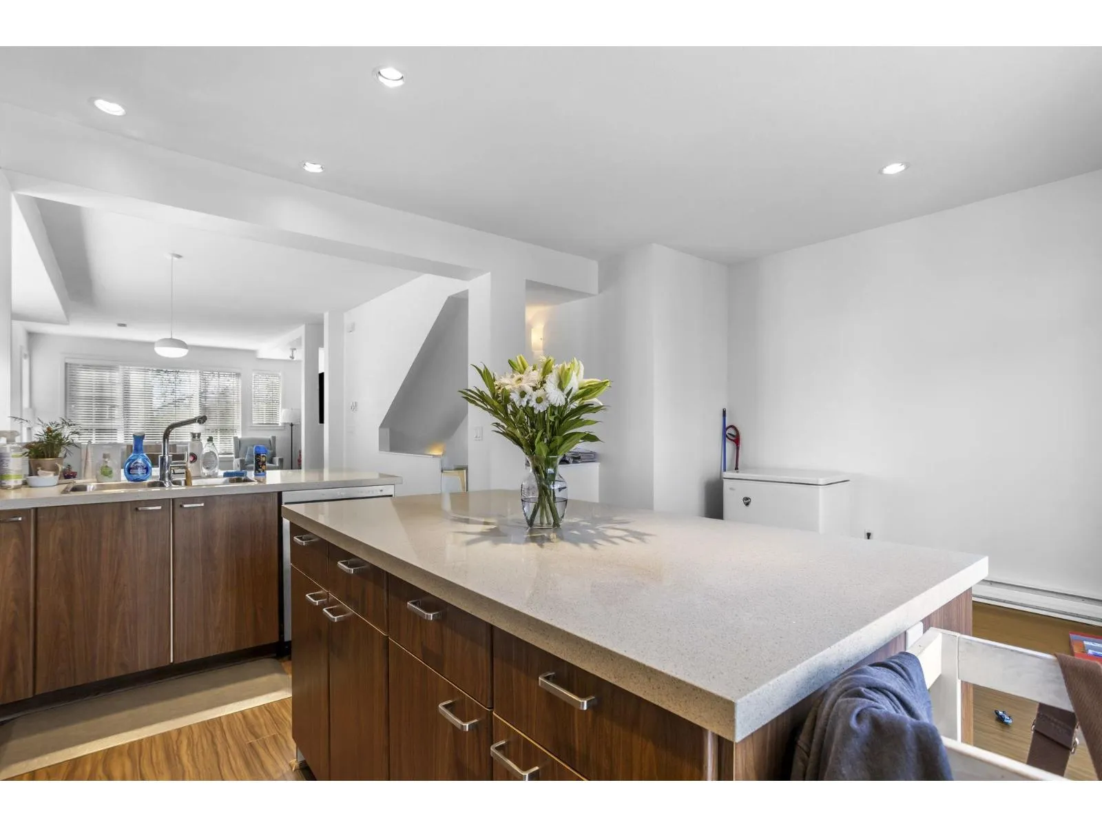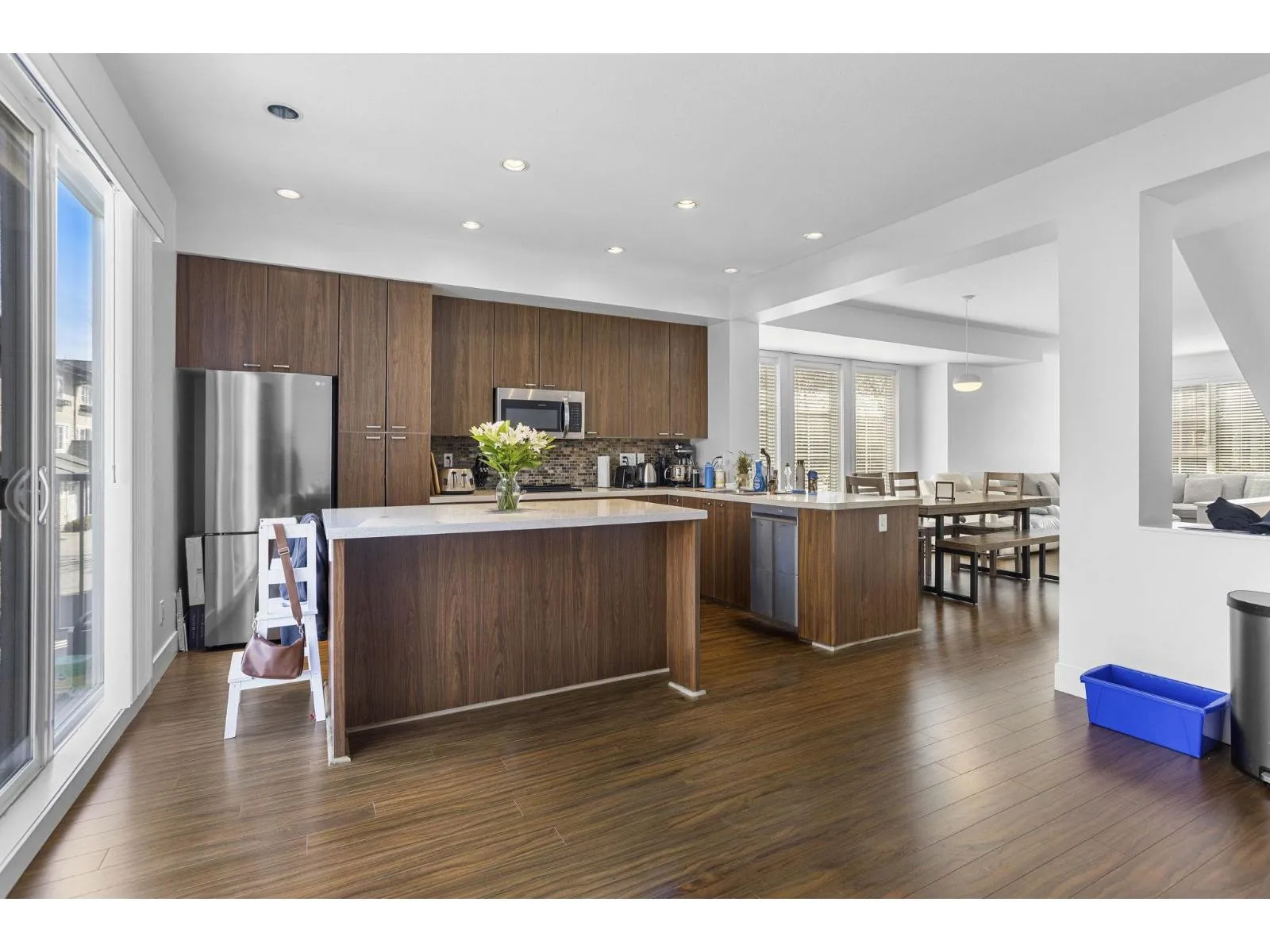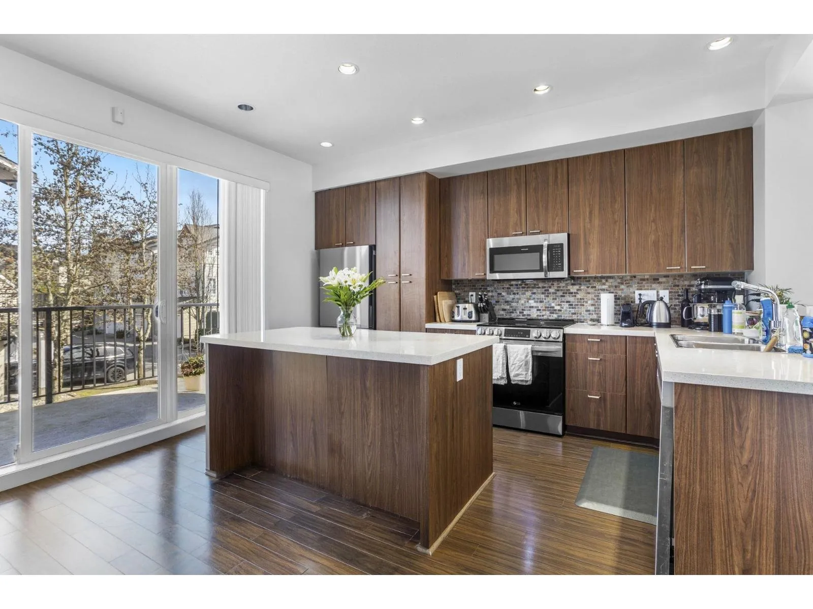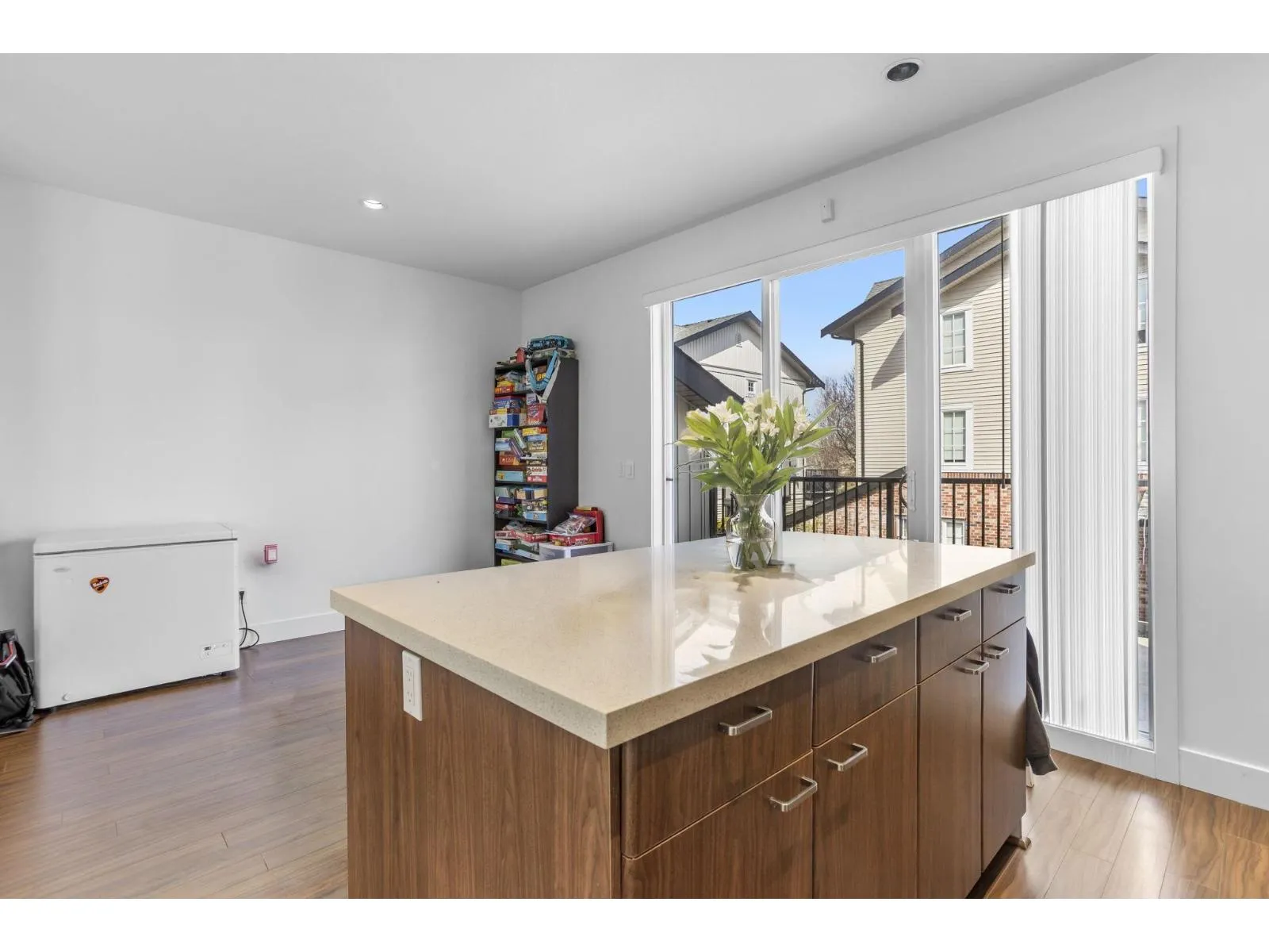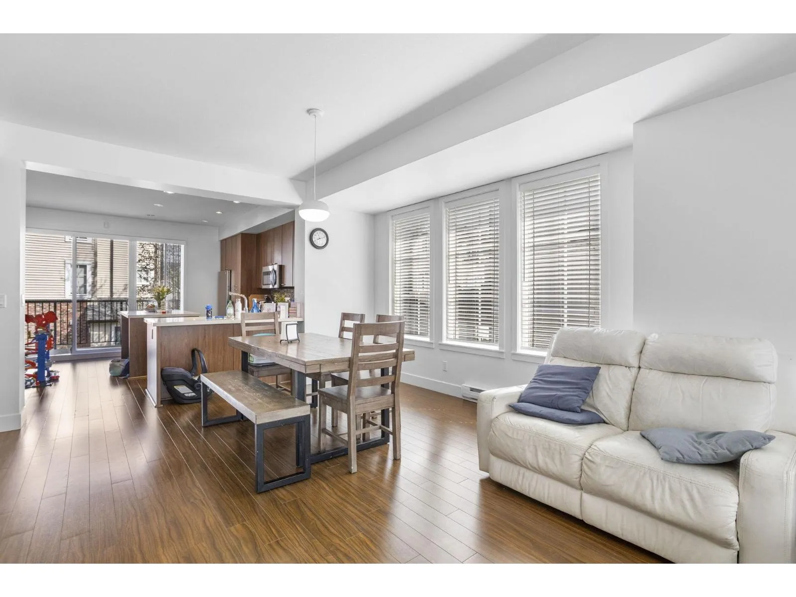 Rare south facing bright 4 bed, 3 bath end unit, 1806 sq ft, built by Intracorp. Detached home feel in a prime location, Grandview Corners/Morgan Heights. Well maintained with functional updates in 2024/2025. Extra wide home with abundant light. Open concept: main floor kitchen, flex space, custom over-sized island, patio off kitchen, dining and living area. Upstairs features master with