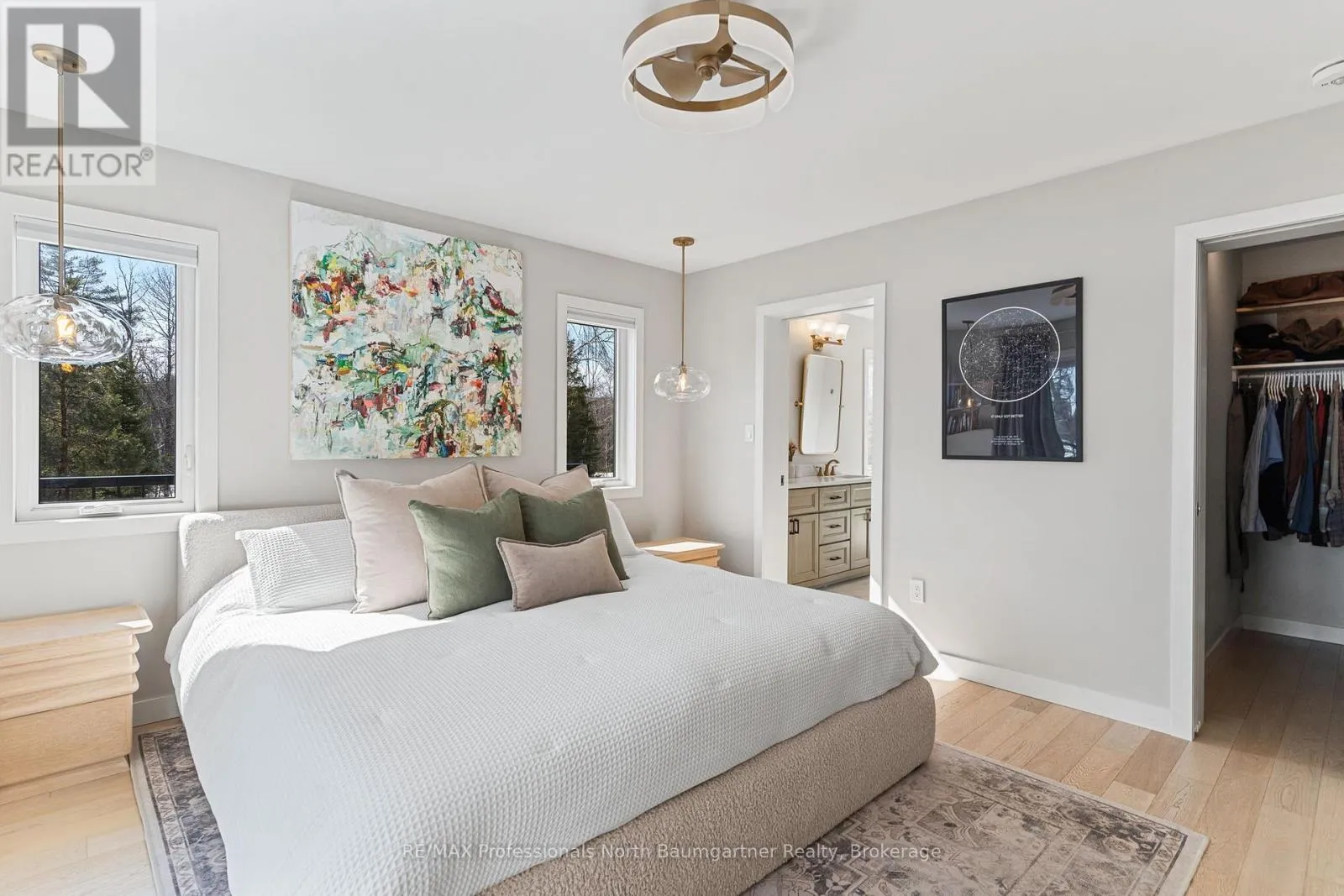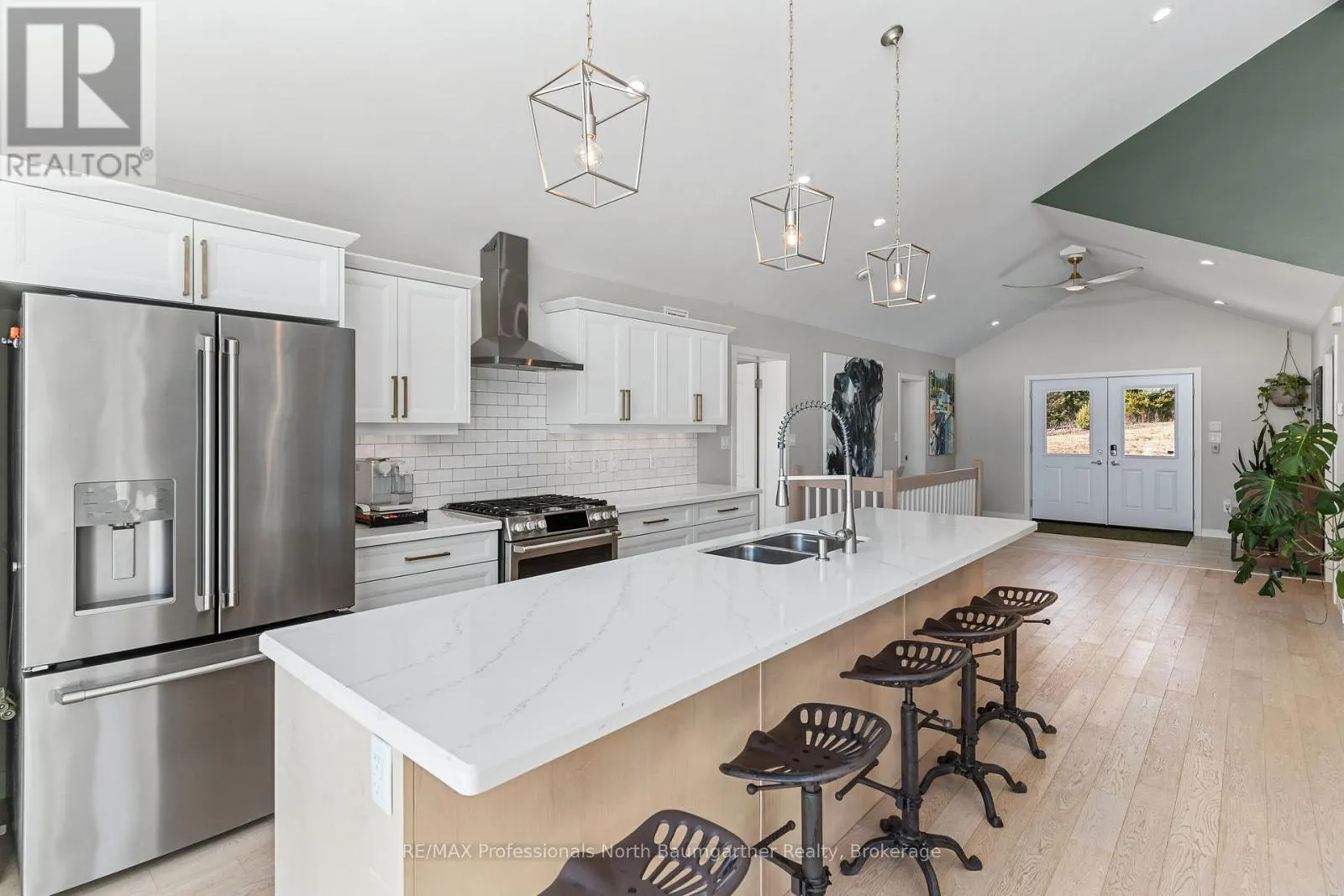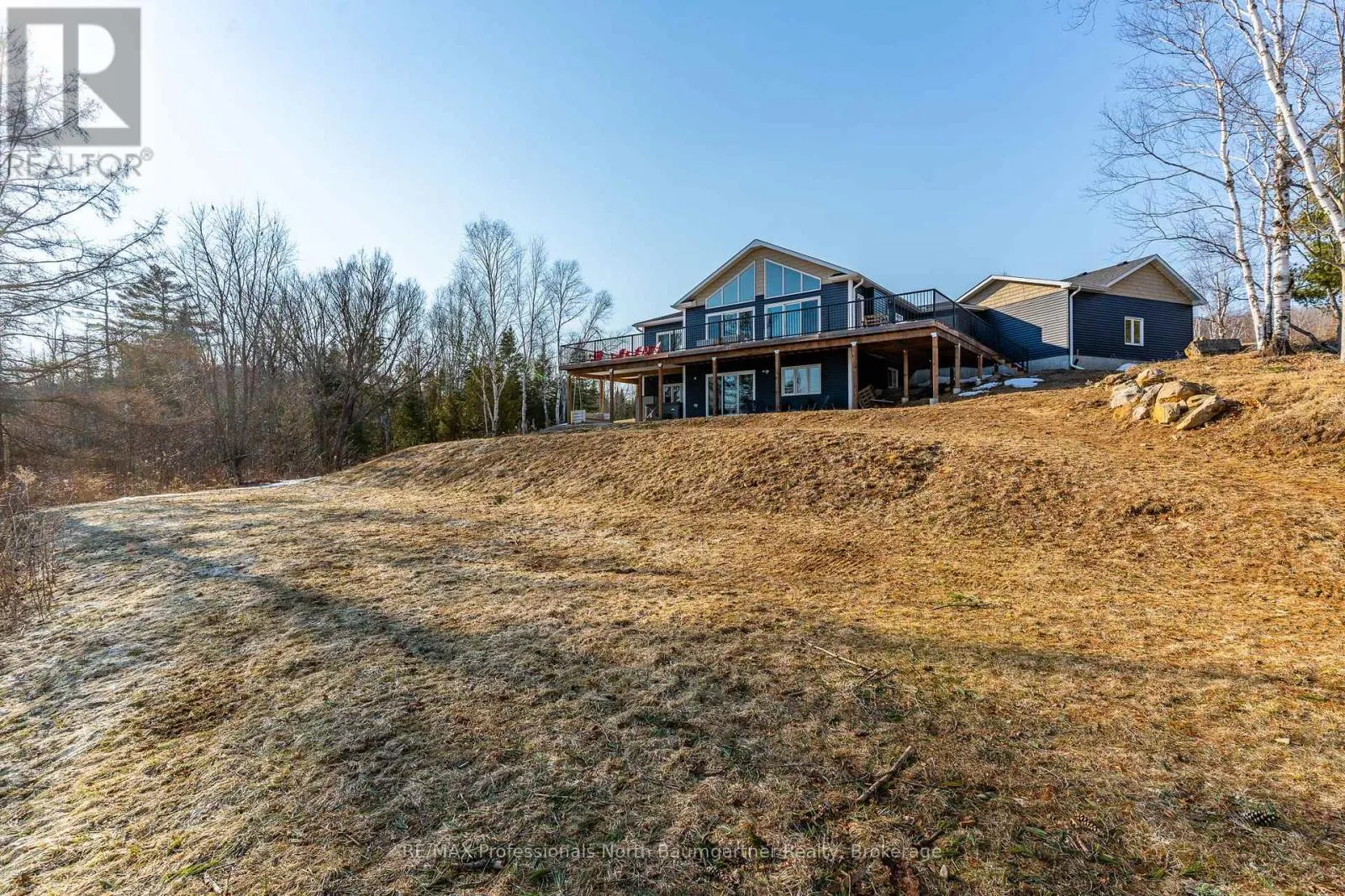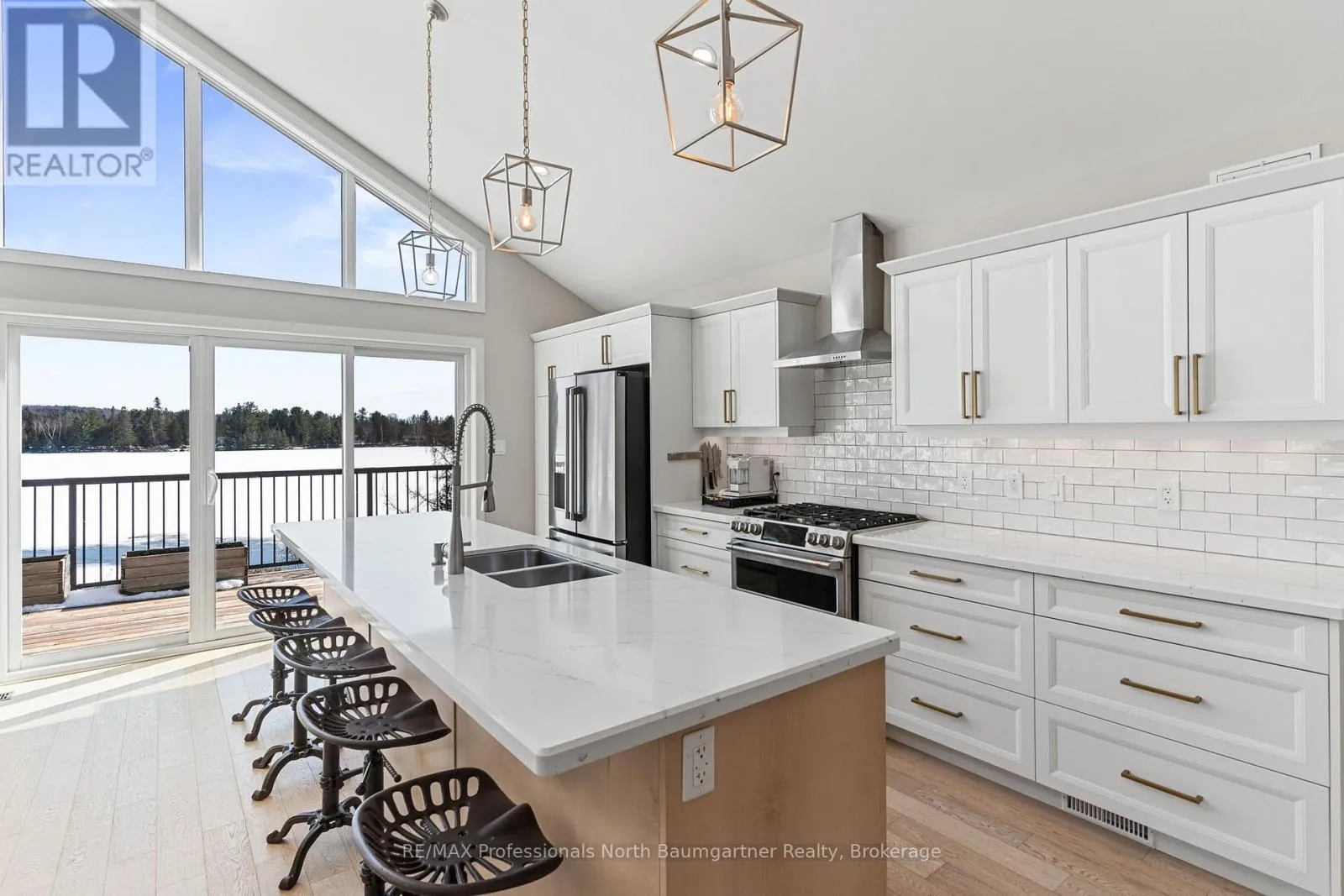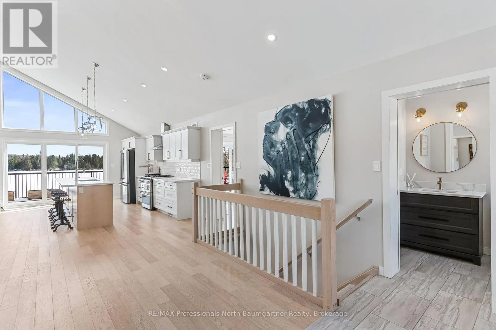 Rarely does an opportunity arise to own a 9-acre waterfront property offering such privacy just 5 minutes from downtown Haliburton. This stunning modern home, completed in 2021, perfectly balances contemporary elegance with the raw beauty of the Highlands. From the moment you enter, you are greeted by a breathtaking million-dollar view over Haas Lake, framed by soaring cathedral ceilings and