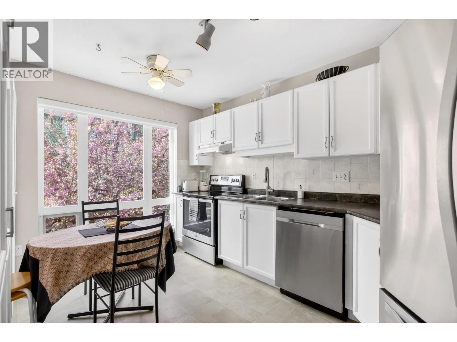 First time on market in Chancellor Court! Incredibly convenient & quiet central Port Coquitlam location, this 1,129 square ft 2 bed/2 bath CORNER UNIT with southeast exposure has been meticulously maintained by the original owners & does not disappoint! Open, spacious & inviting floor plan offers entertainment sized living area with feat gas fireplace, formal dining area with slider access