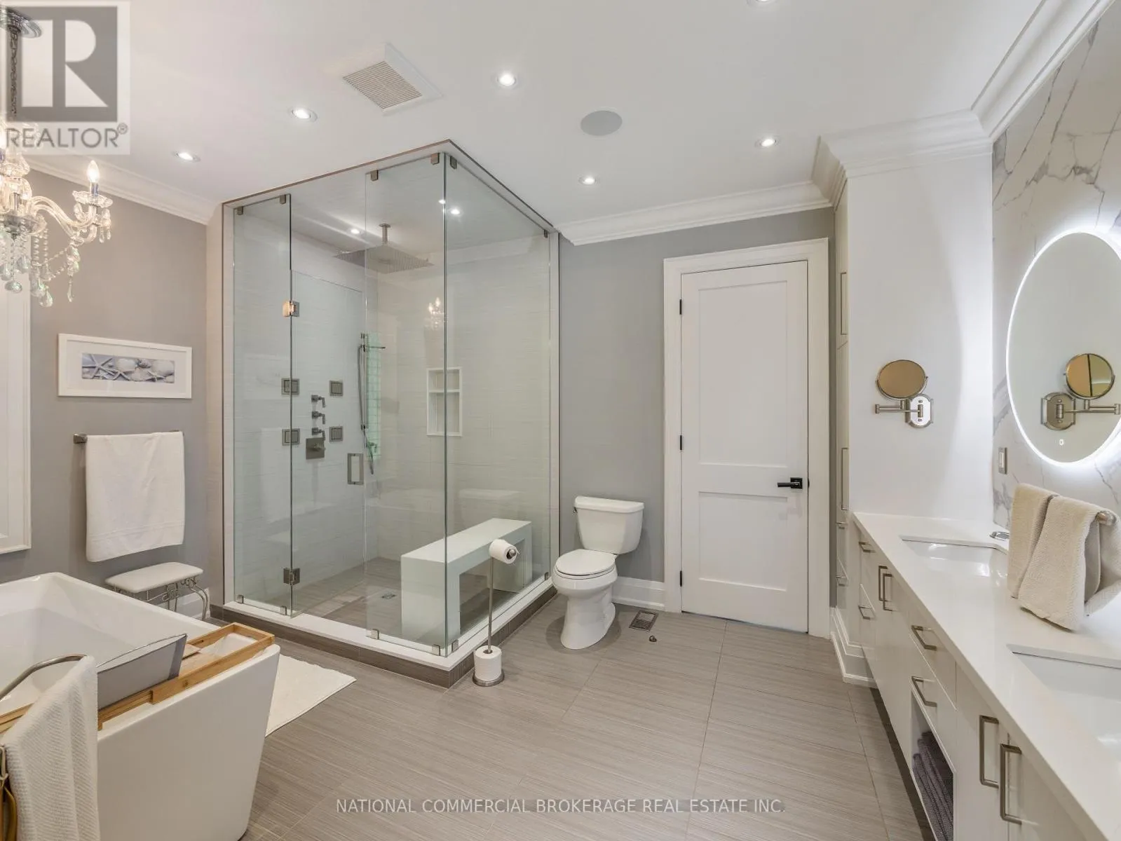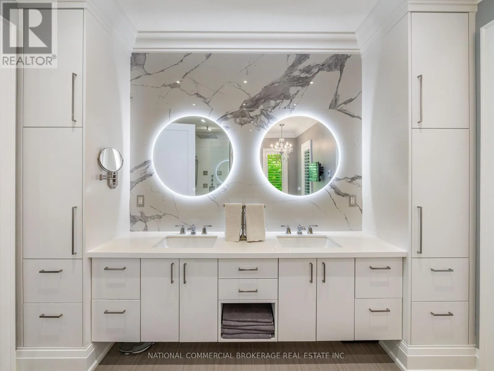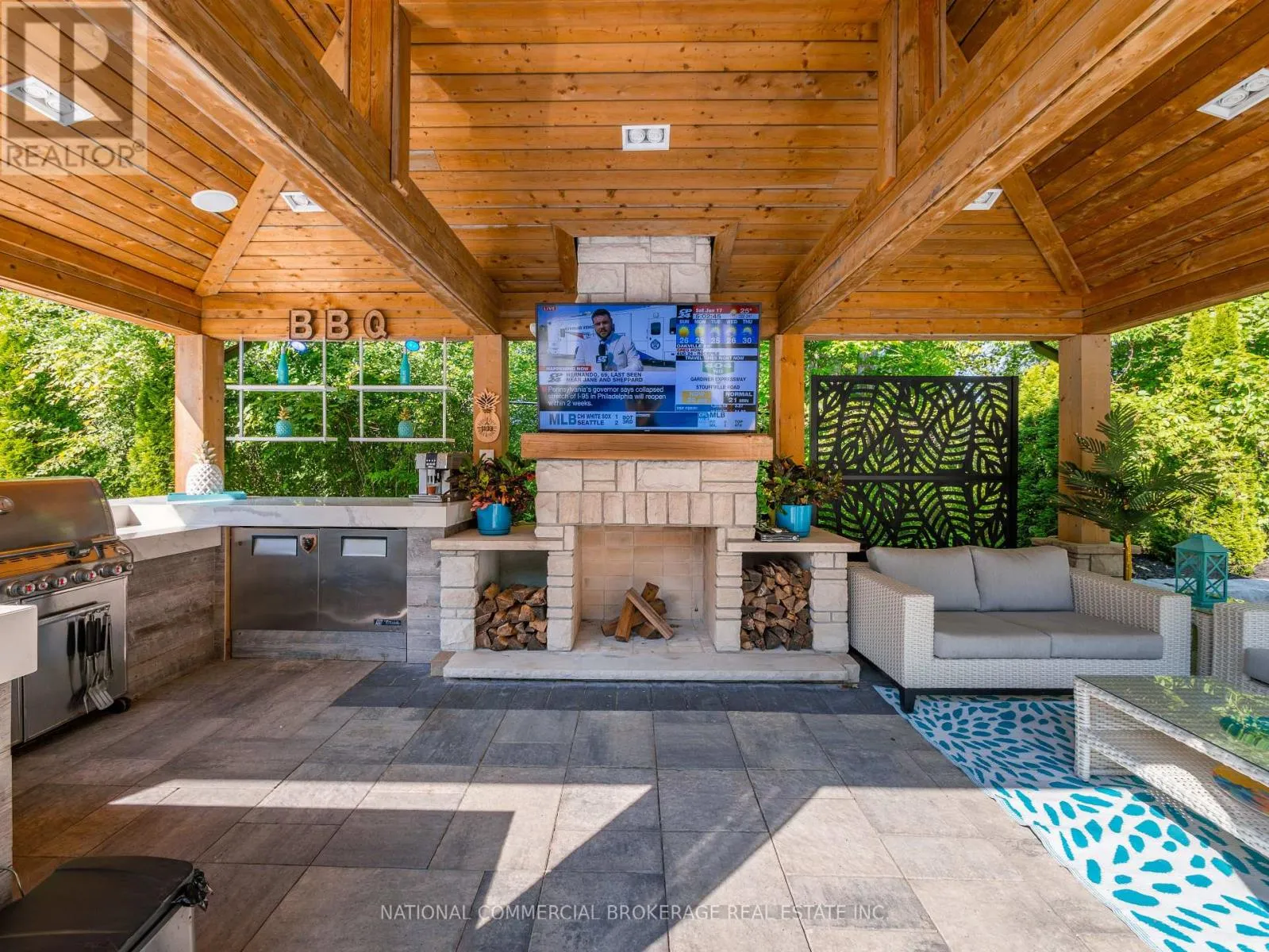 This exceptional home provides resort-style living in a private paradise. Enjoy the salt-water heated pool, hot tub & outdoor wet bar & bathroom in the backyard. While the interior provides a gorgeous chef’s kitchen, home gym, wine cellar, billiard table, heated bathroom floors and basement floors. Home is equipped with a Tesla charger and Control4 Smart Home which provides audio