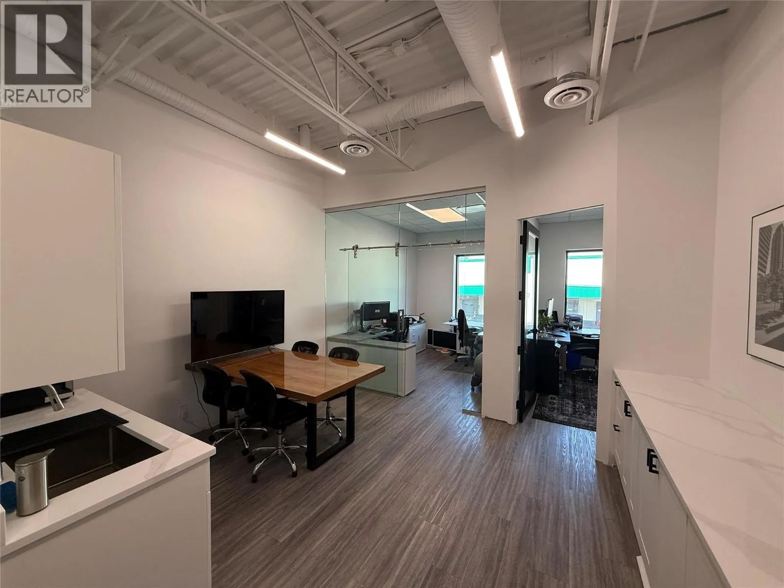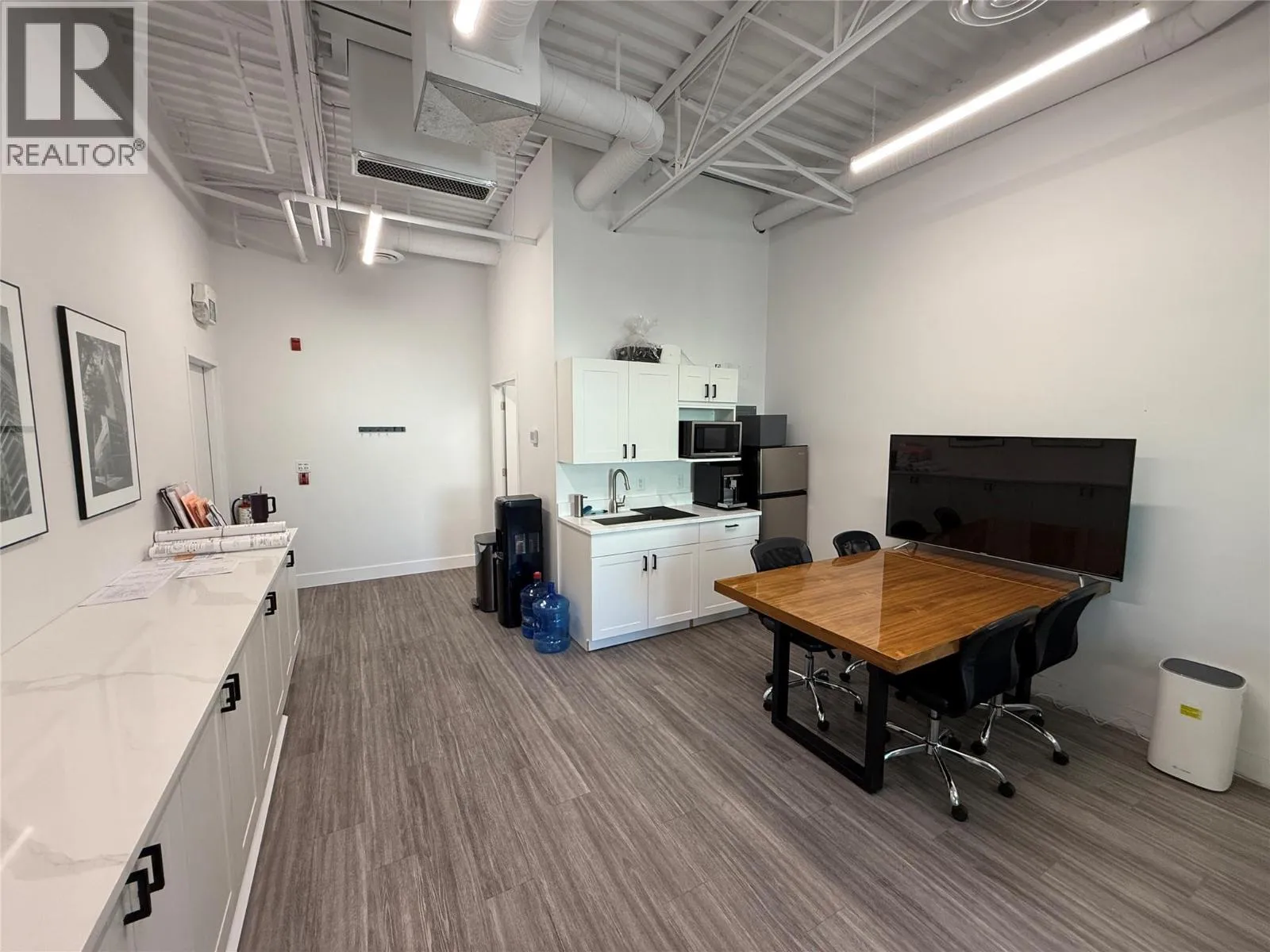 Opportunity to lease 1,900 SF of industrial, retail, and office space in Kelowna’s sought-after Powerhouse development by PC Urban. The ground floor offers open warehouse space with one washroom. The second floor features a professionally finished office area, complete with a kitchenette, boardroom, two private offices, and an additional washroom. With prime signage exposure along Vaughan Avenue, this property provides