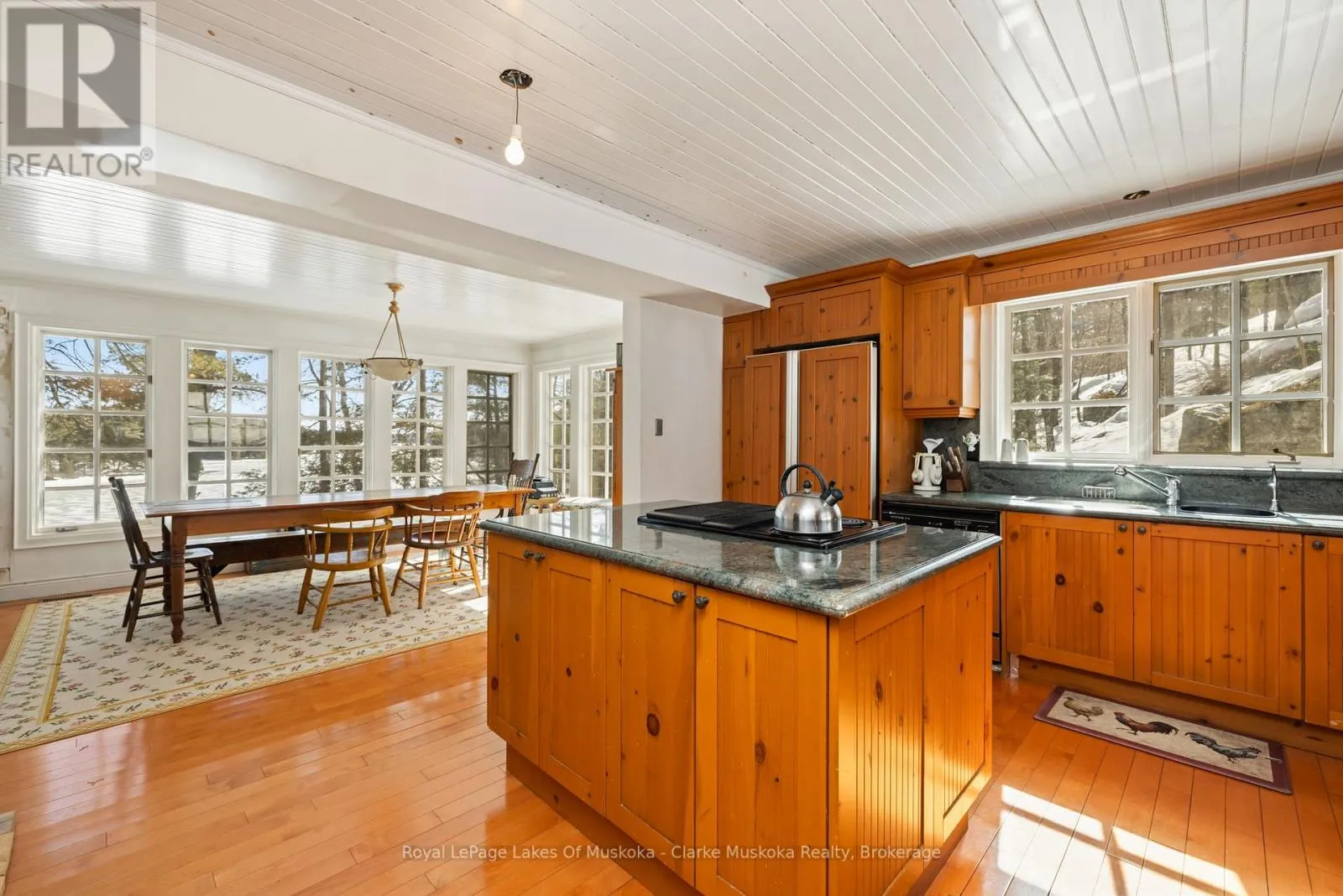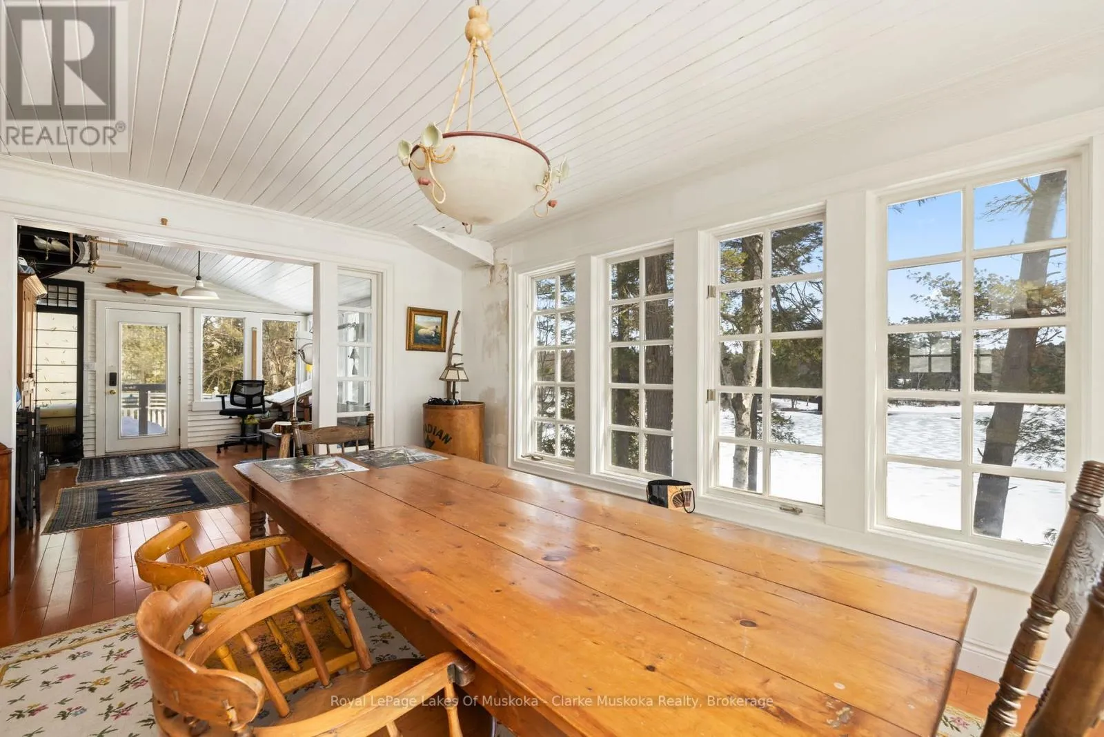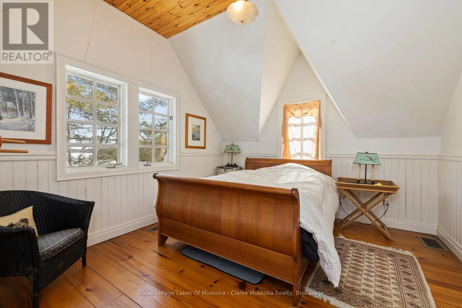 Nestled on a private 2.5-acre lot along the coveted shores of Lake Joseph, this charming property offers an exceptional blend of tranquility and convenience, with an impressive 203 feet of frontage. Enjoy breathtaking southeast-facing views over the lake from expansive decks, perfect for morning coffee, sunset gatherings, or entertaining family and friends. The main home features 3 spacious bedrooms and