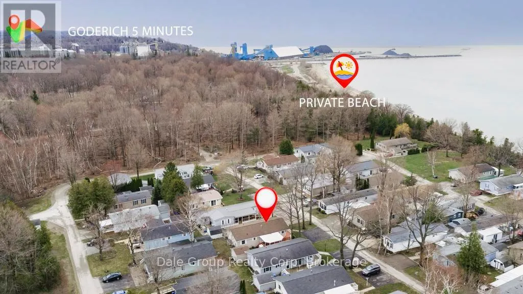 Welcome to easy lakeside living in this beautifully cared for Royal Home. Set within the sought-after 55+ land lease community of Meneset on the Lake just north of Goderich. This 2-bedroom, 2-bathroom year round home offers access to a private gated sandy beach, community centre, and a vibrant, social atmosphere. Inside, the bright, open-concept design is enhanced by vaulted